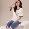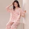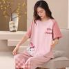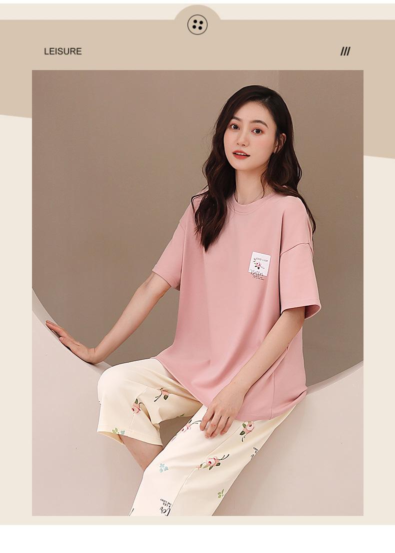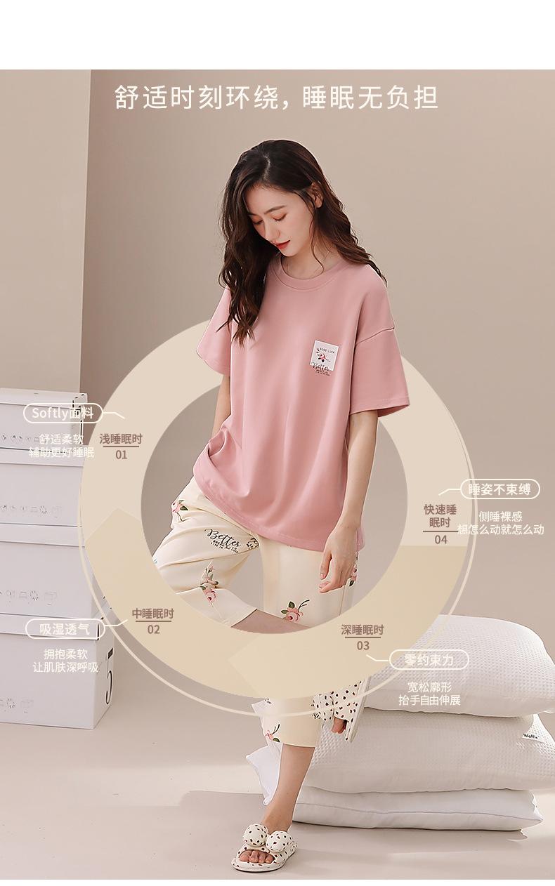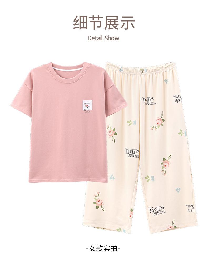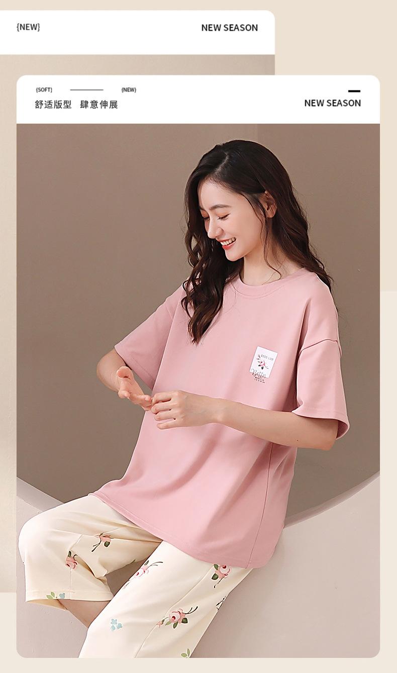 Pijama de verano de talla grande para mujer, de algodón fino, de manga corta, pantalones capri, ropa informal holgada, traje para mujer