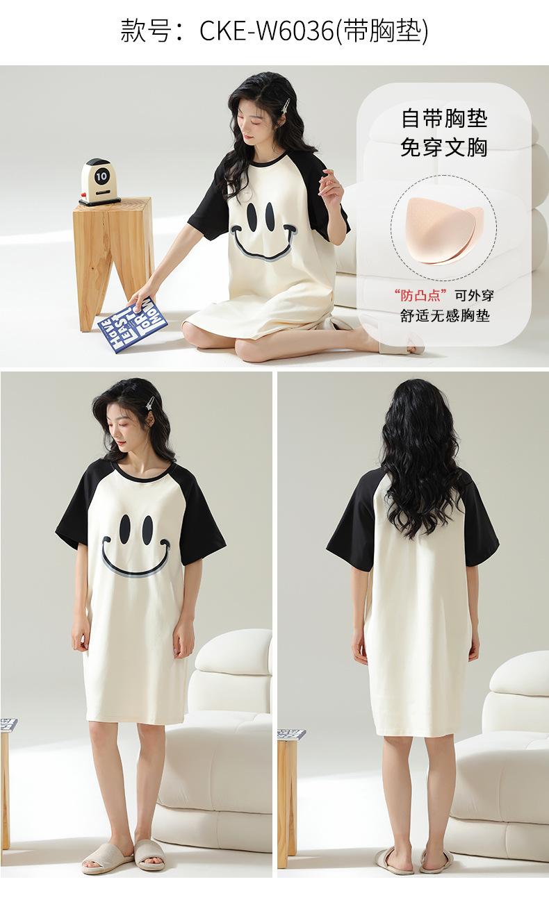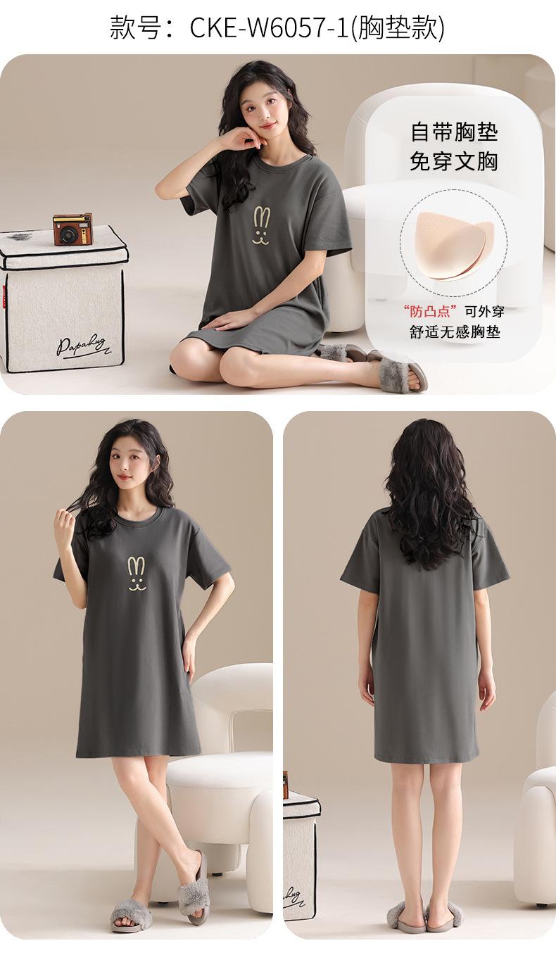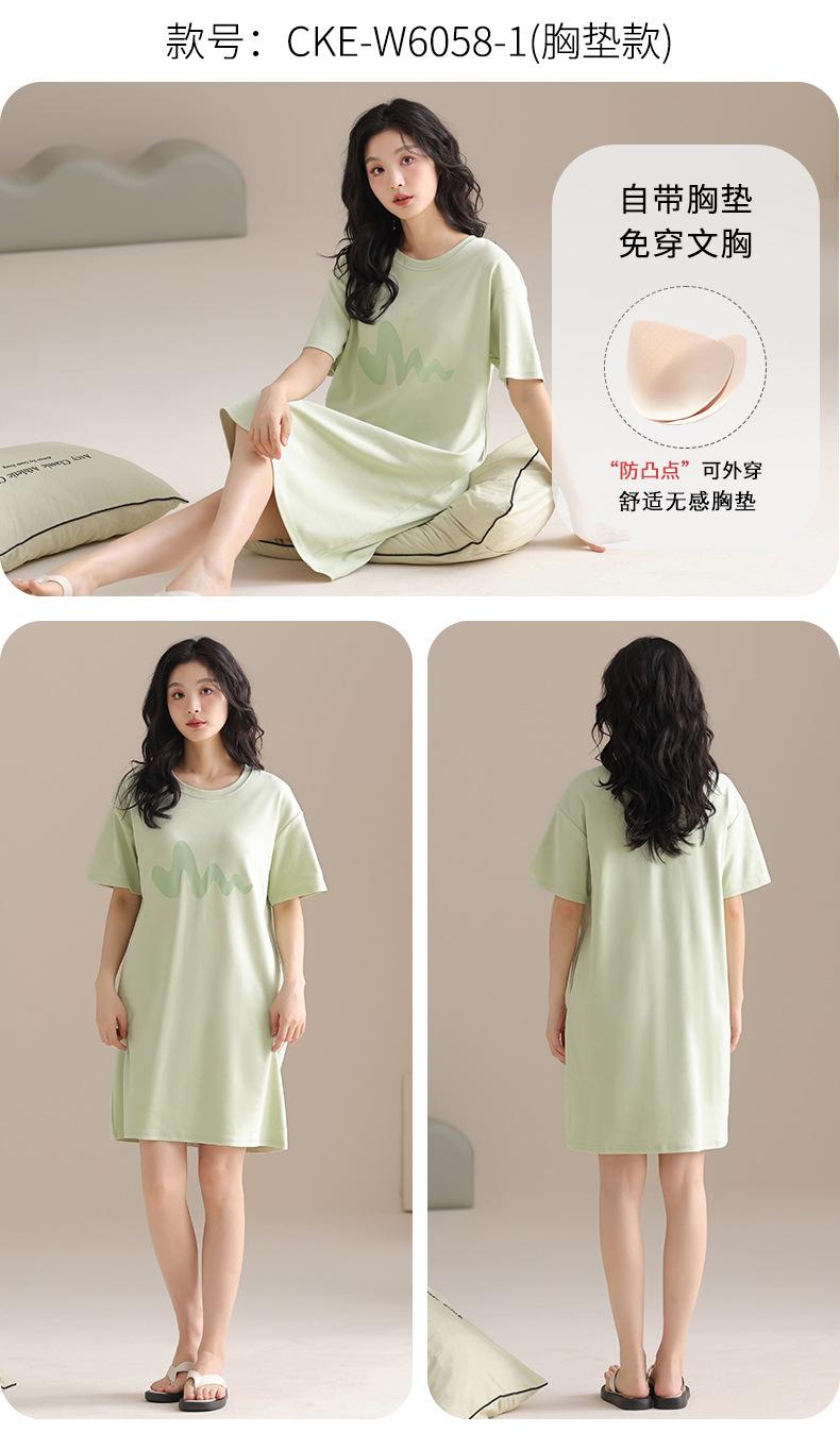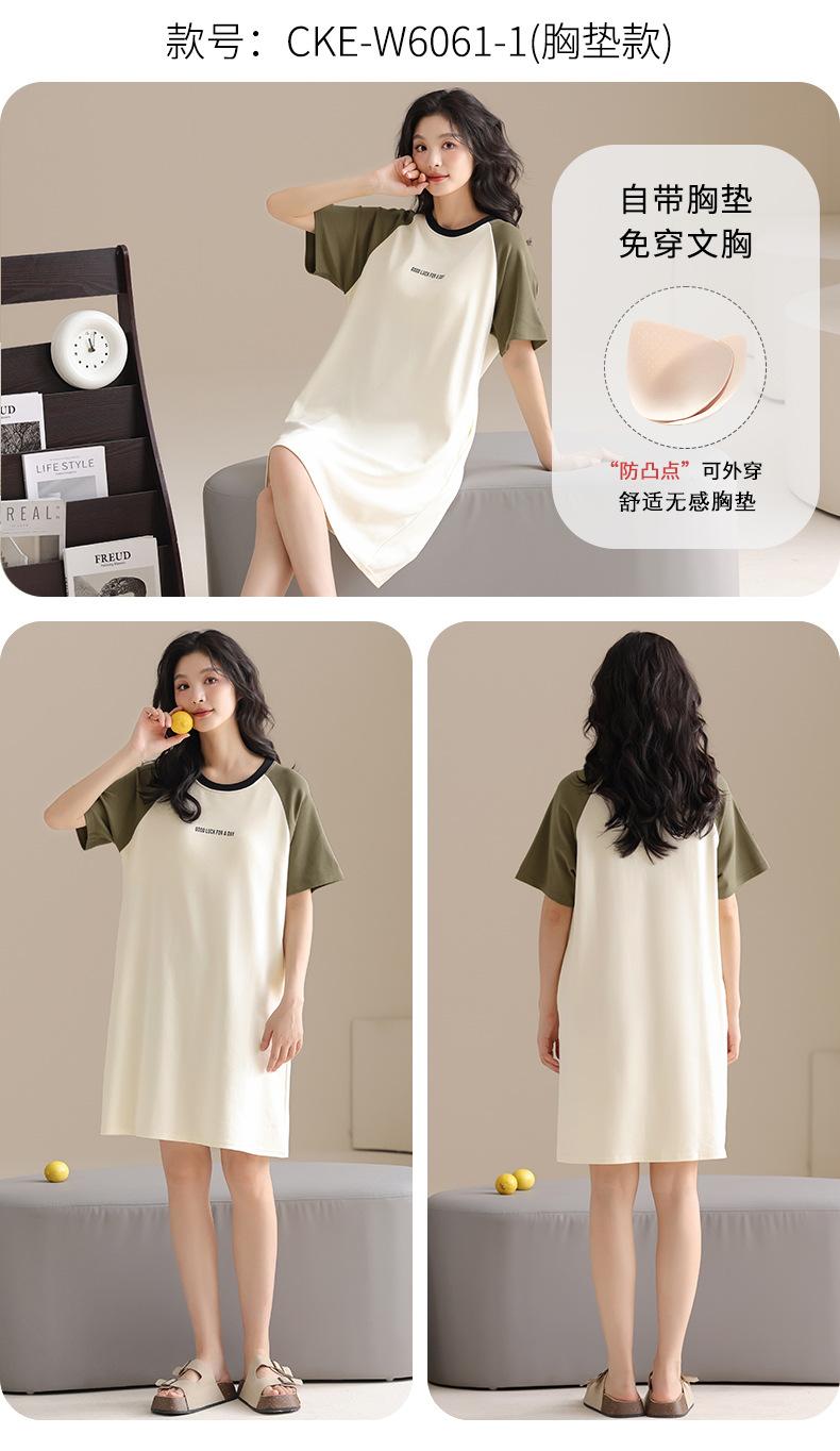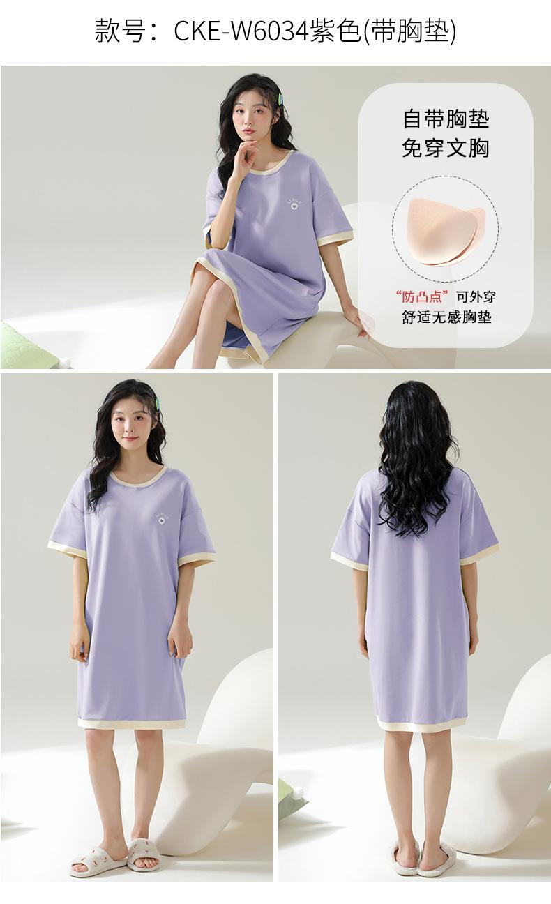 Pijama de Algodón Puro para Mujer Verano Delgado Manga Corta Camisón de Algodón Puro con Almohadilla en el Pecho Traje de Ropa para el Hogar Simple y Holgado Nuevo Estilo