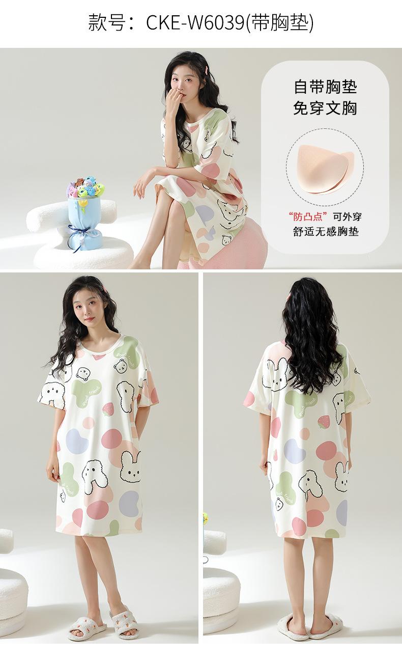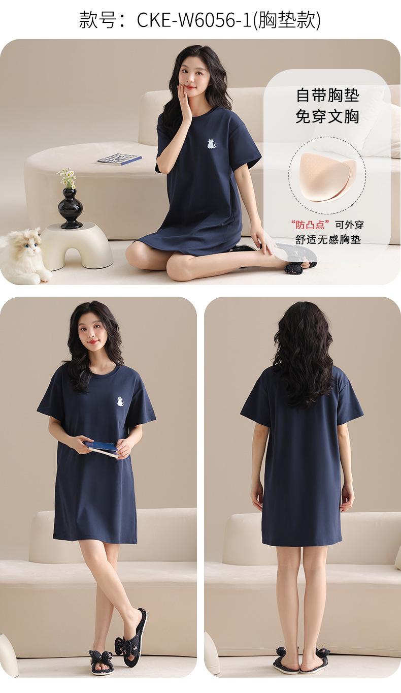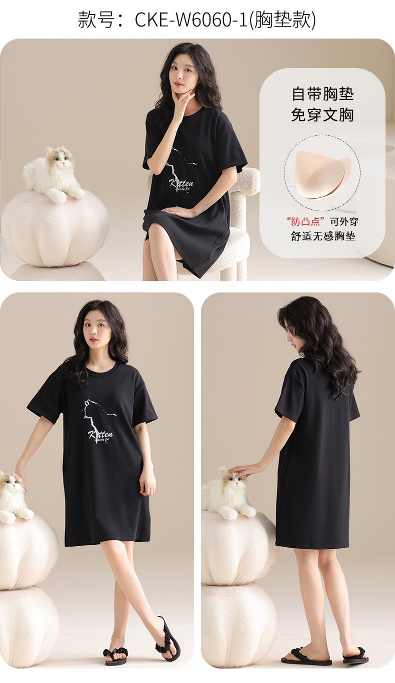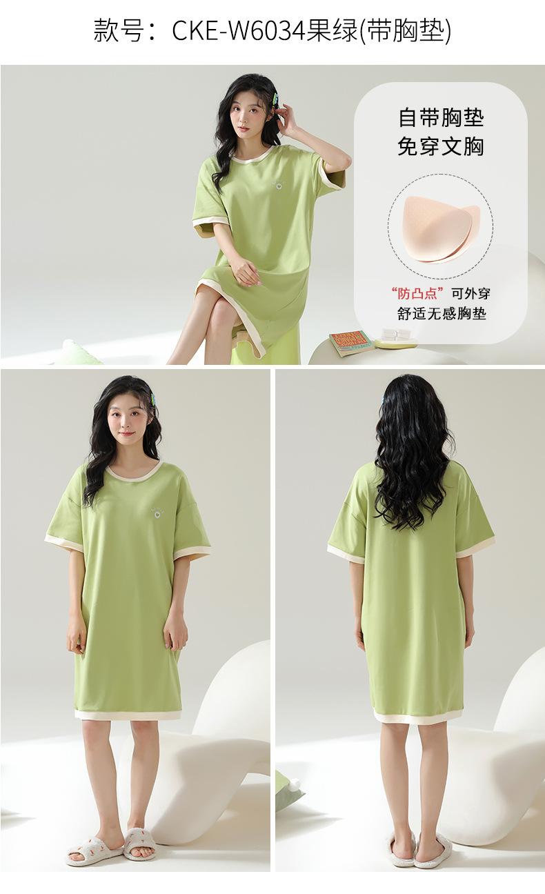 Pijama de Algodón Puro para Mujer Verano Delgado Manga Corta Camisón de Algodón Puro con Almohadilla en el Pecho Traje de Ropa para el Hogar Simple y Holgado Nuevo Estilo