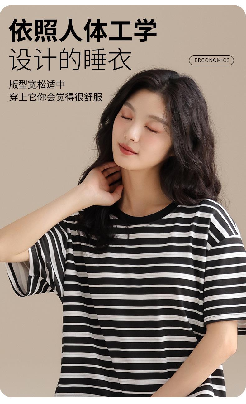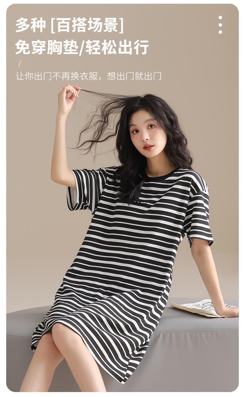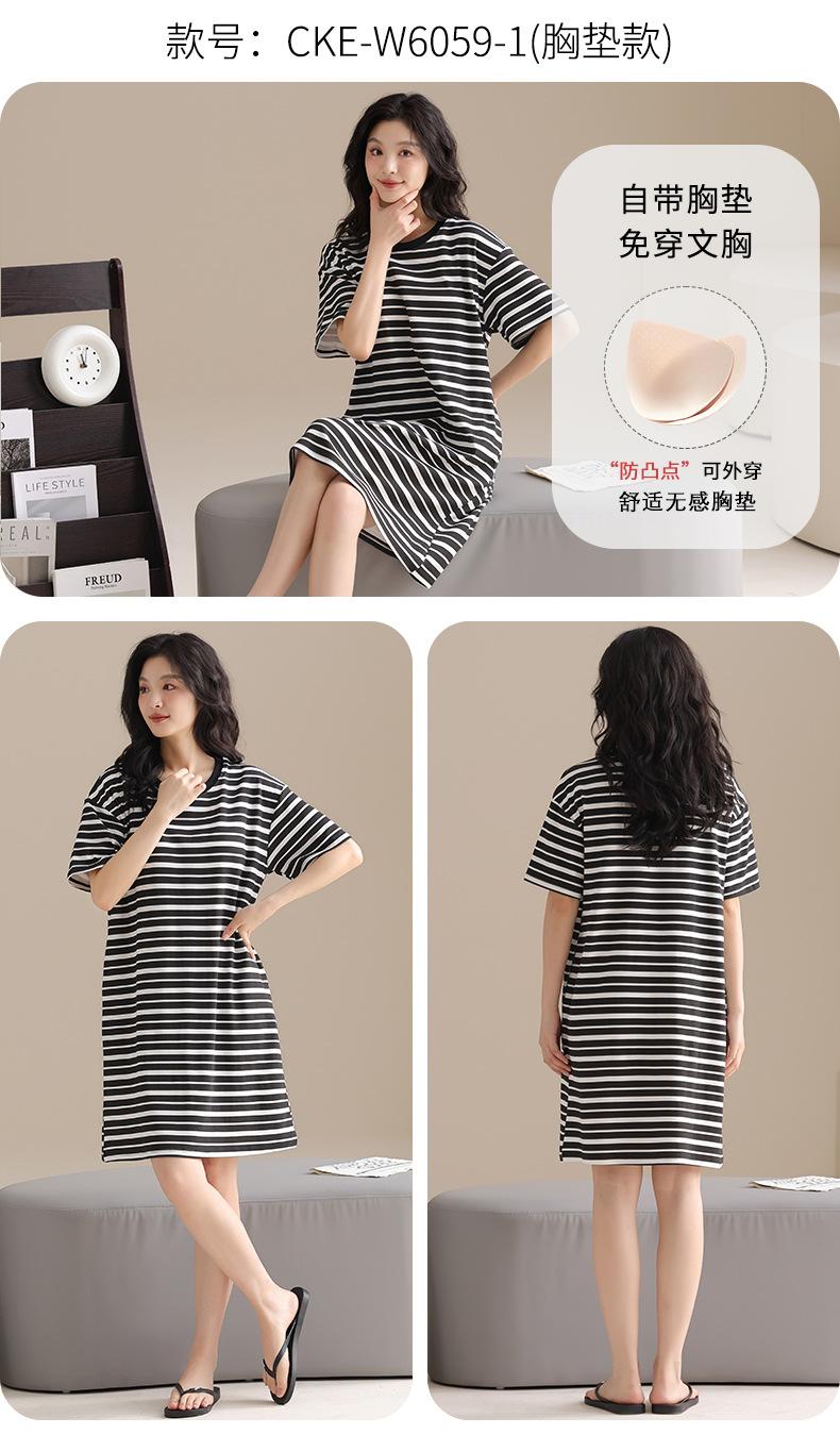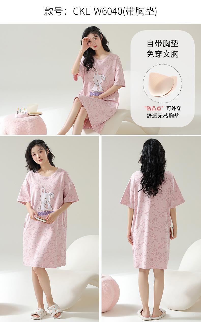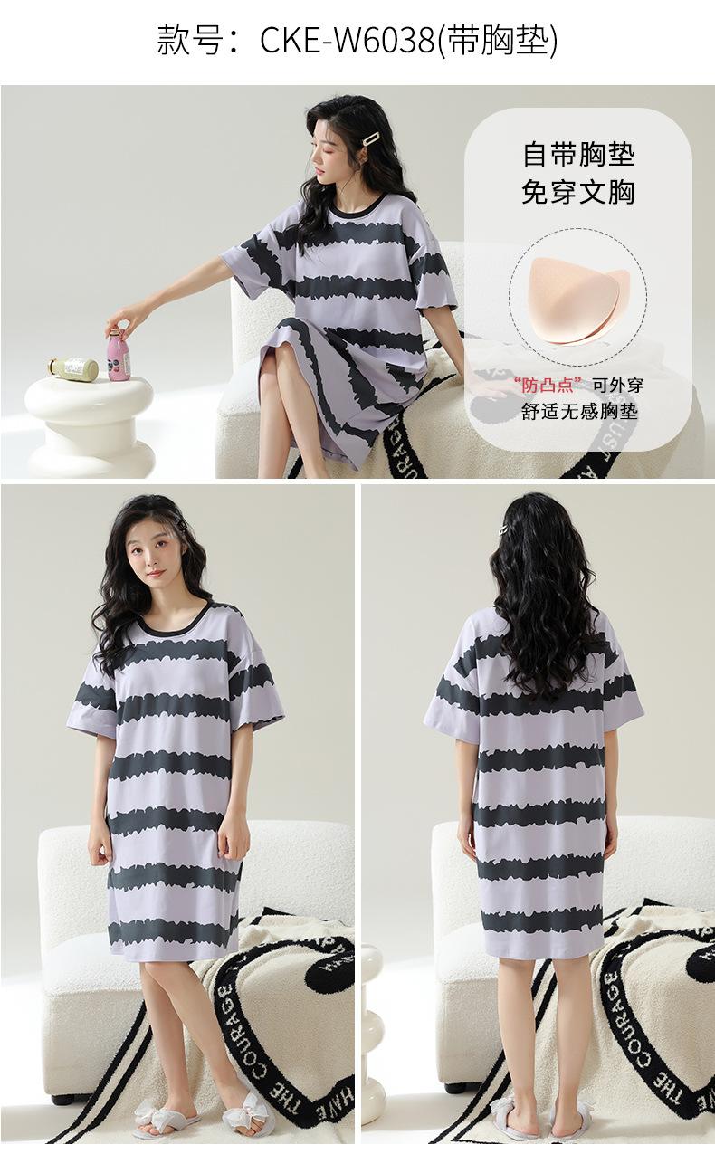 Pijama de Algodón Puro para Mujer Verano Delgado Manga Corta Camisón de Algodón Puro con Almohadilla en el Pecho Traje de Ropa para el Hogar Simple y Holgado Nuevo Estilo