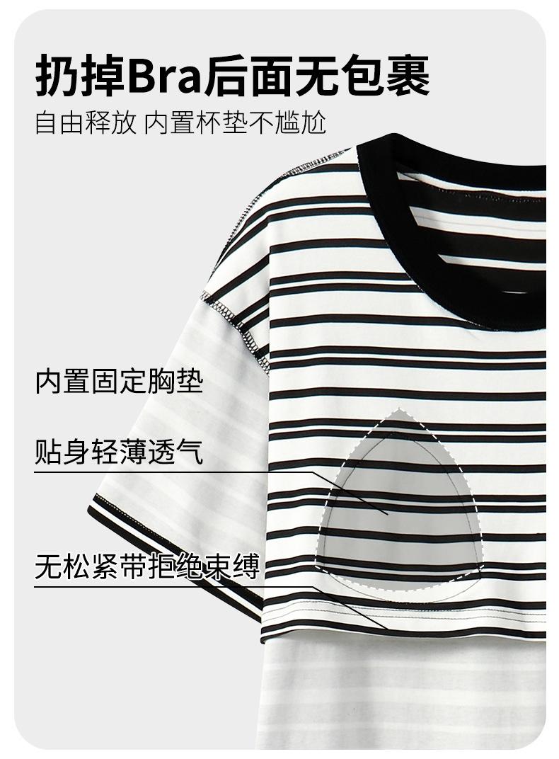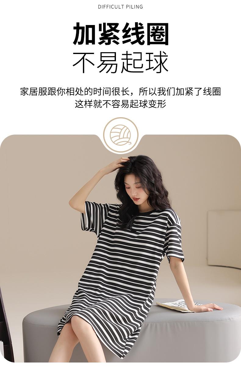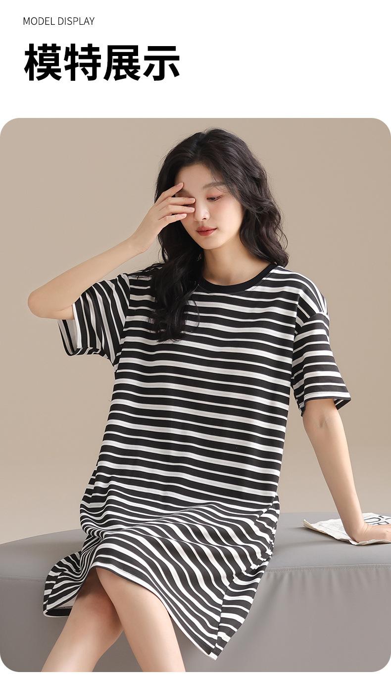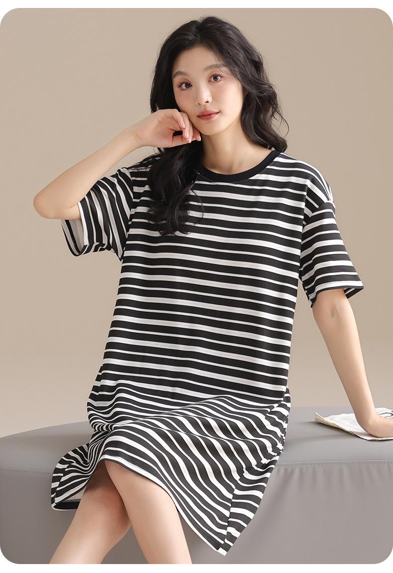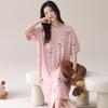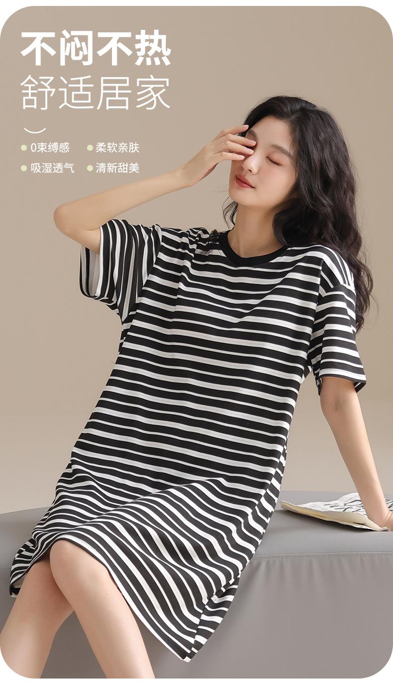 Pijama de Algodón Puro para Mujer Verano Delgado Manga Corta Camisón de Algodón Puro con Almohadilla en el Pecho Traje de Ropa para el Hogar Simple y Holgado Nuevo Estilo