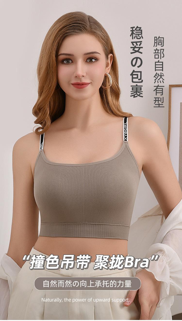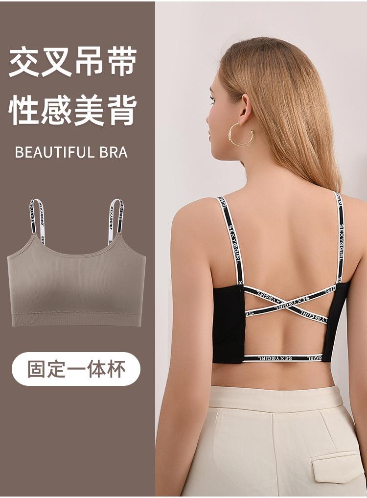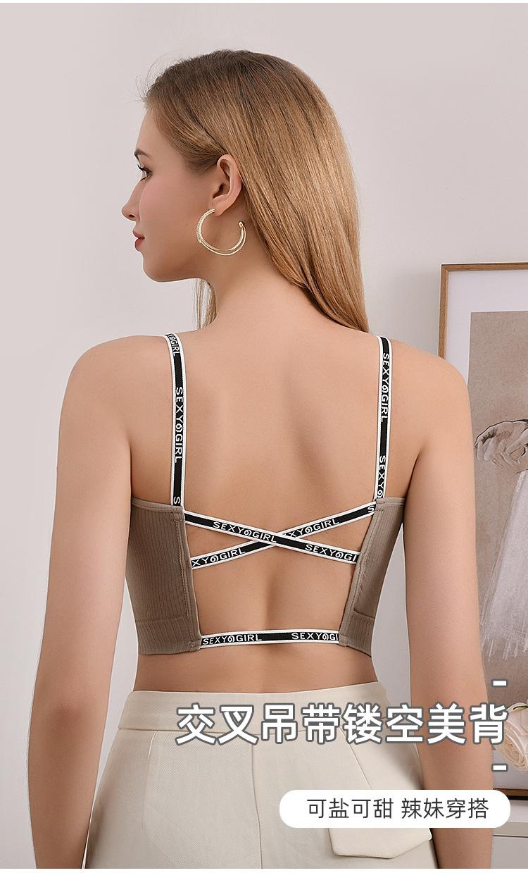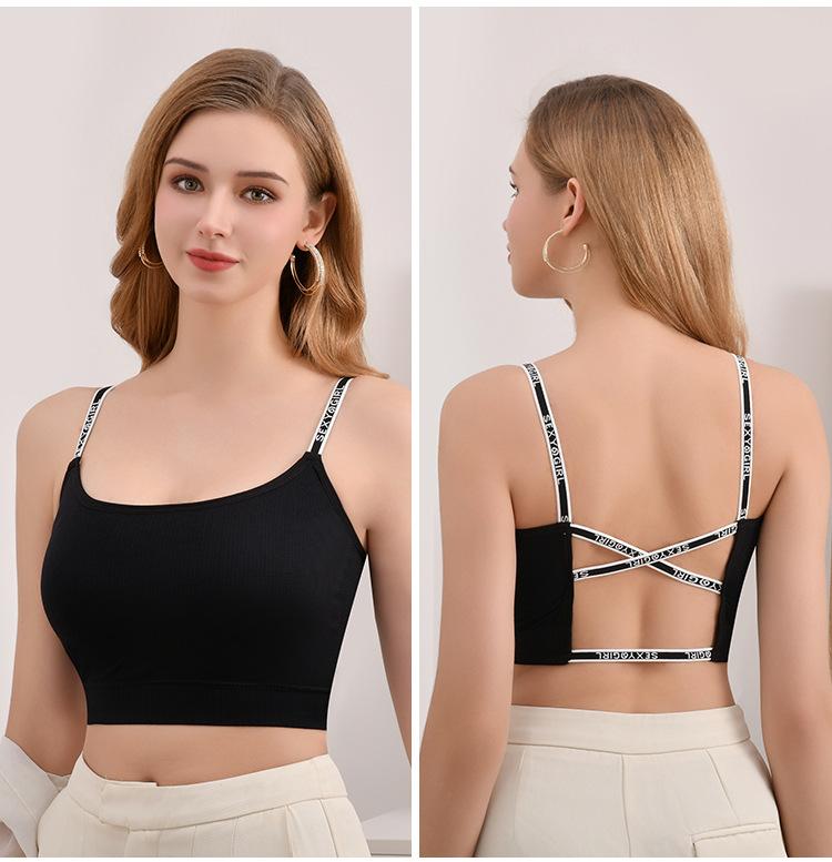 Nuevo Sexy Tirante Fino Espalda Hermosa Letra Tirante Fino Ropa Interior Almohadilla Fija Integrada a Prueba de Golpes Uso Exterior Chaleco Deportivo
