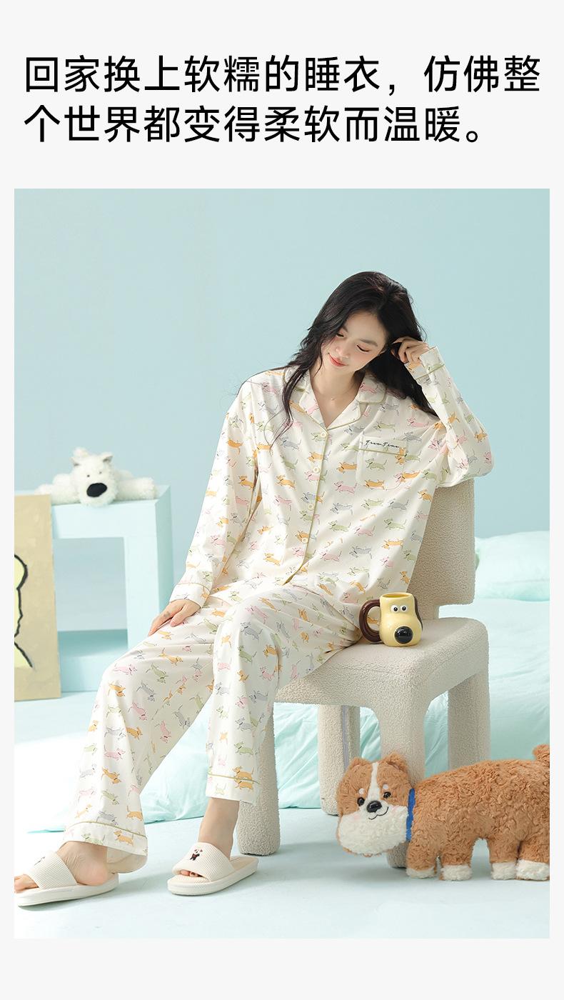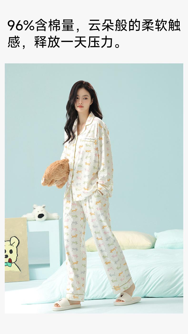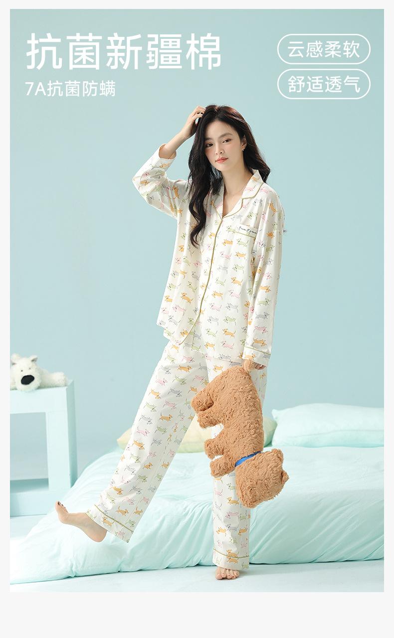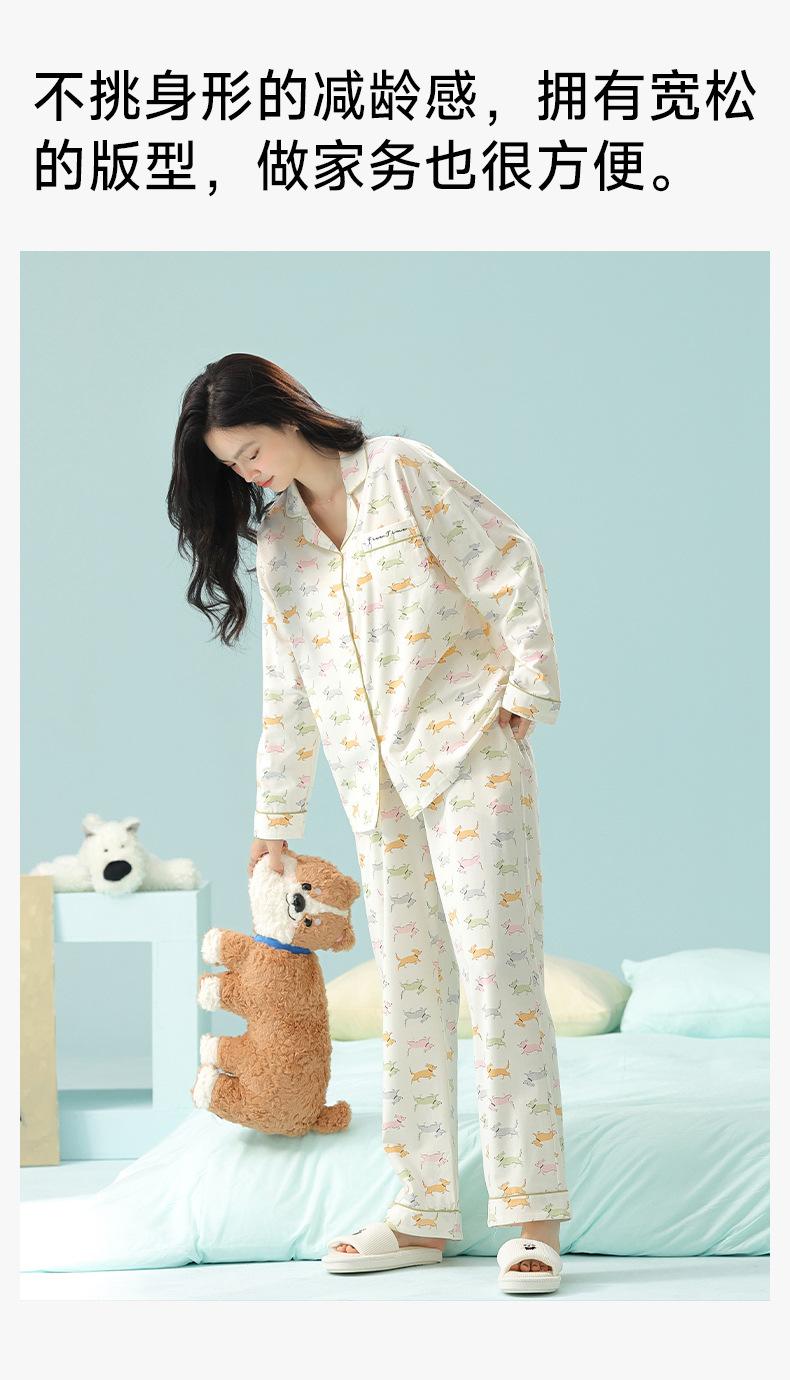 [Algodón antibacteriano de Xinjiang] Pijamas nuevos de primavera para mujer, de algodón, de manga larga, con diseño de perro salchicha, ropa de casa de algodón