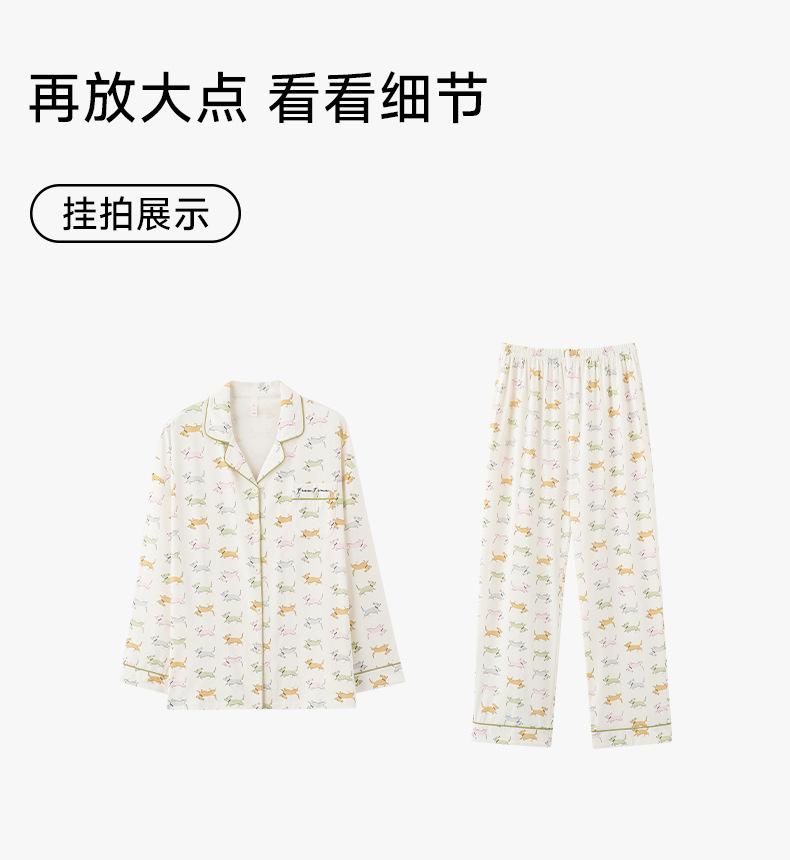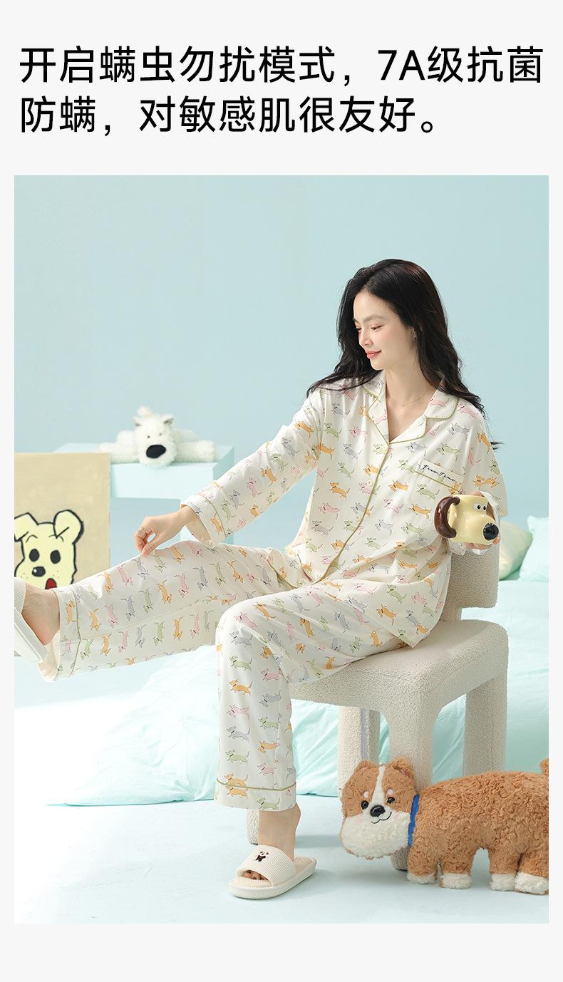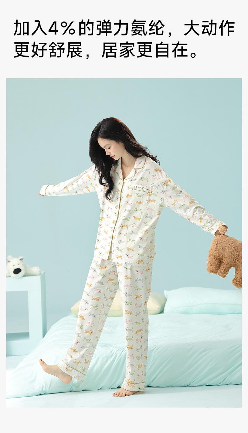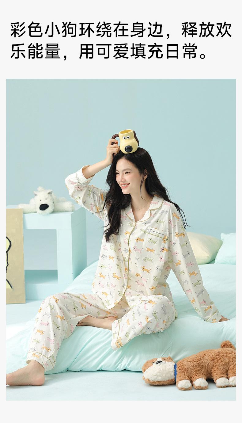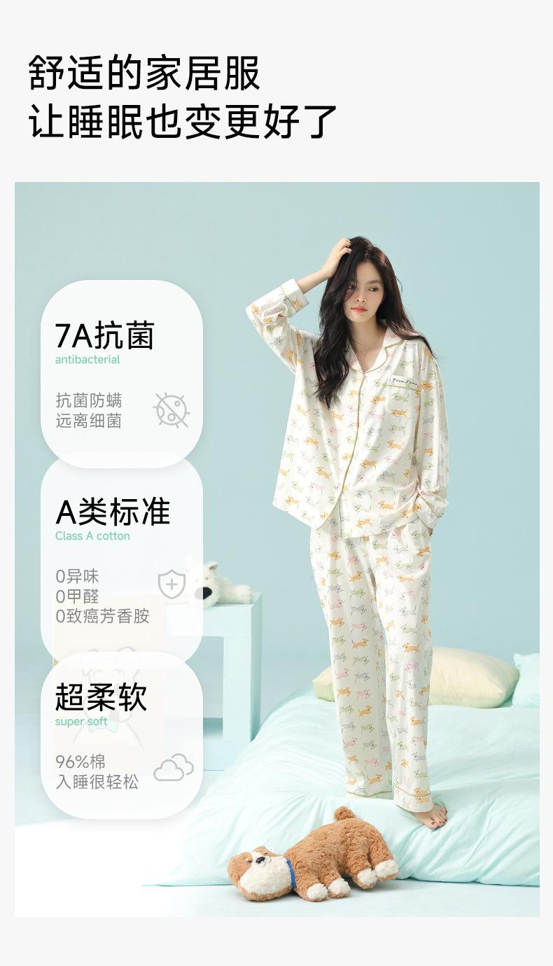 [Algodón antibacteriano de Xinjiang] Pijamas nuevos de primavera para mujer, de algodón, de manga larga, con diseño de perro salchicha, ropa de casa de algodón