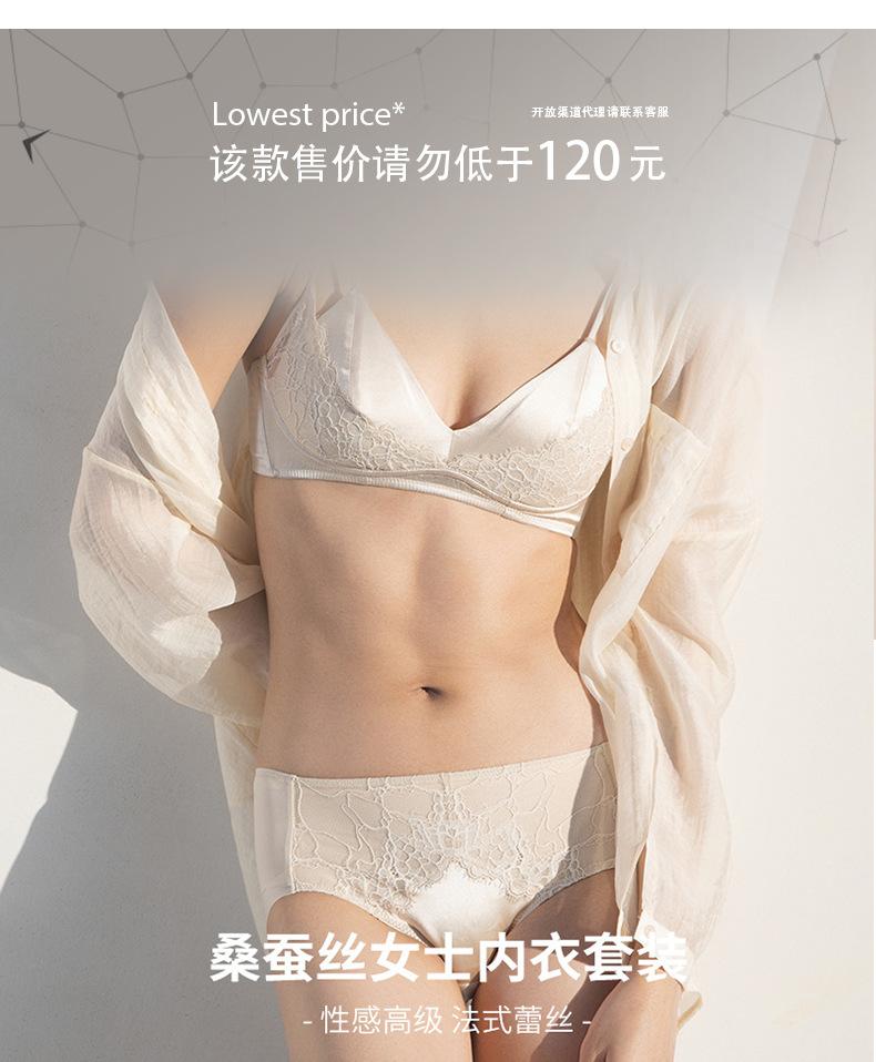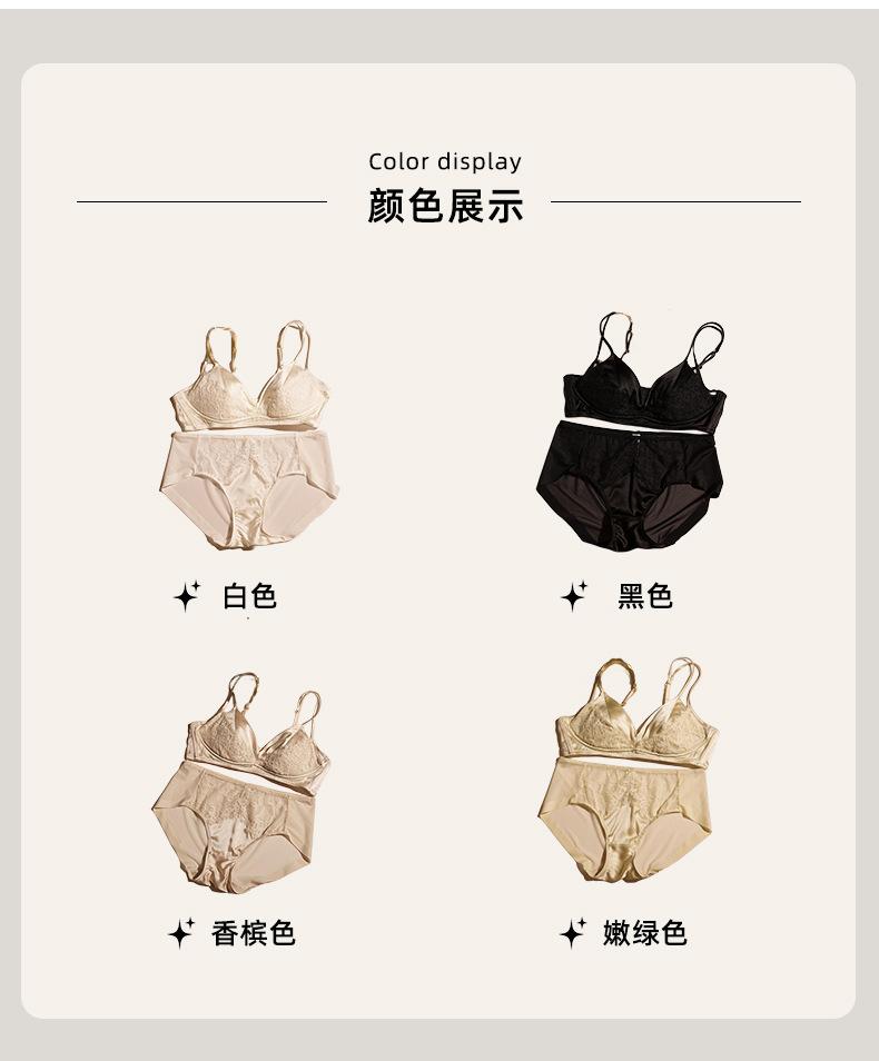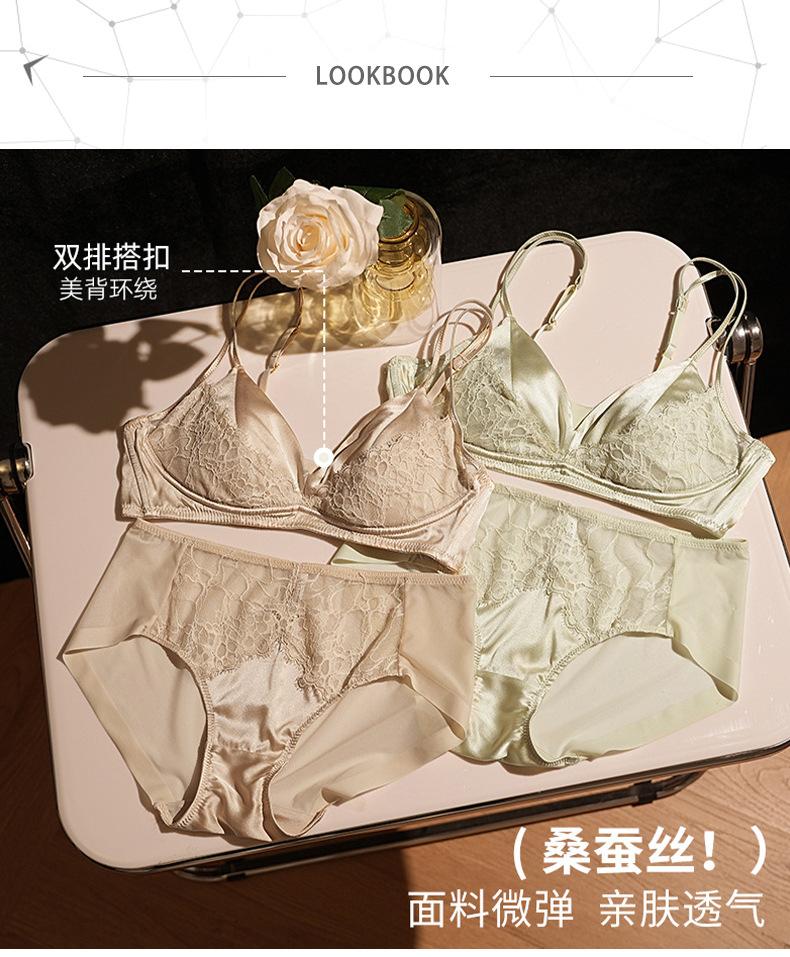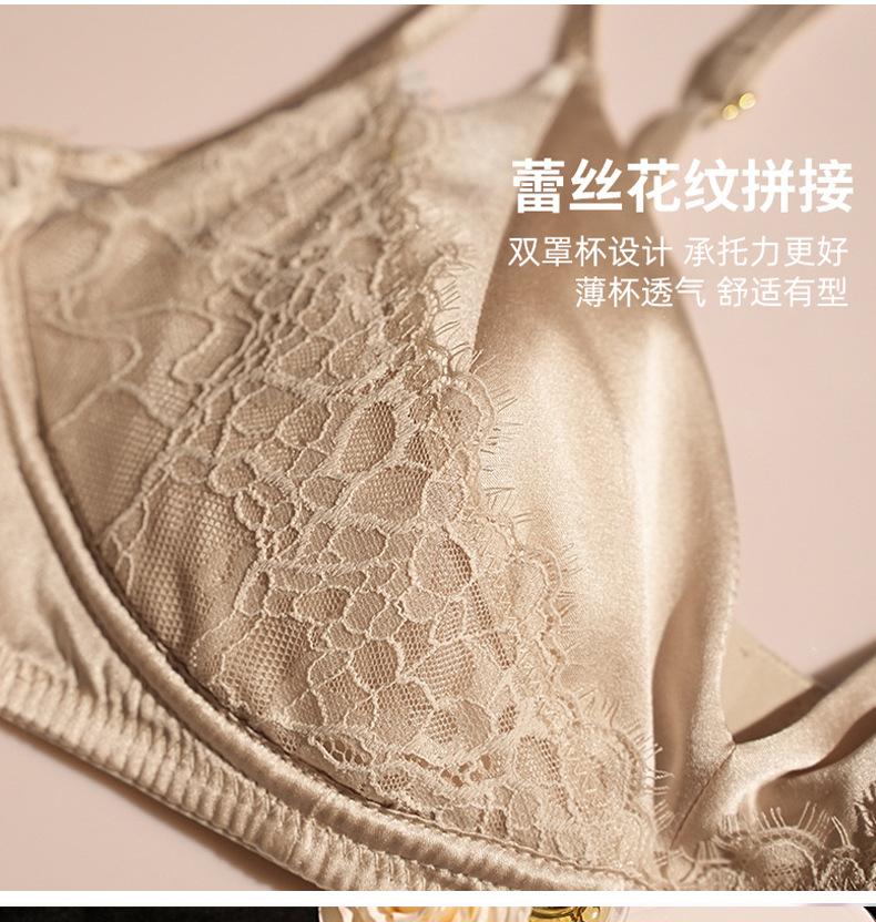 Traje de brasier de seda Yuyue Encaje Ligero Sin aros Seda de morera Brasier Tirantes dobles Ropa interior