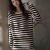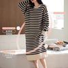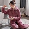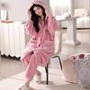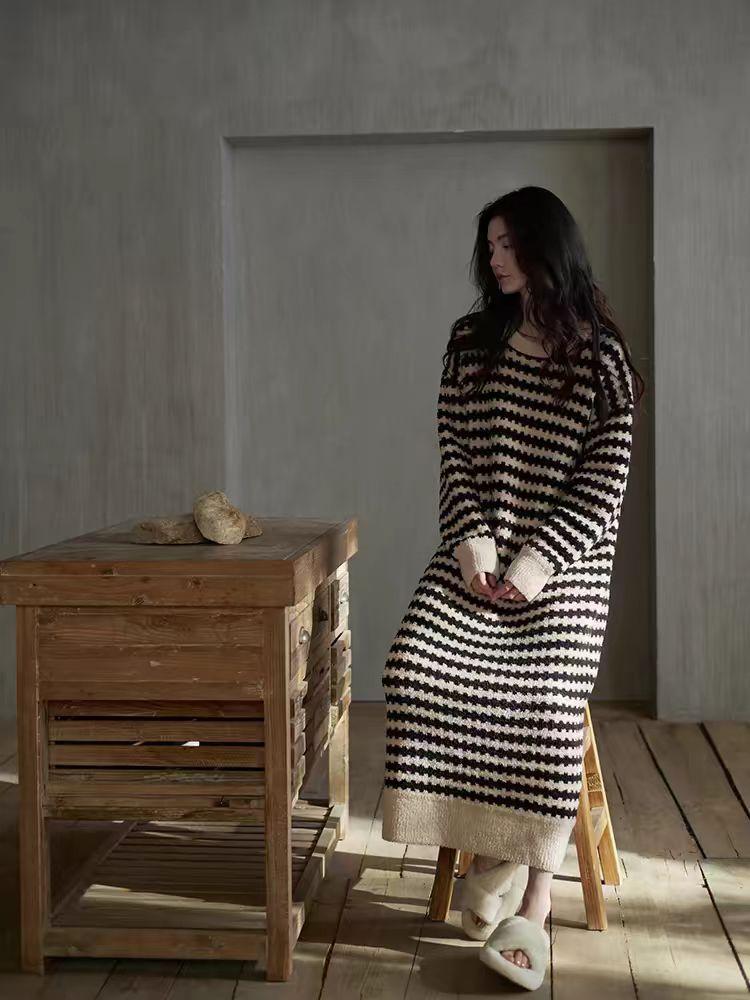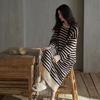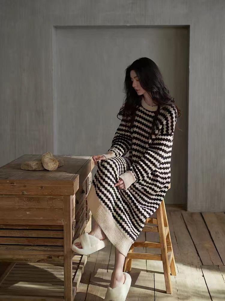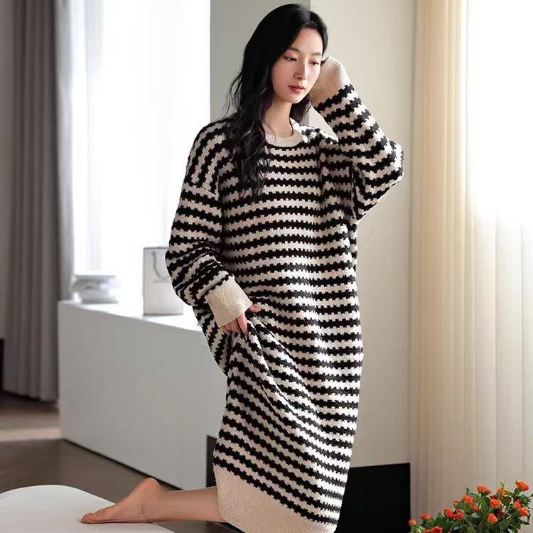 24 Camisón de Invierno de Media Felpa Grueso Cálido Otoño e Invierno Bata de Largo Medio Ropa de Dormir a Rayas Tela de Felpa Alemana