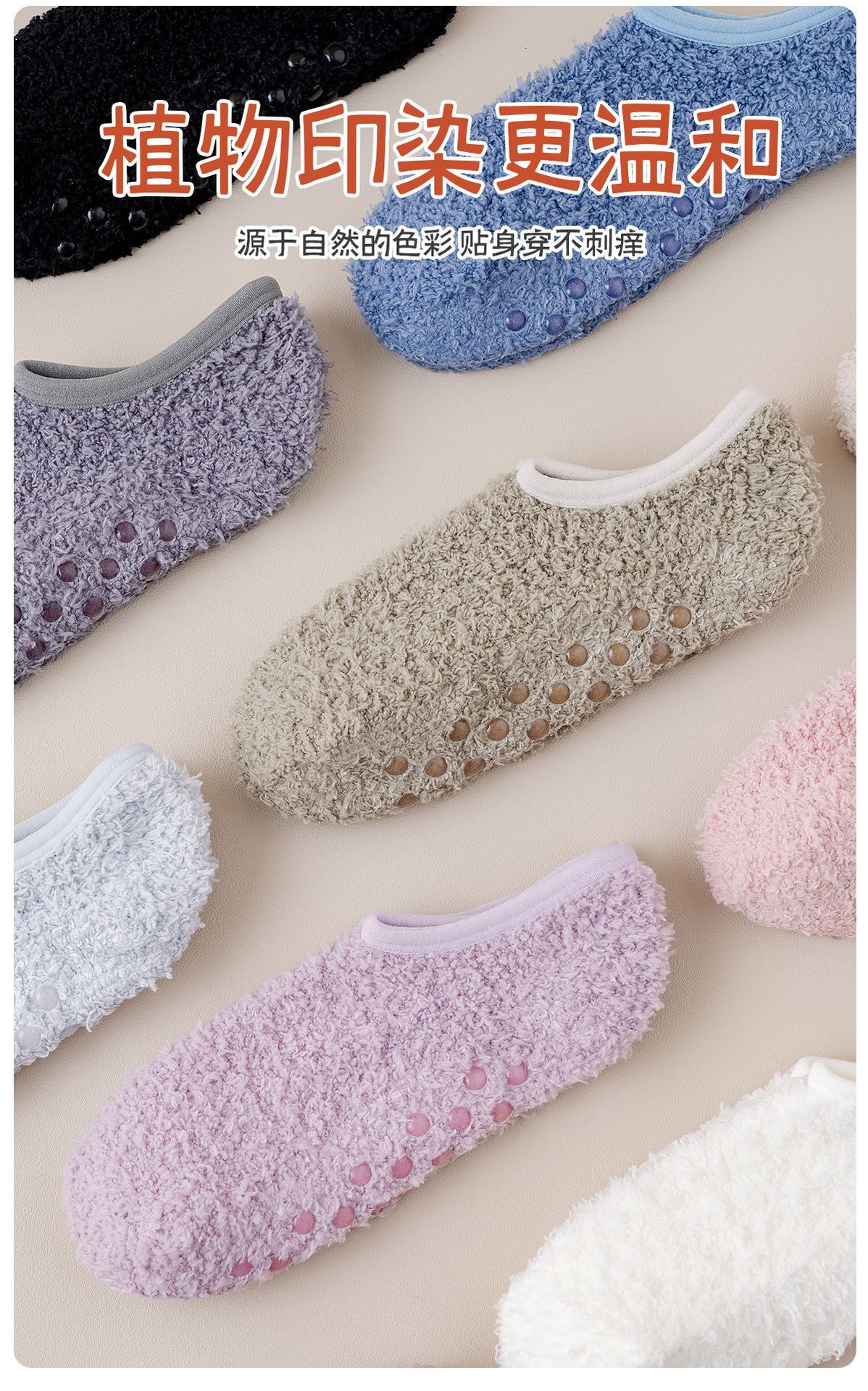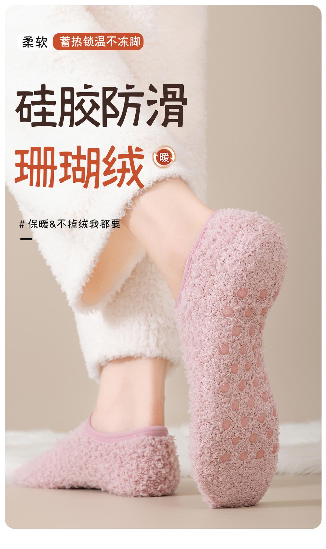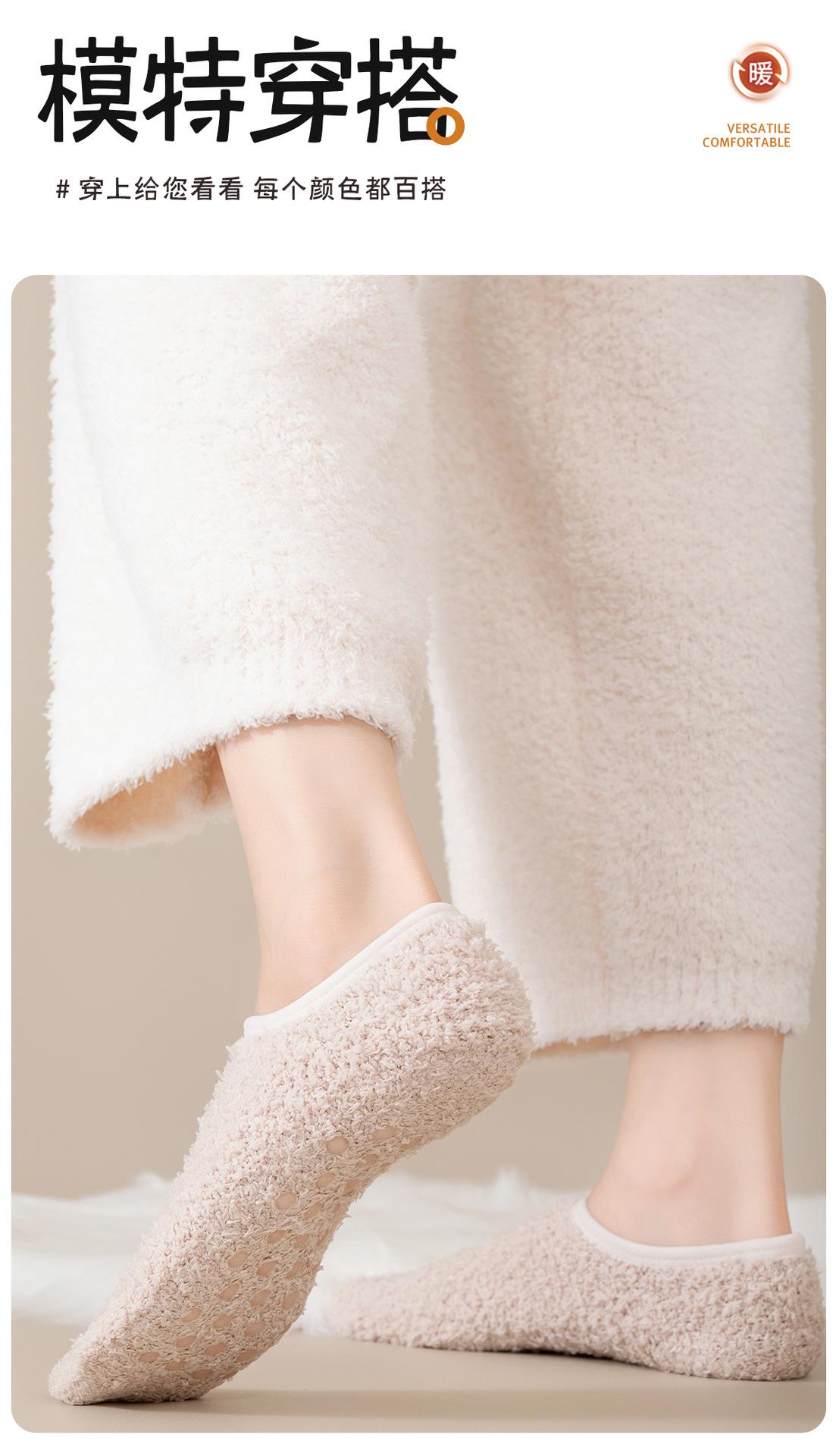 Calcetines de terciopelo coral para mujer, calcetines peludos para el suelo, cálidos para otoño e invierno, para interior, para casa, forrados de vellón, antideslizantes, de tubo corto, para dormir, tipo calcetín de barco