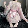 Ropa interior sexy para mujer, kimono, bata de baño, uniforme con estampado de tentación, lazo japonés, traje japonés sexy, 8575