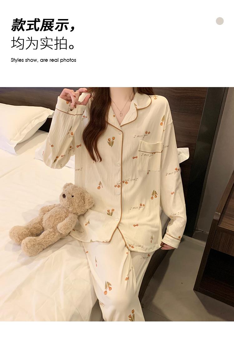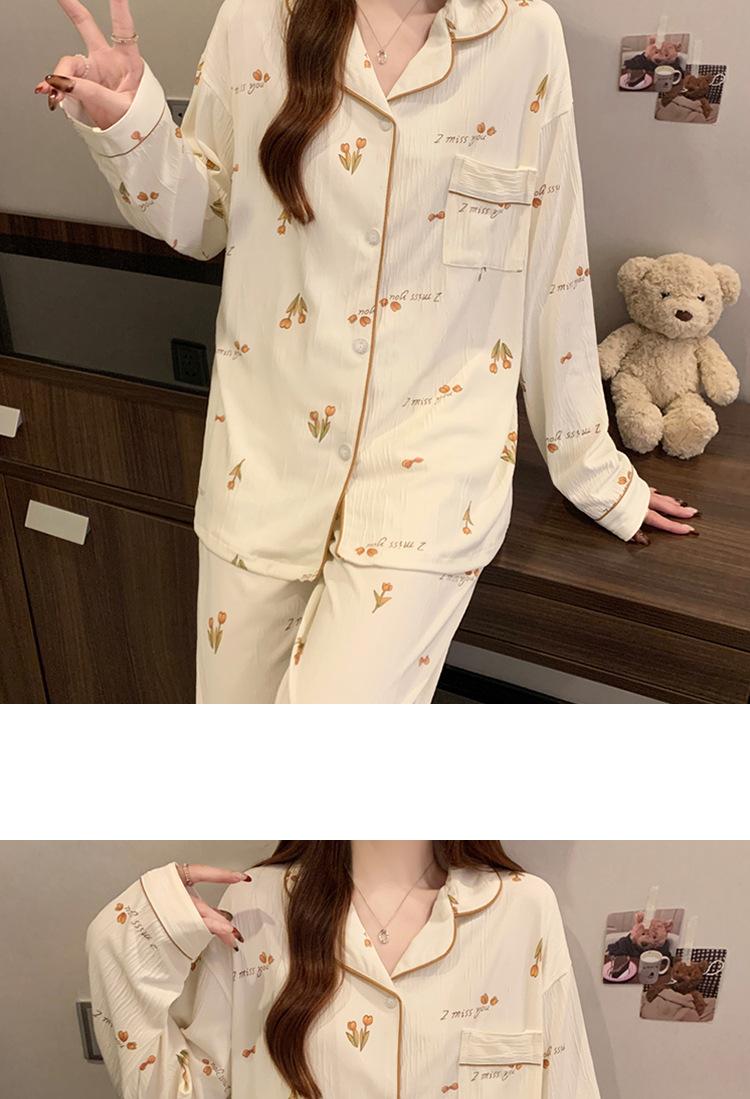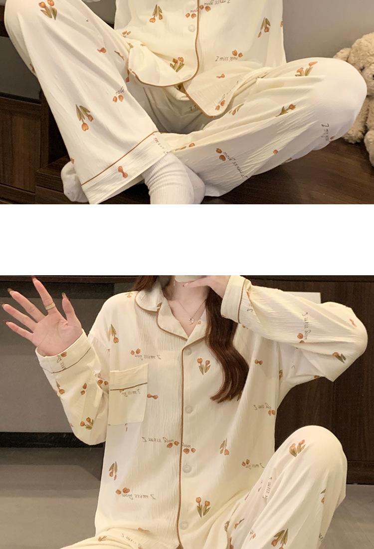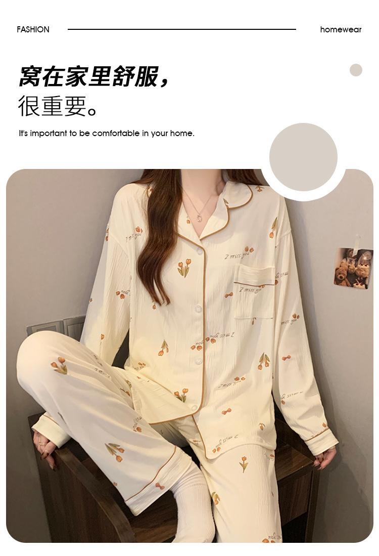 Pijama de dama dulce primavera nuevo traje de manga larga arrugado tulipán sensación de alta gama ropa de hogar se puede usar al por mayor