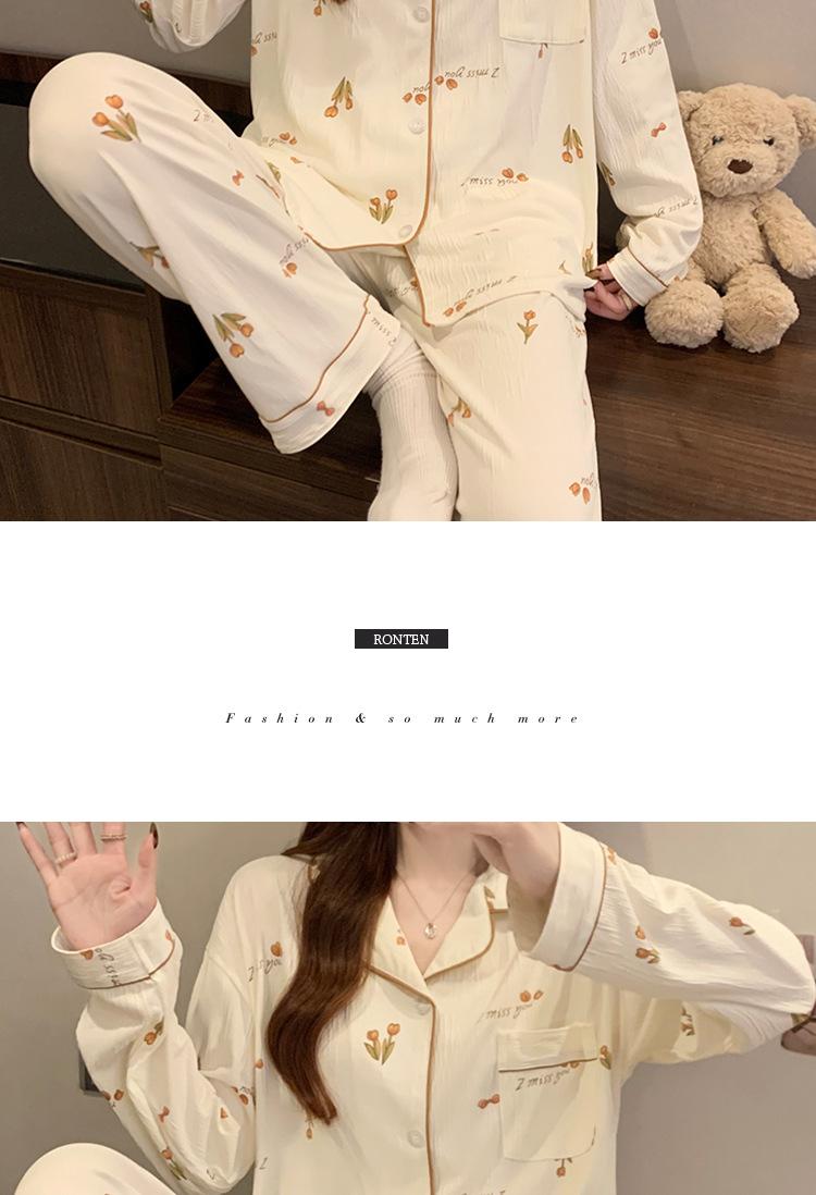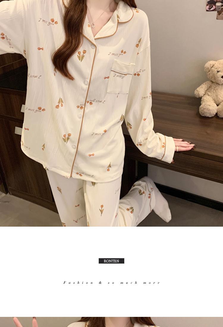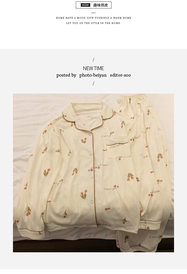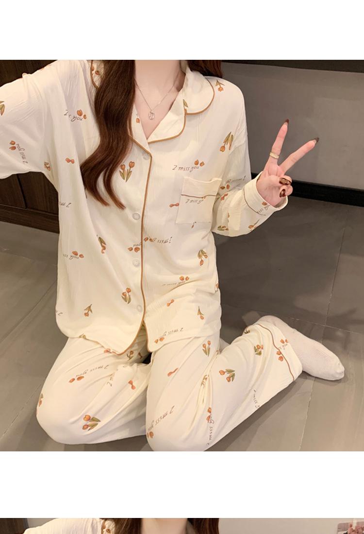 Pijama de dama dulce primavera nuevo traje de manga larga arrugado tulipán sensación de alta gama ropa de hogar se puede usar al por mayor