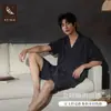 [Cool Silk] Pijamas de seda helada para hombre, primavera y verano, manga corta, jacquard, talla grande, para el hogar