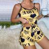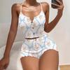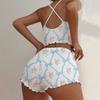 Pijama con estampado de rombos y flores de estilo europeo y americano, novedad, con tirantes y pantalones cortos, para mujer, venta al por mayor
