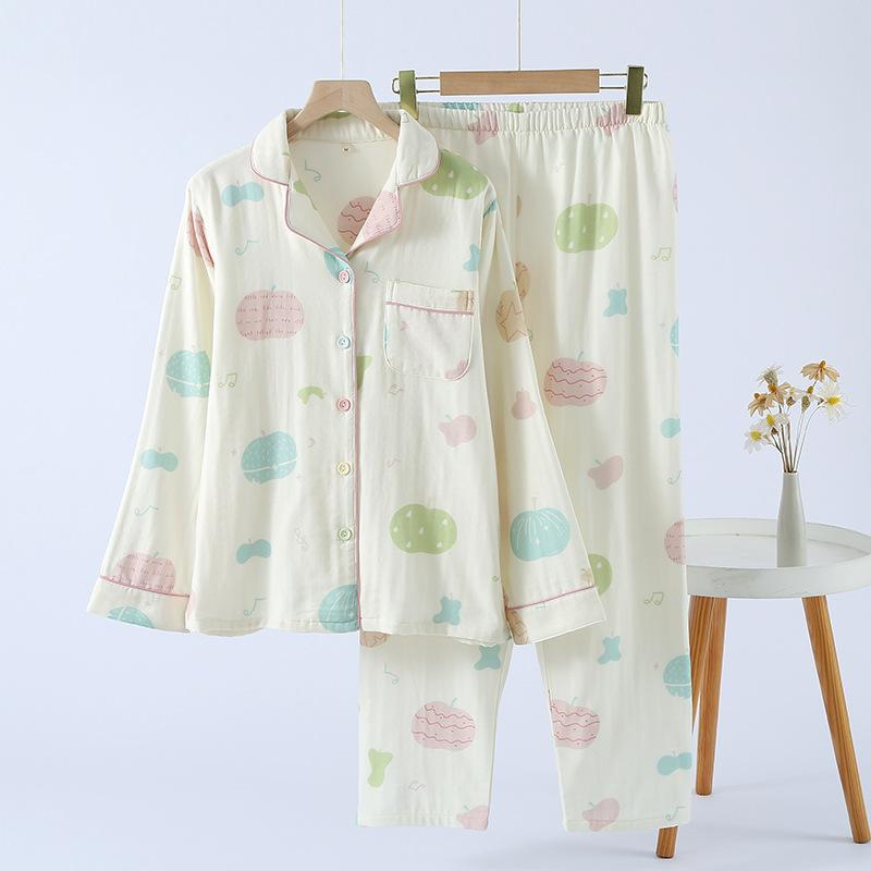 Pijama de gasa de tres capas de algodón simple de nuevo estilo para mujer, ropa de abrigo de manga larga de algodón para primavera, otoño e invierno, ropa para el hogar