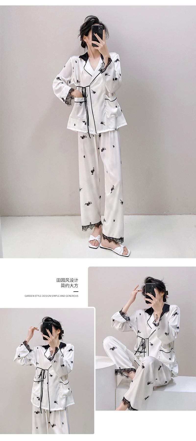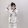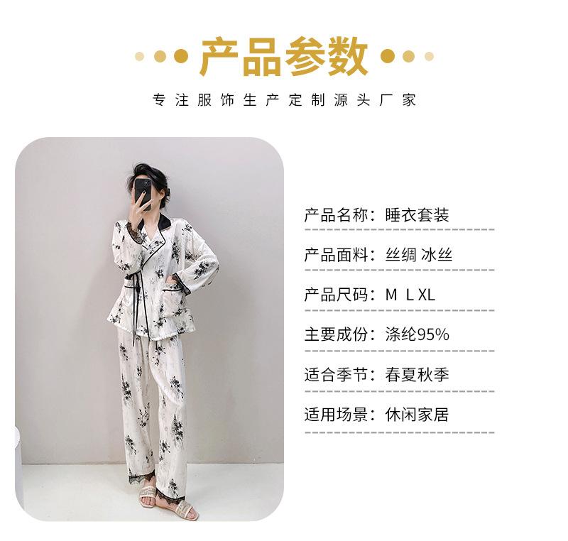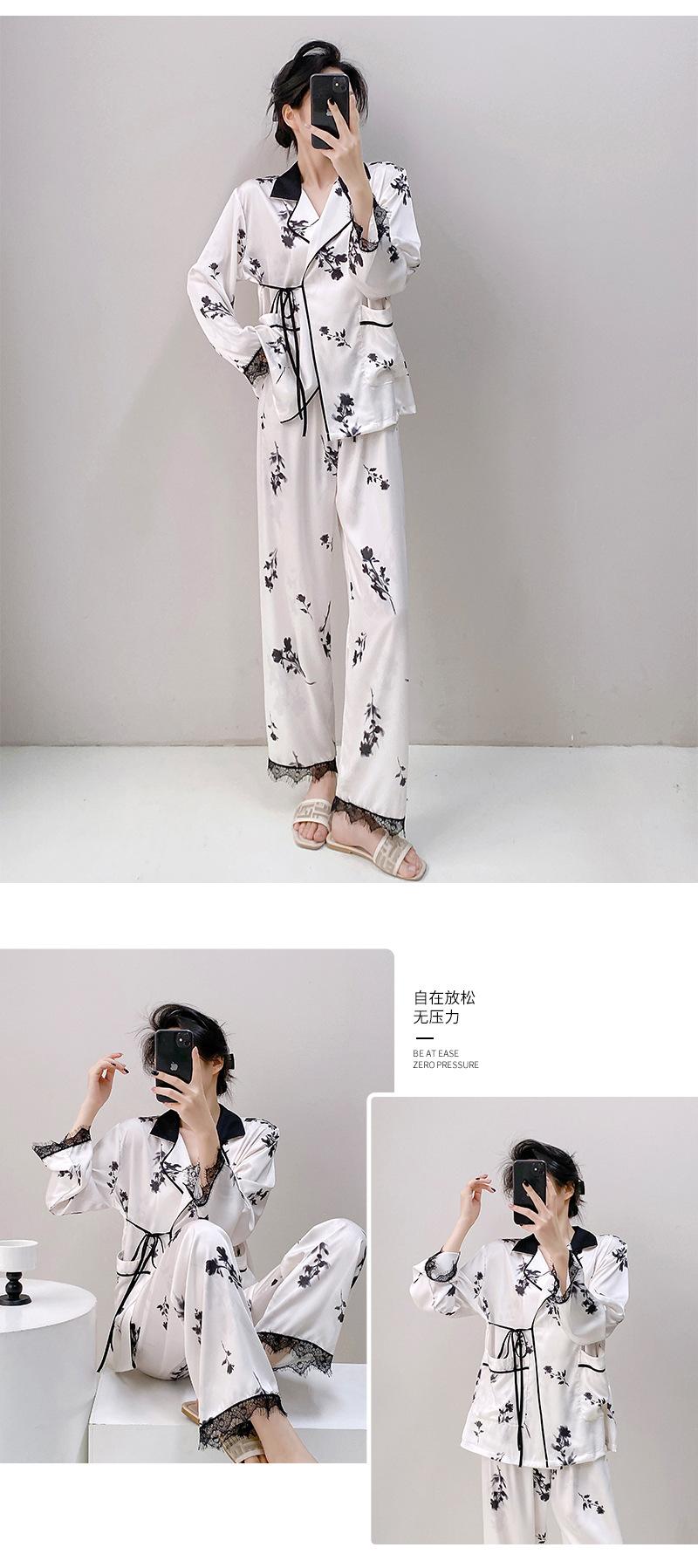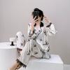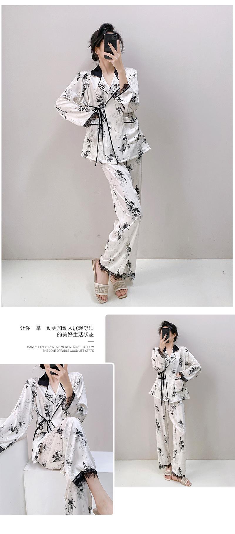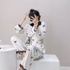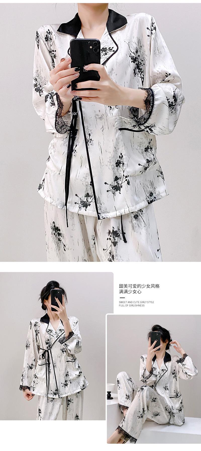 Pijama Nuevo de Seda para Mujer Estampado de Tinta Casual Manga Larga Pantalones Seda de Hielo Se Puede Usar Fuera de Casa Traje de Dos Piezas