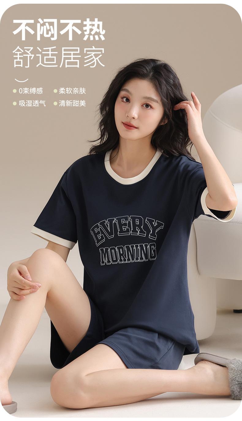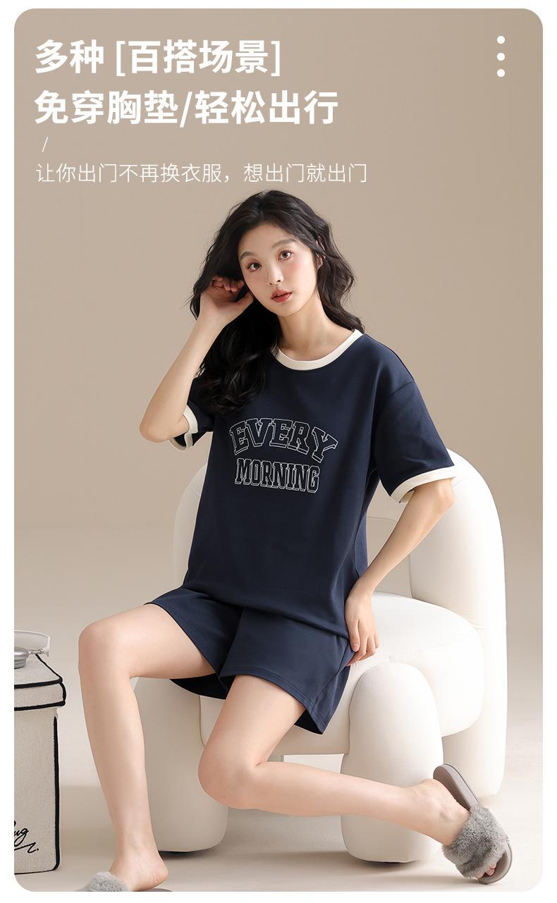 Compra Pijamas de algodón puro de moda para mujer, nuevos pantalones cortos de verano de manga corta, jersey holgado, ropa de abrigo, ropa de casa, traje con almohadilla para el pecho al por mayor en Joom.pro