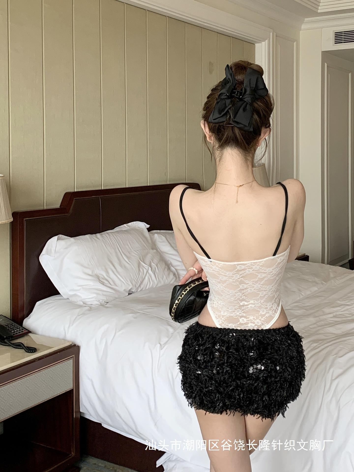 Corsé de una pieza abierto con encaje de lazo para mujer, chaleco delgado sin mangas, lujuria pura, ropa interior sexy