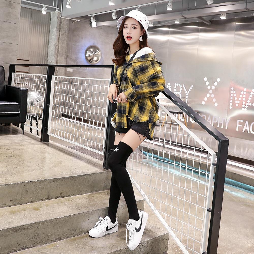 Calcetines de algodón por encima de la rodilla para mujer, de otoño e invierno, antideslizantes, hasta el muslo, altos, japoneses, jk, urbanos