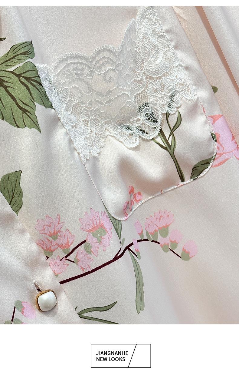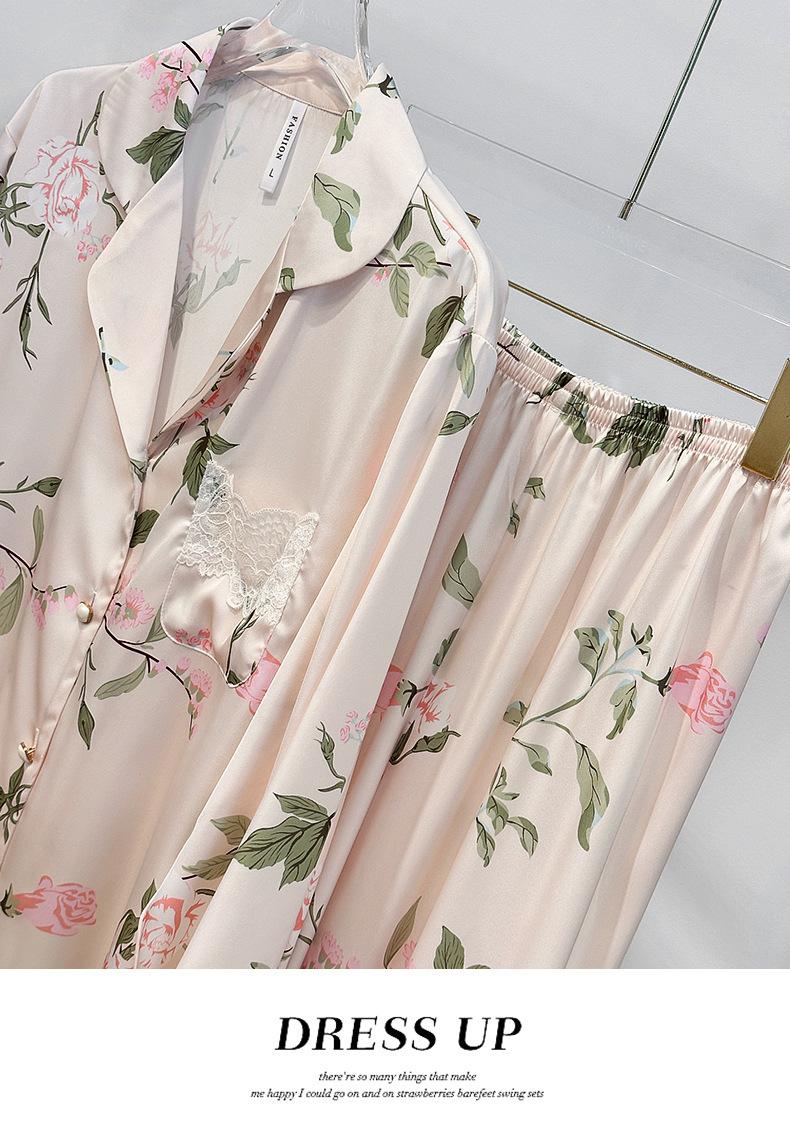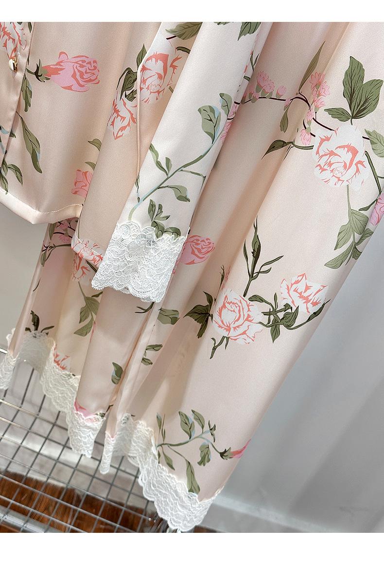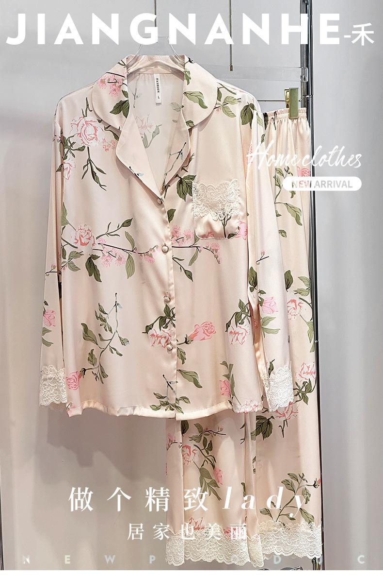 Pijamas de tiro real para mujer, primavera y verano, nuevo estilo 2025, con encaje rosa acacia, mangas largas y pantalones, ropa de casa, traje
