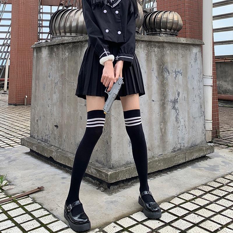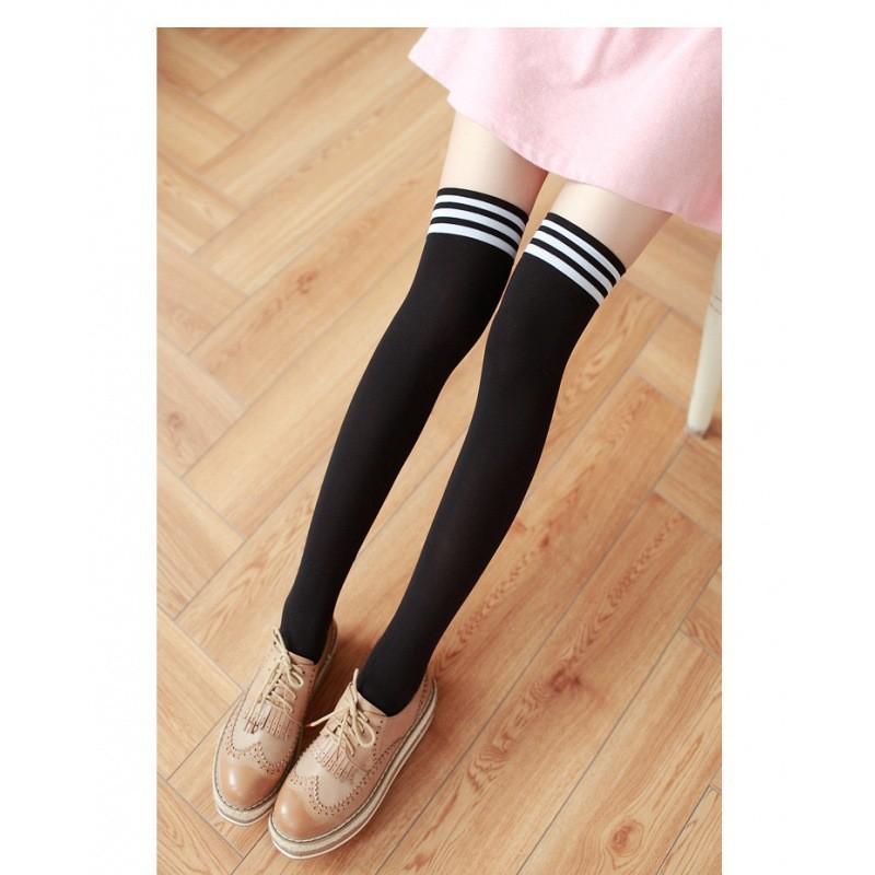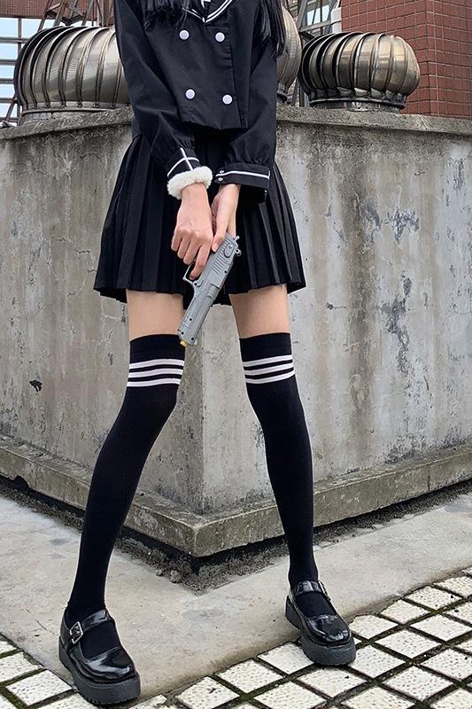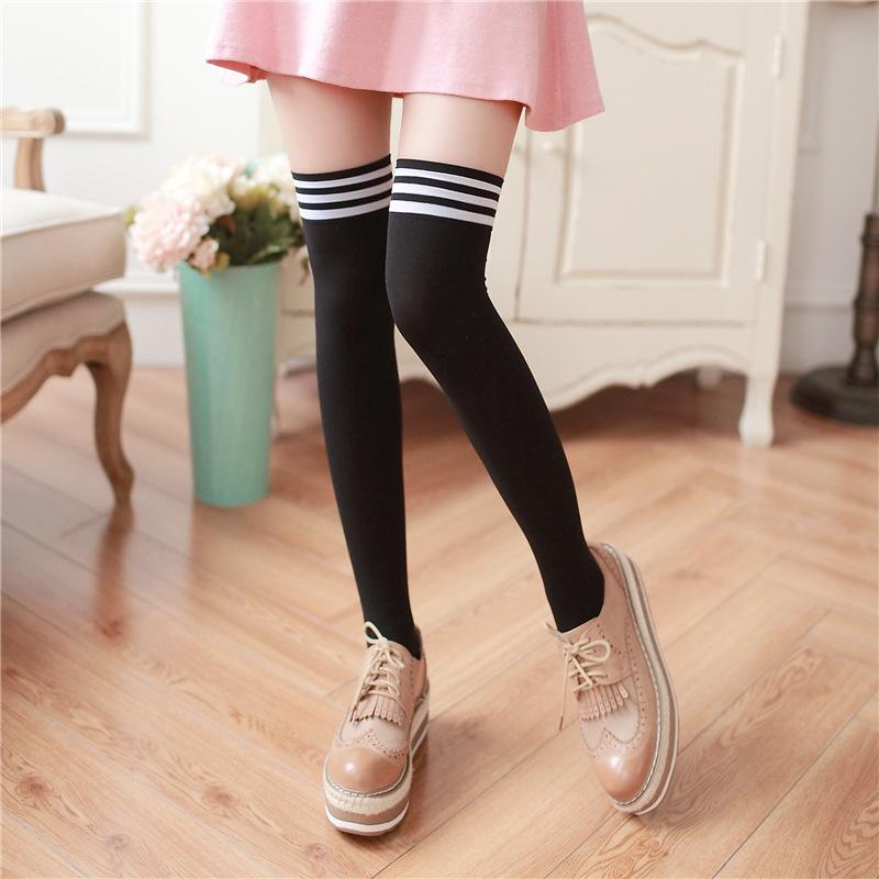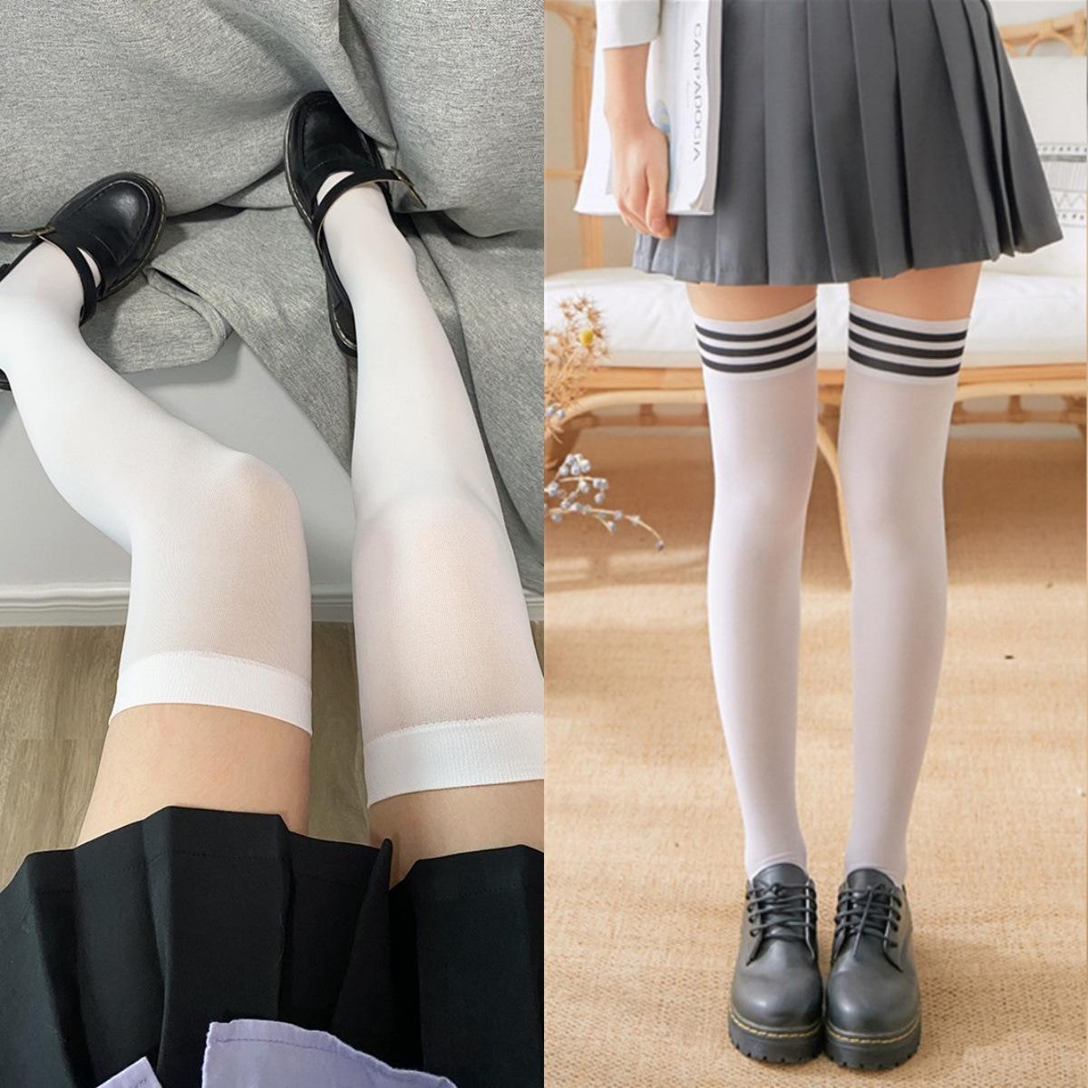 Primavera, verano y otoño estilo japonés tres calcetines altos antideslizantes sobre la rodilla calcetines de estilo académico para mujer medias de medio muslo