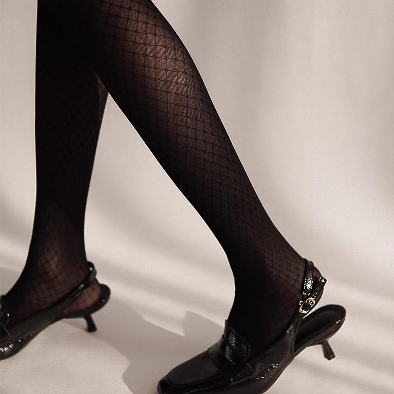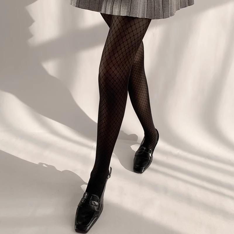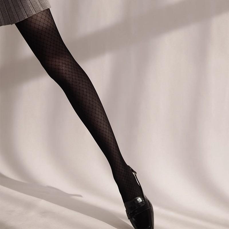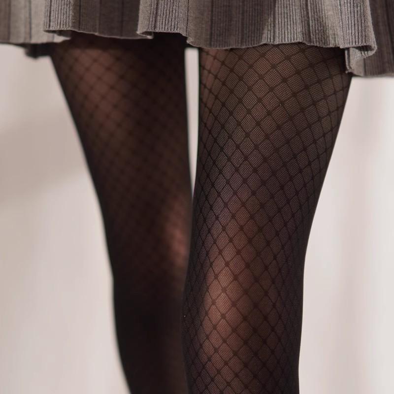 Calcetines Negros de Celosía Fina Leggings Negros de Seda con Estampado de Diamantes a Cuadros Primavera y Otoño Medias de Seda Finas para Piernas Pantimedias para Mujer Delgadas Sexy