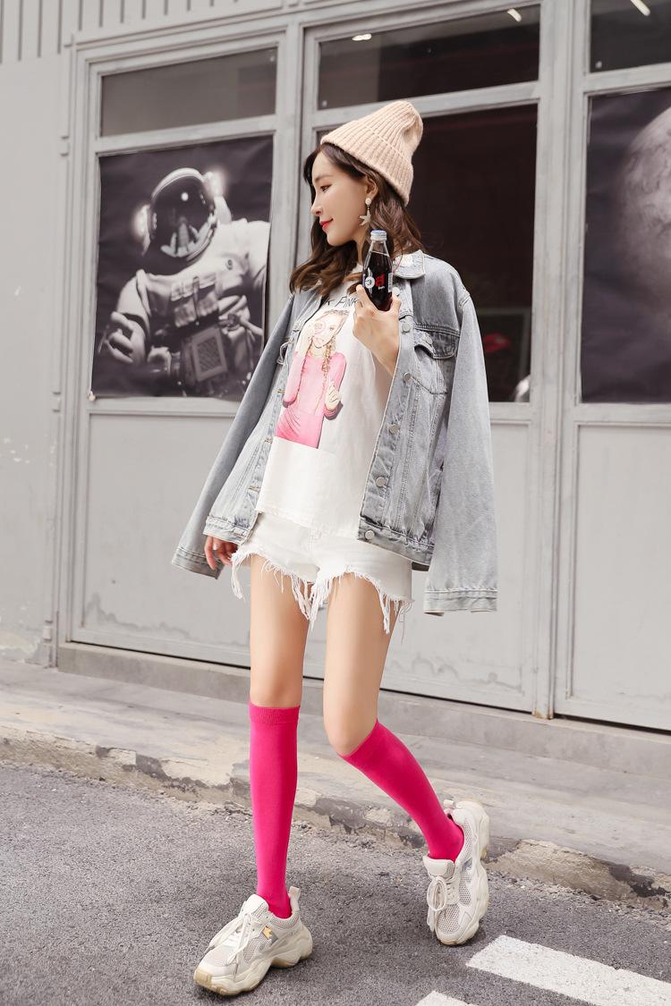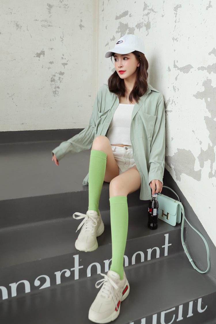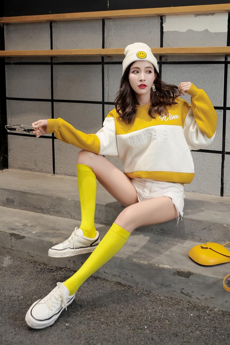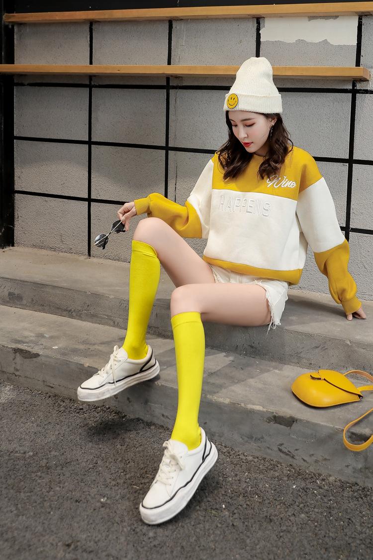 Nombre del producto:2008Calcetines Altos Lisos Color Caramelo