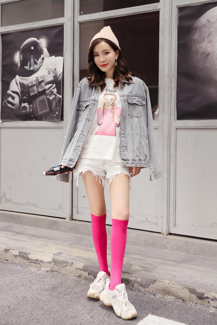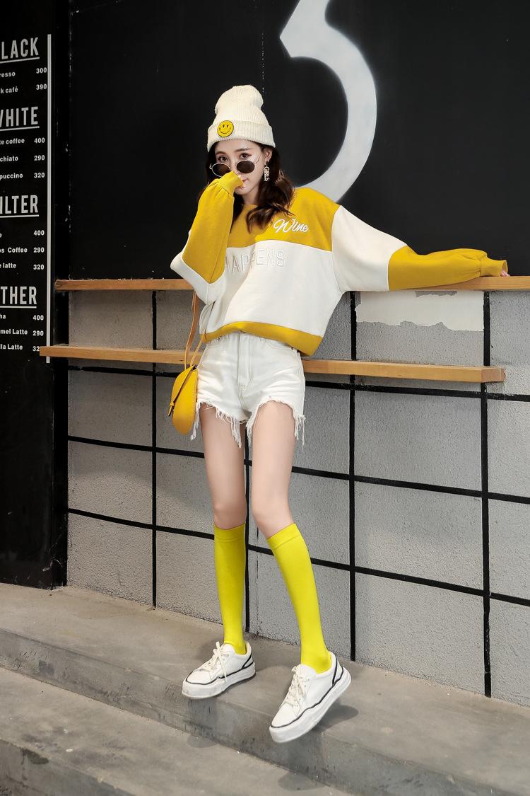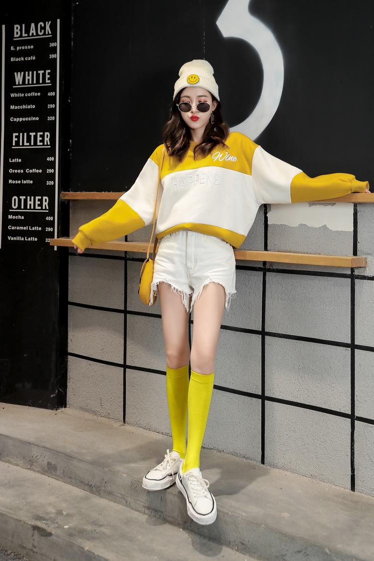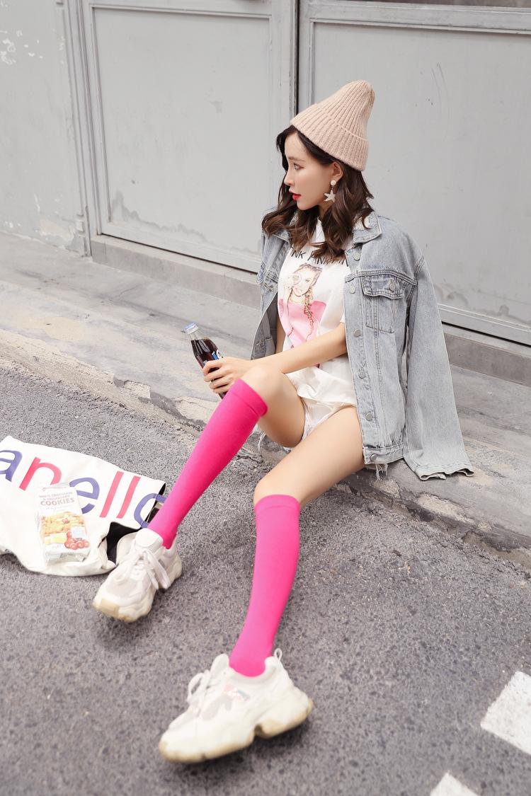 Nombre del producto:2008Calcetines Altos Lisos Color Caramelo