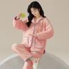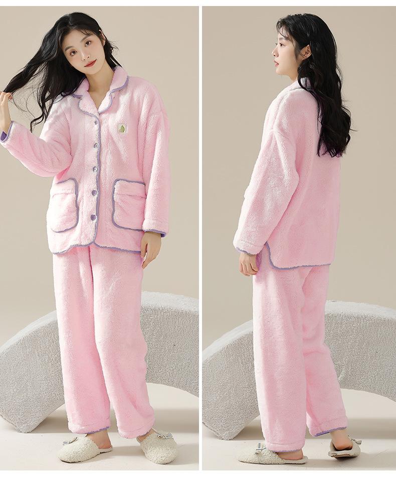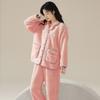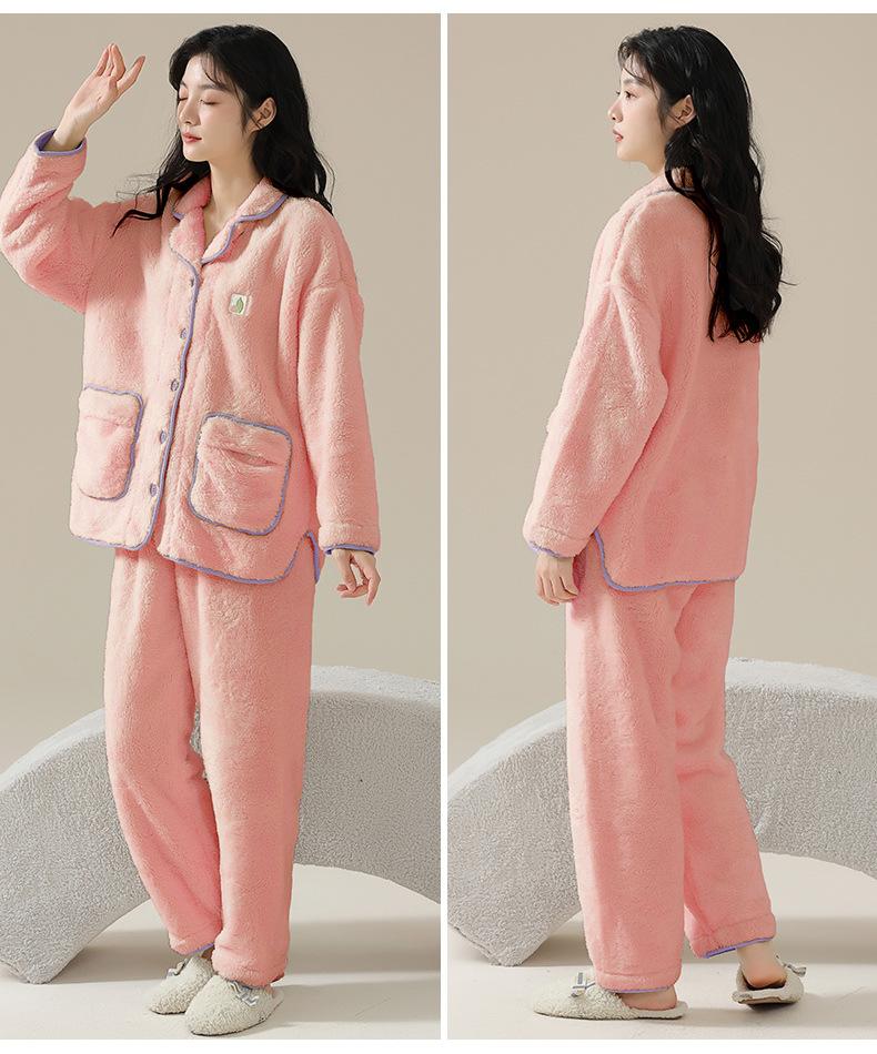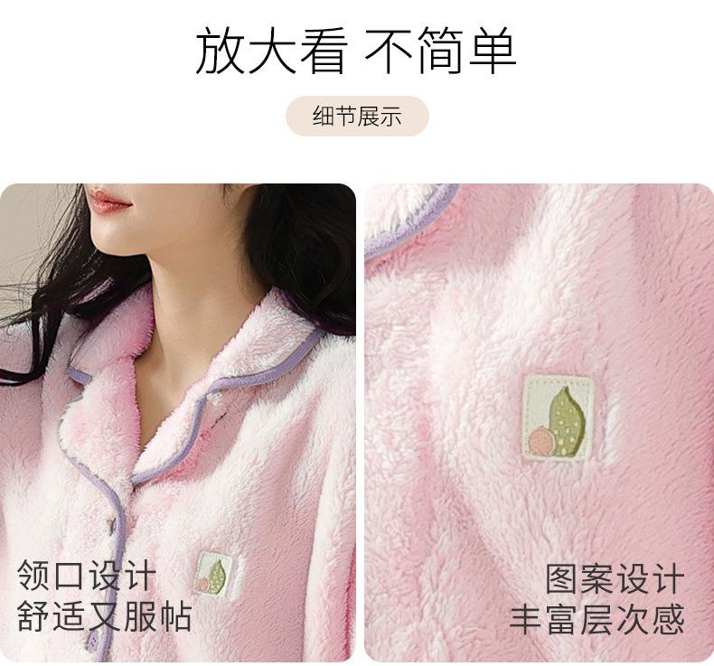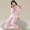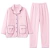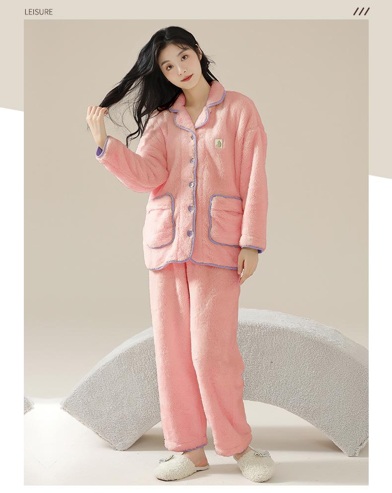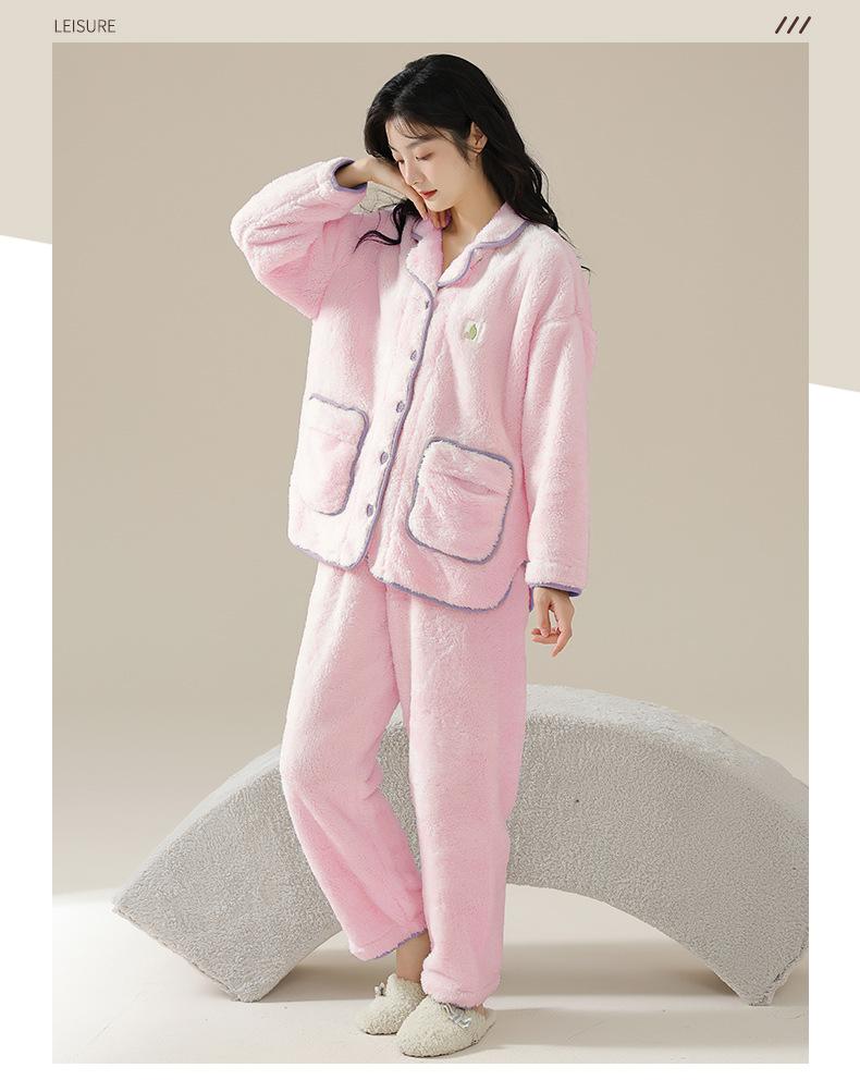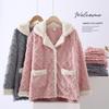 Pijama de Franela Otoño e Invierno con Forro Polar Grueso para Mujer Cálido Ropa de Casa Cárdigan Traje Sencillo Casual para Usar Afuera