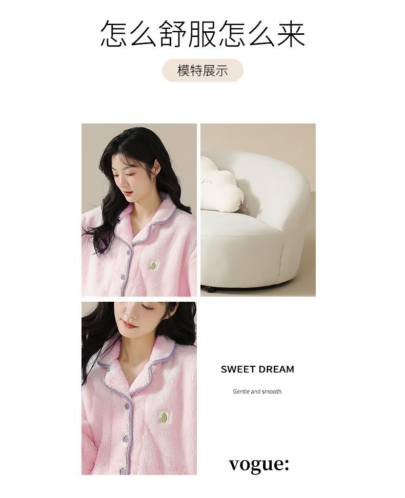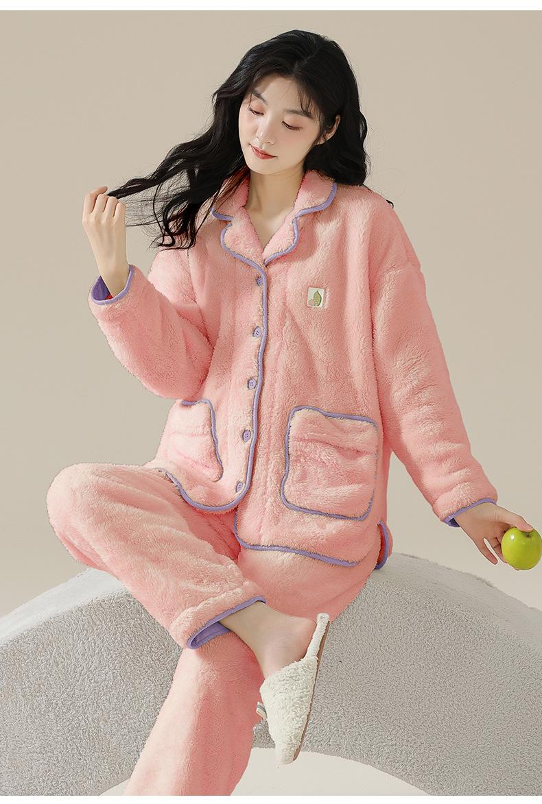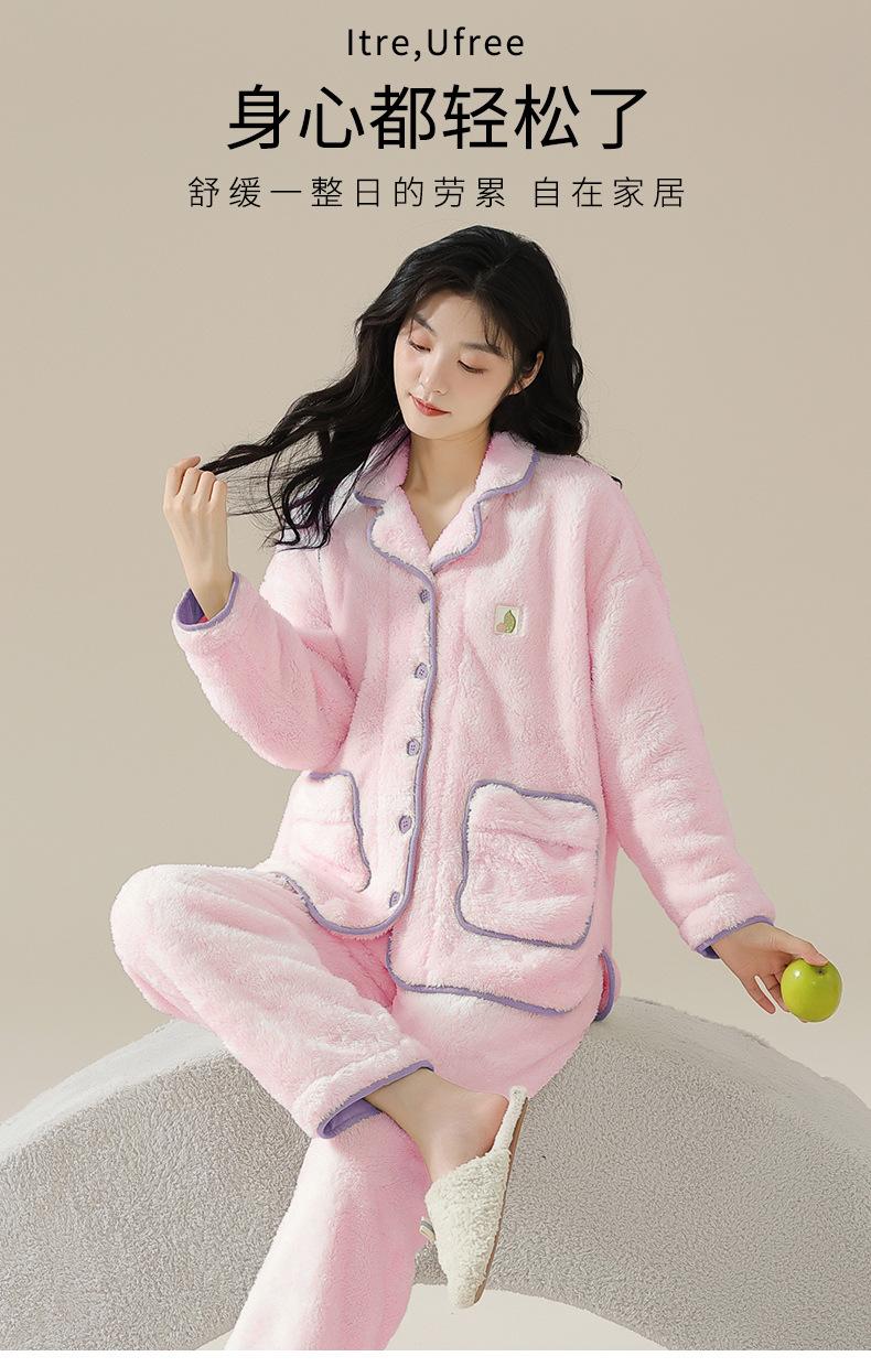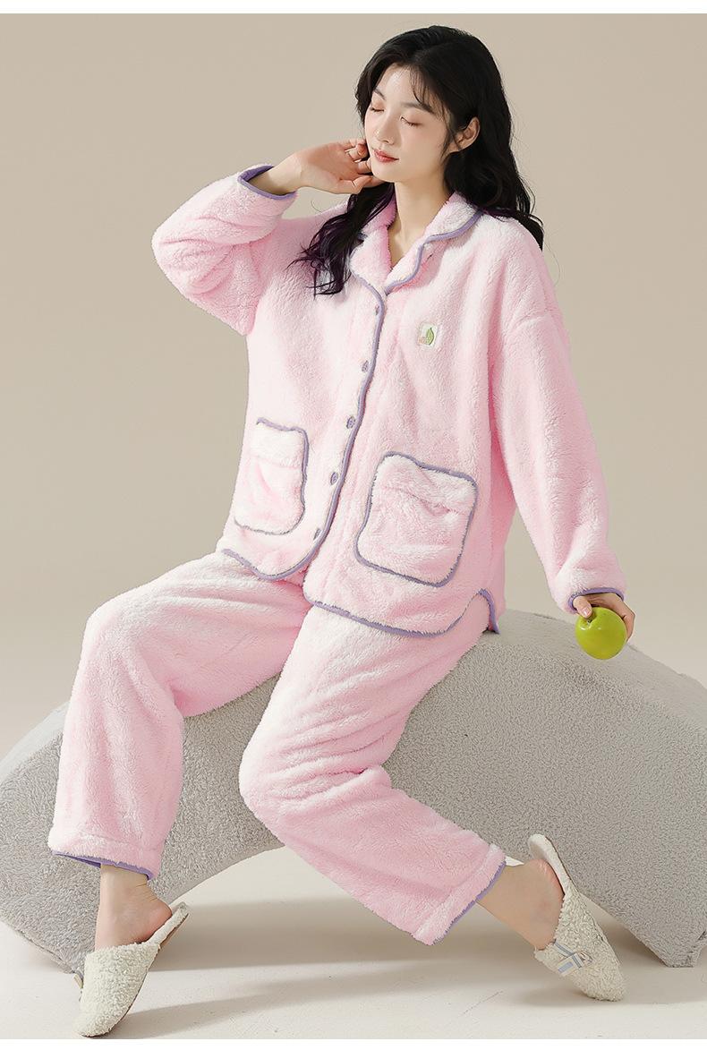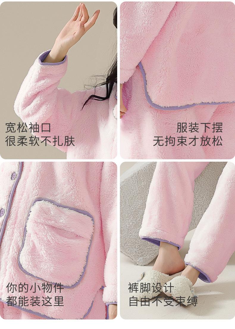 Pijama de Franela Otoño e Invierno con Forro Polar Grueso para Mujer Cálido Ropa de Casa Cárdigan Traje Sencillo Casual para Usar Afuera