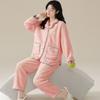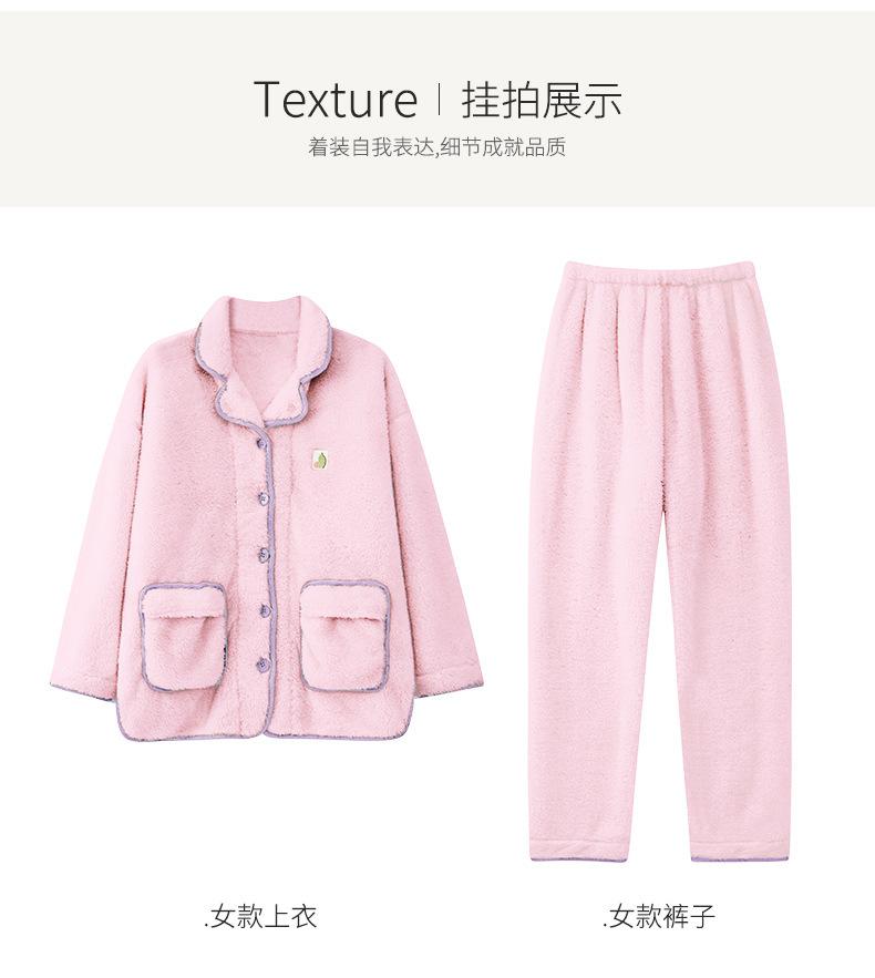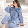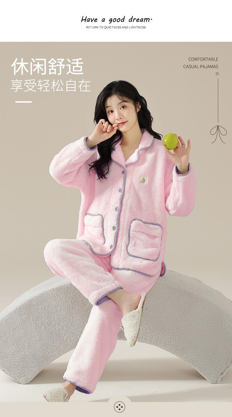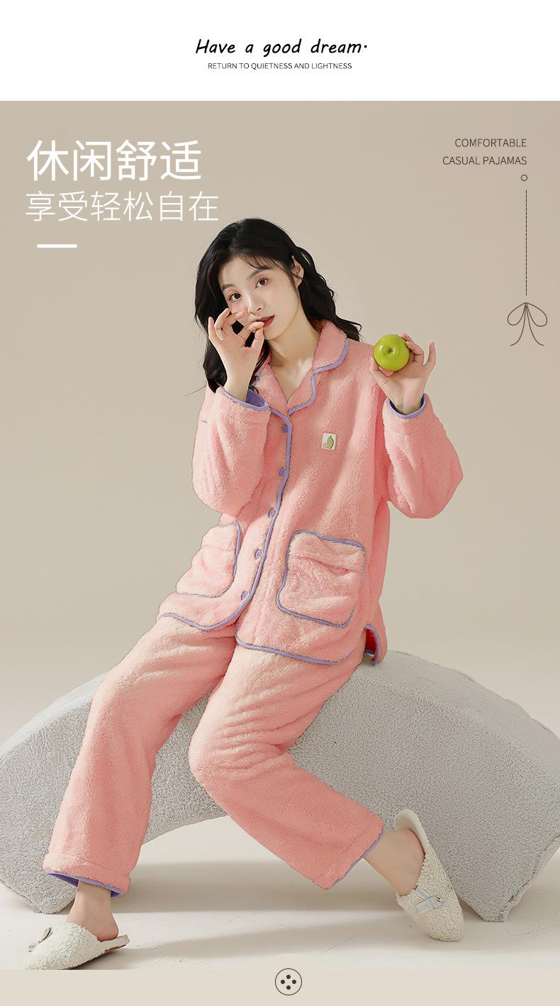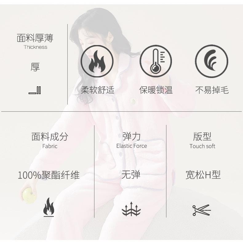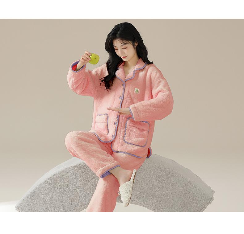 Pijama de Franela Otoño e Invierno con Forro Polar Grueso para Mujer Cálido Ropa de Casa Cárdigan Traje Sencillo Casual para Usar Afuera