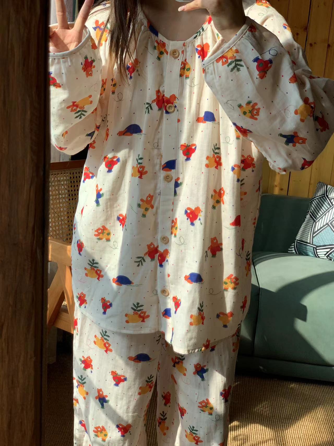 Ice bear-long-sleeved trousers double-layer gauze suit M