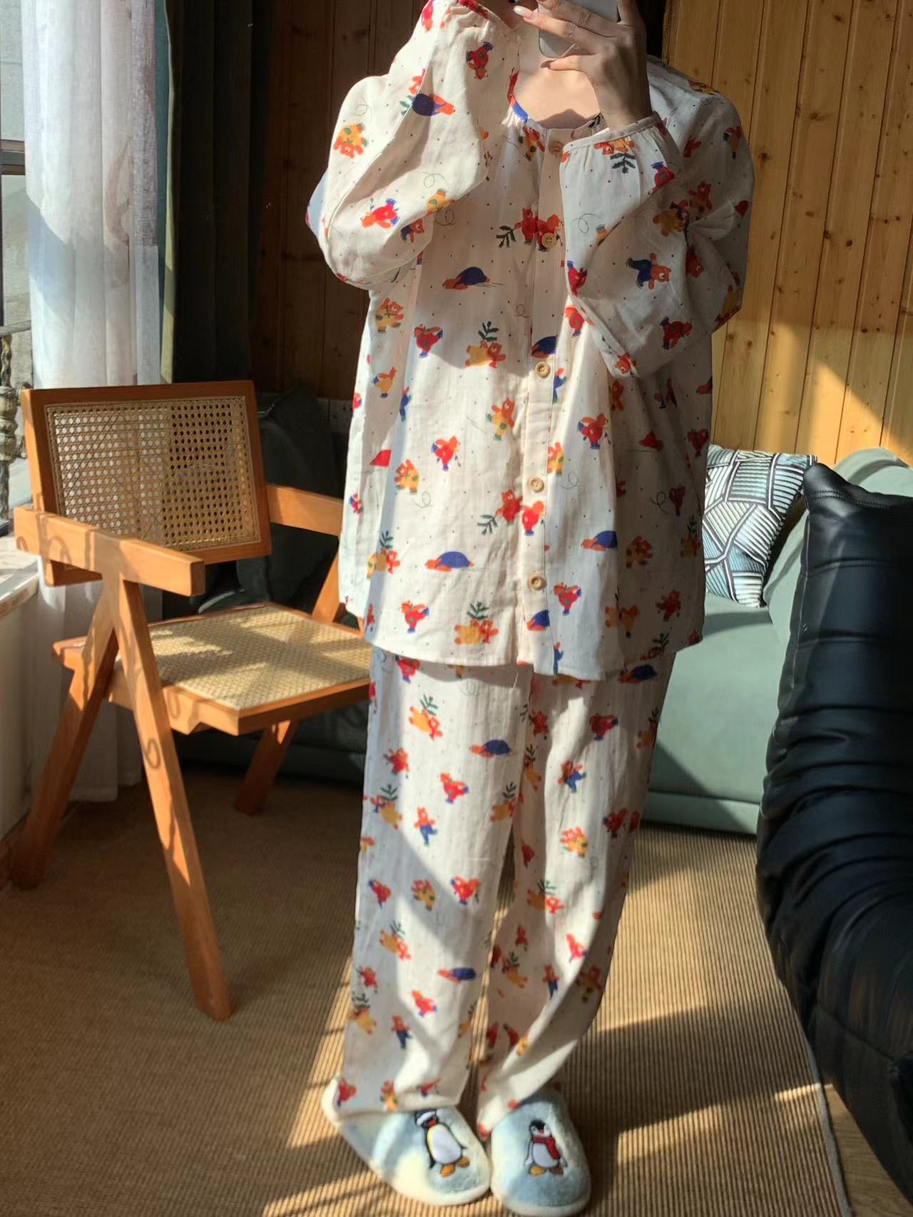 Ice bear-long-sleeved trousers double-layer gauze suit XL