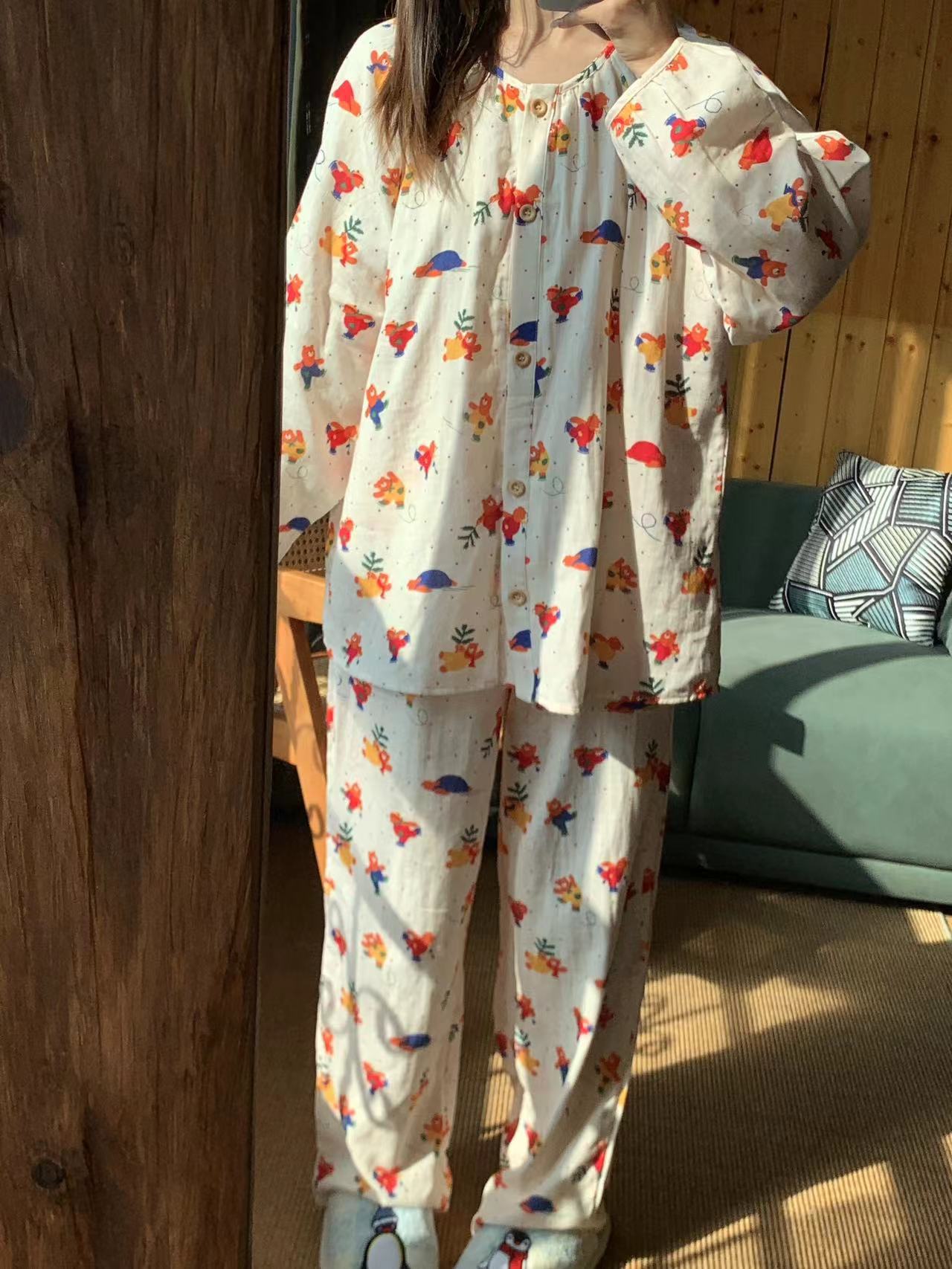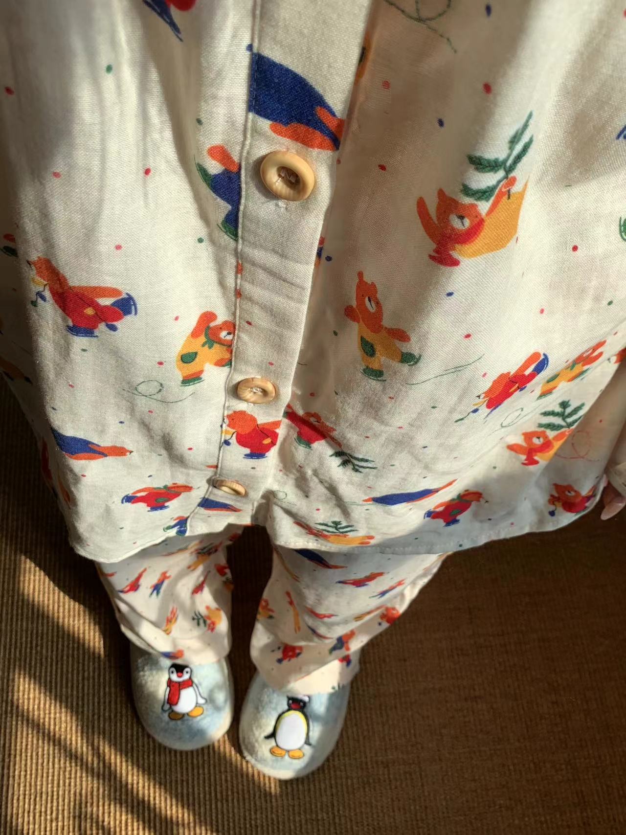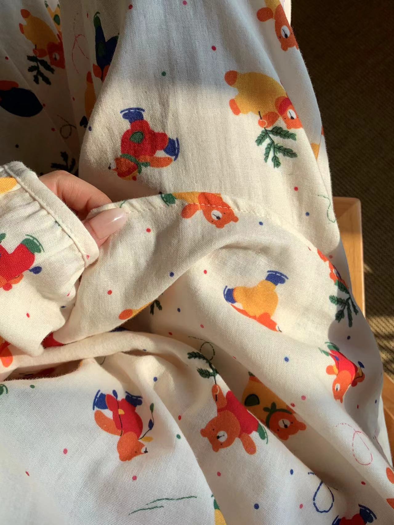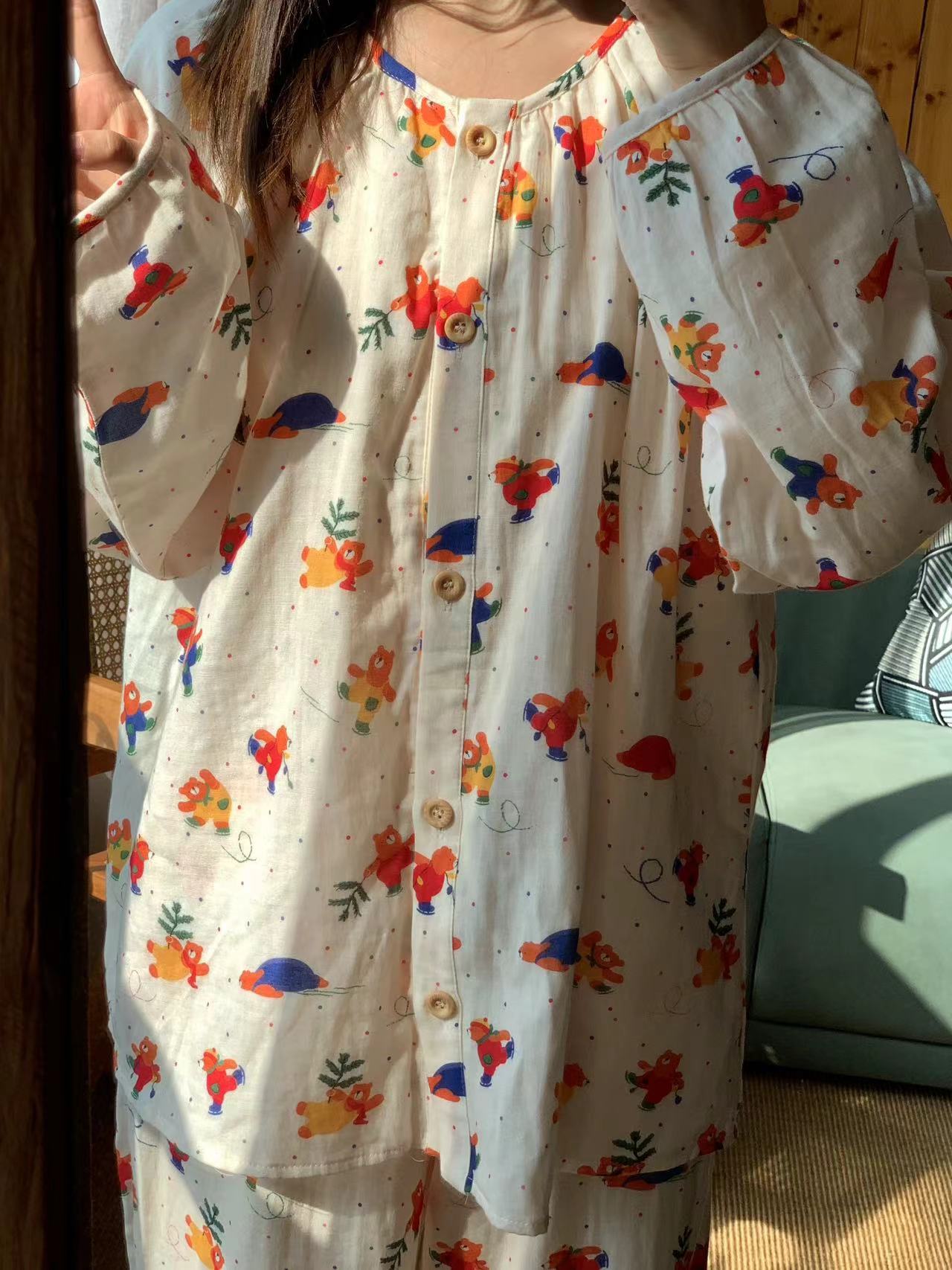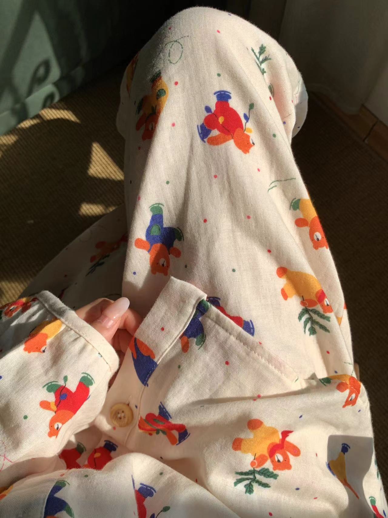 Ice bear-long-sleeved trousers double-layer gauze suit