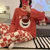 Pijama de algodón de doble capa con cuello redondo y estampado de oso de hielo, ideal para el hogar, con pantalones de manga larga para uso exterior.