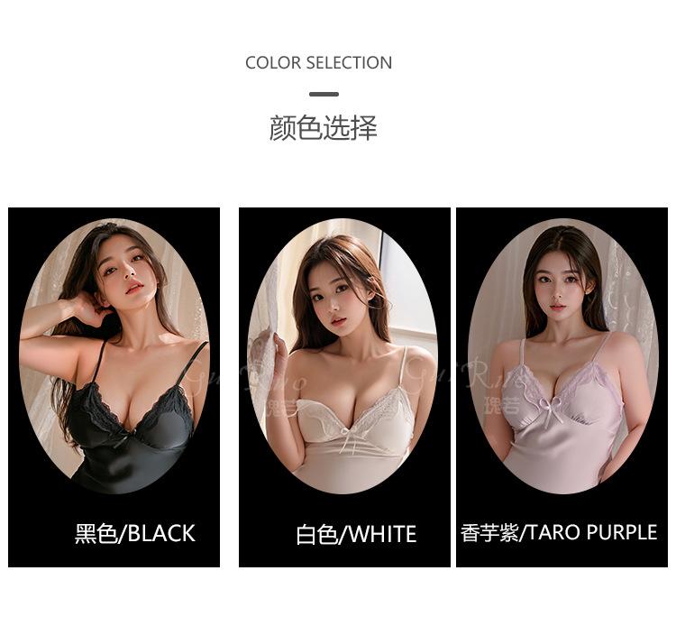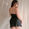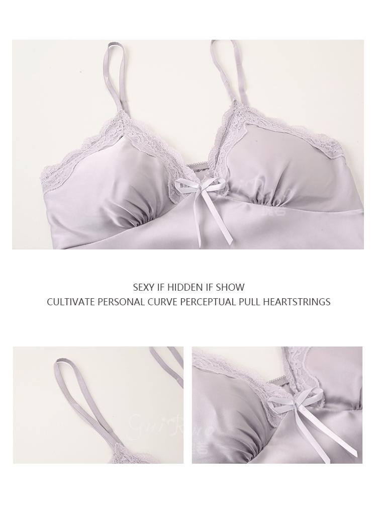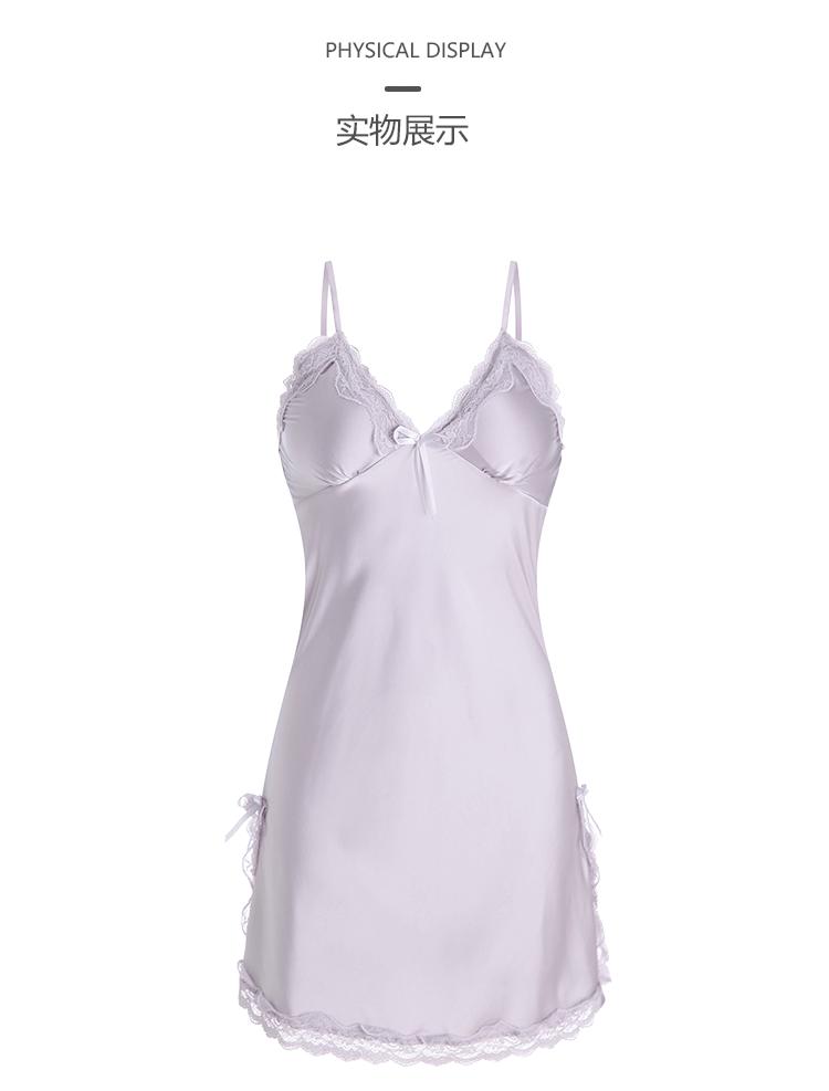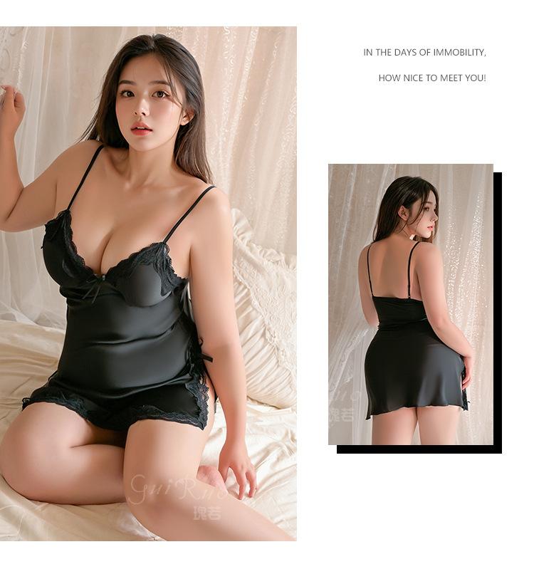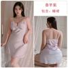 Camisón de satén con encaje, sin espalda, con escote en V profundo, sexy, color rosa, con almohadilla para el pecho, talla grande, 2051