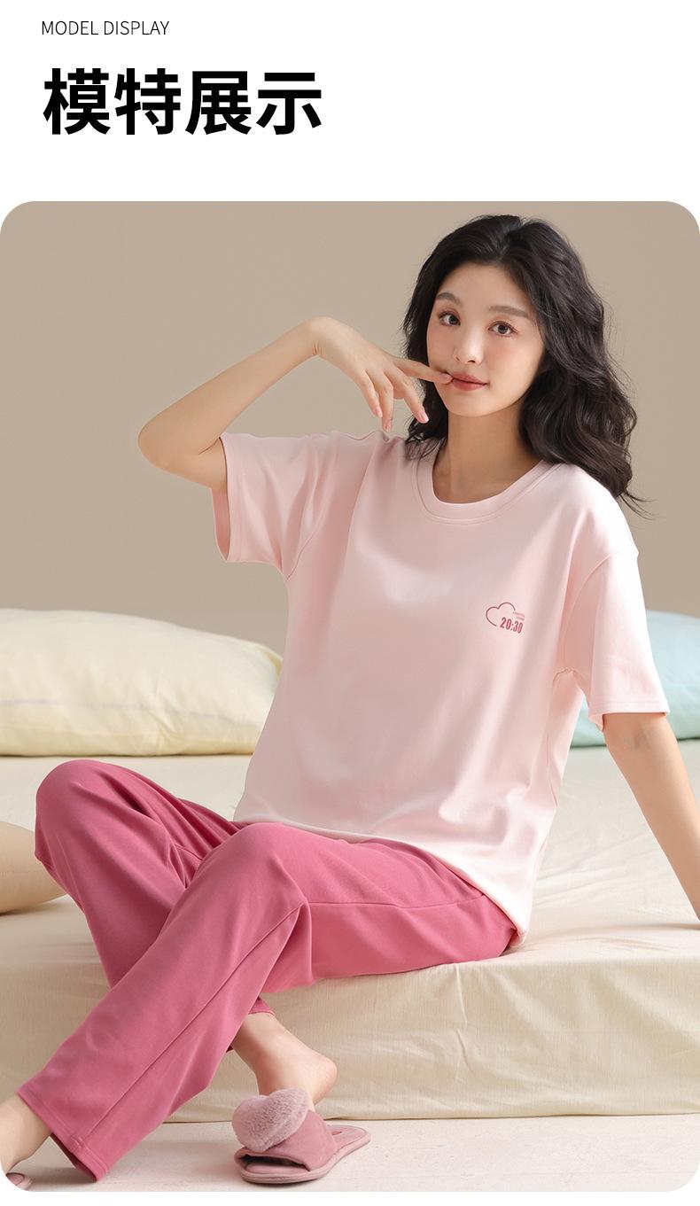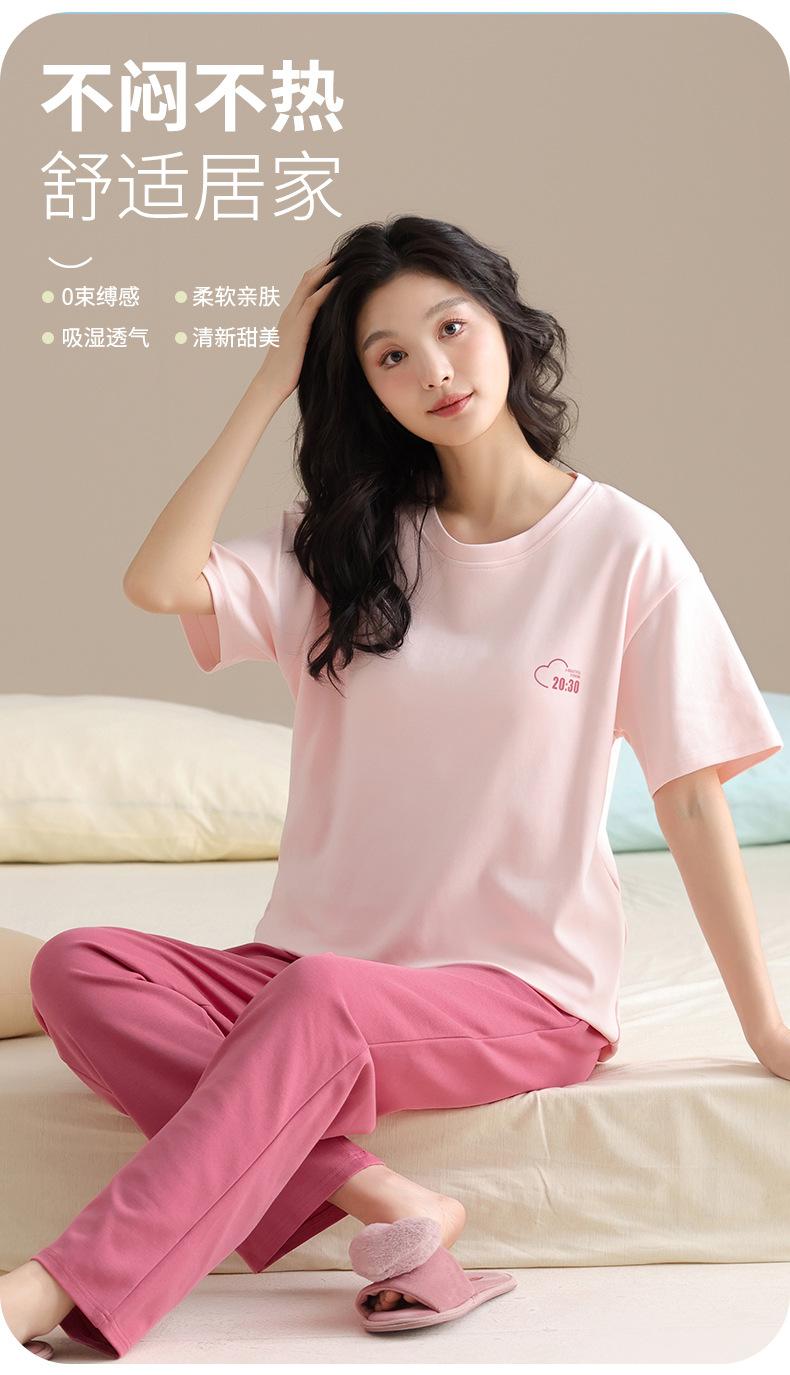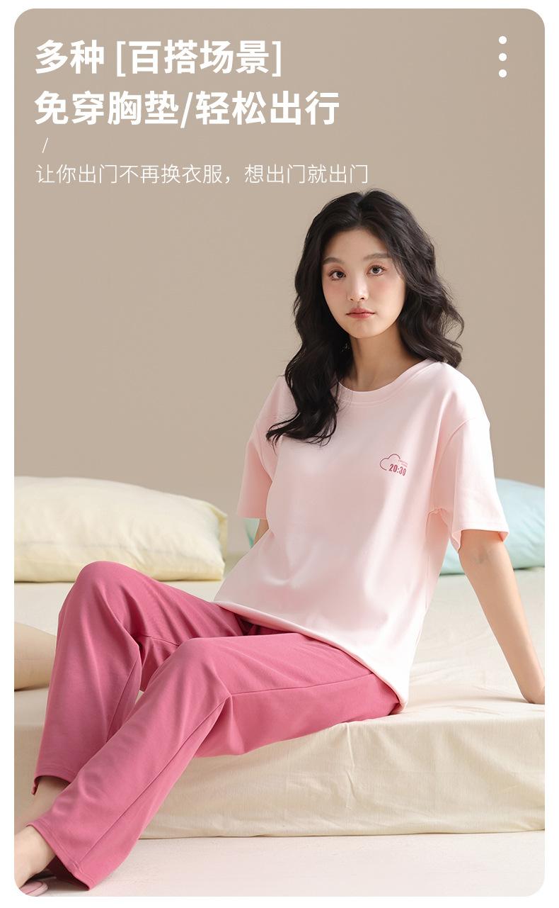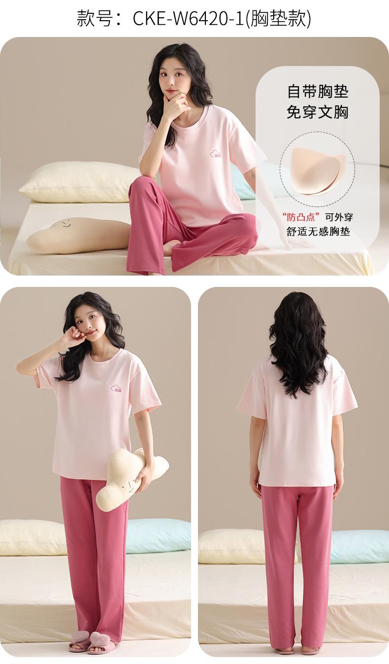 Pijama Algodón Mujer Verano Nueva Llegada Pantalones de Manga Corta con Almohadilla en el Pecho Sencillo Algodón Ajuste Holgado Traje Ropa para Uso Exterior