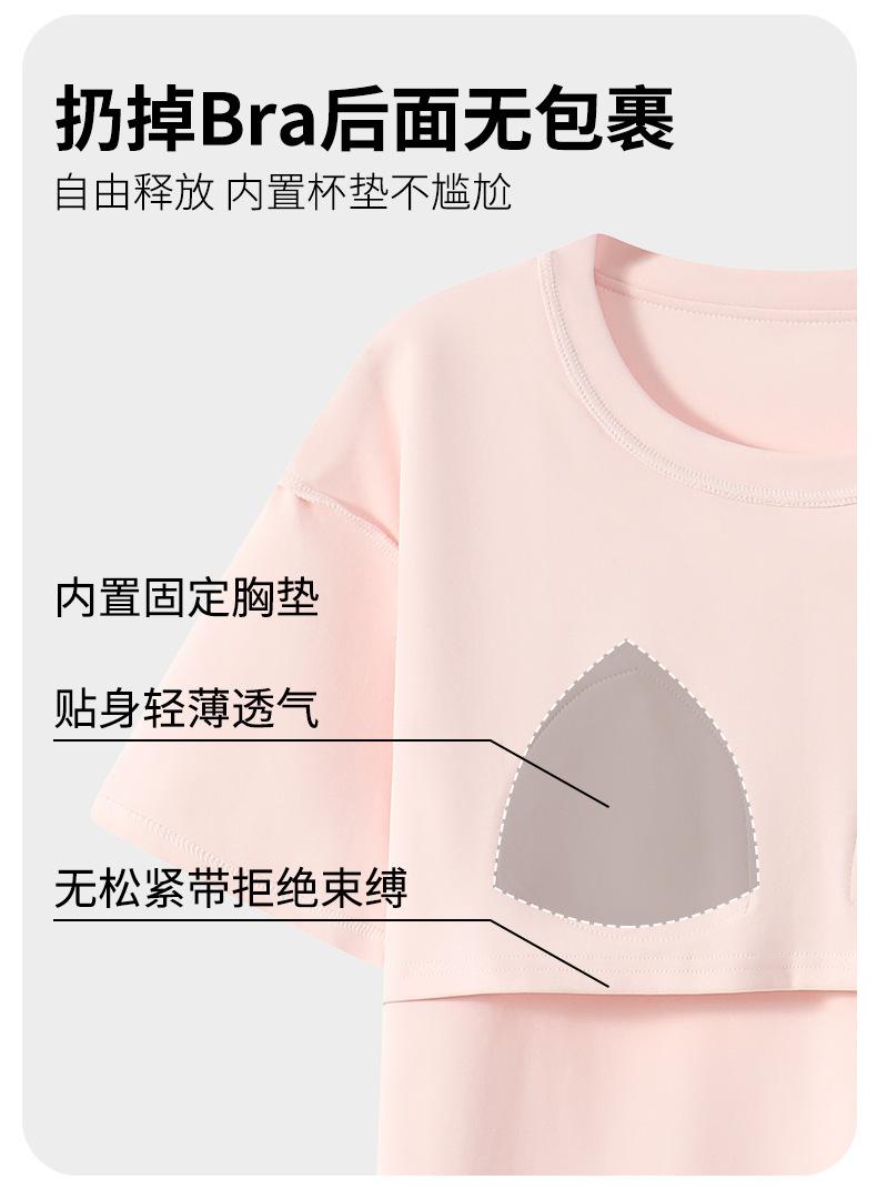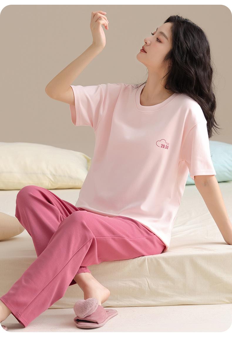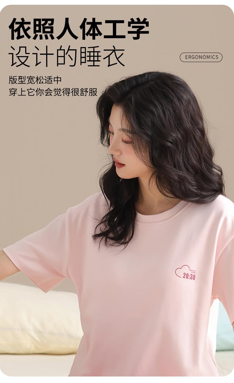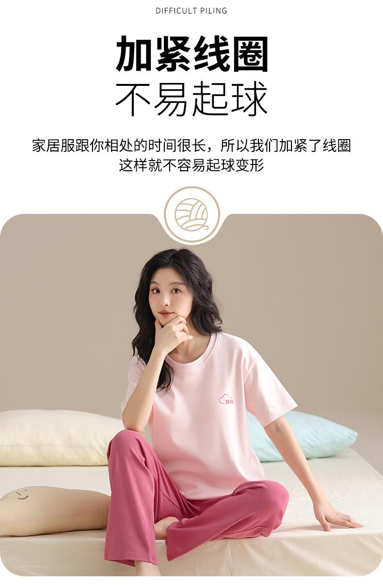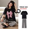 Pijama Algodón Mujer Verano Nueva Llegada Pantalones de Manga Corta con Almohadilla en el Pecho Sencillo Algodón Ajuste Holgado Traje Ropa para Uso Exterior