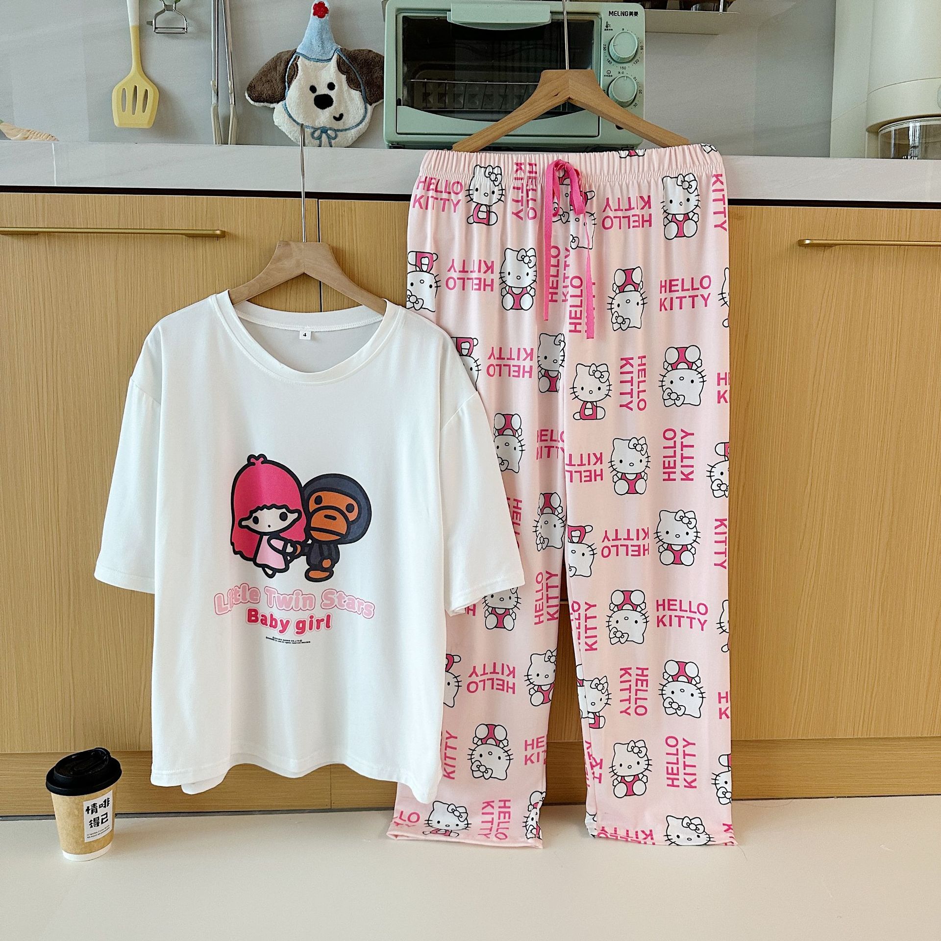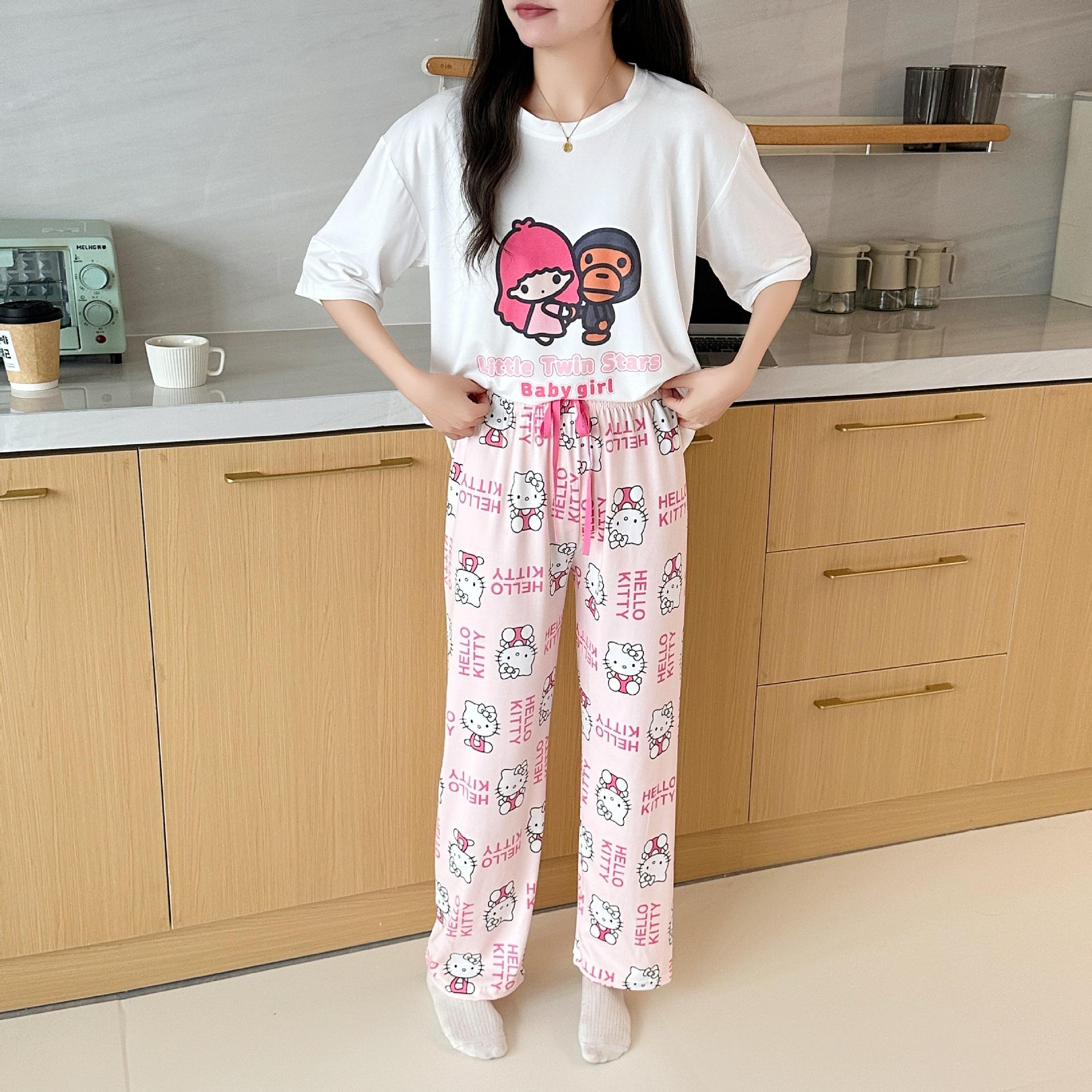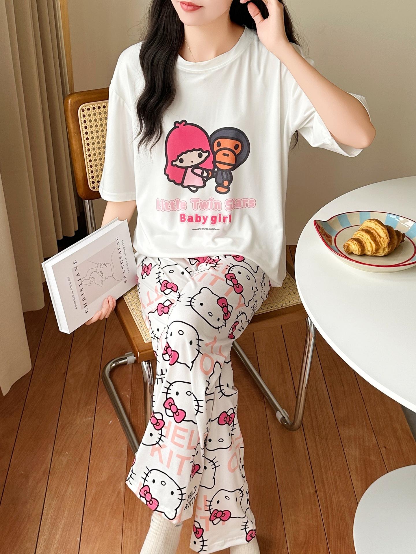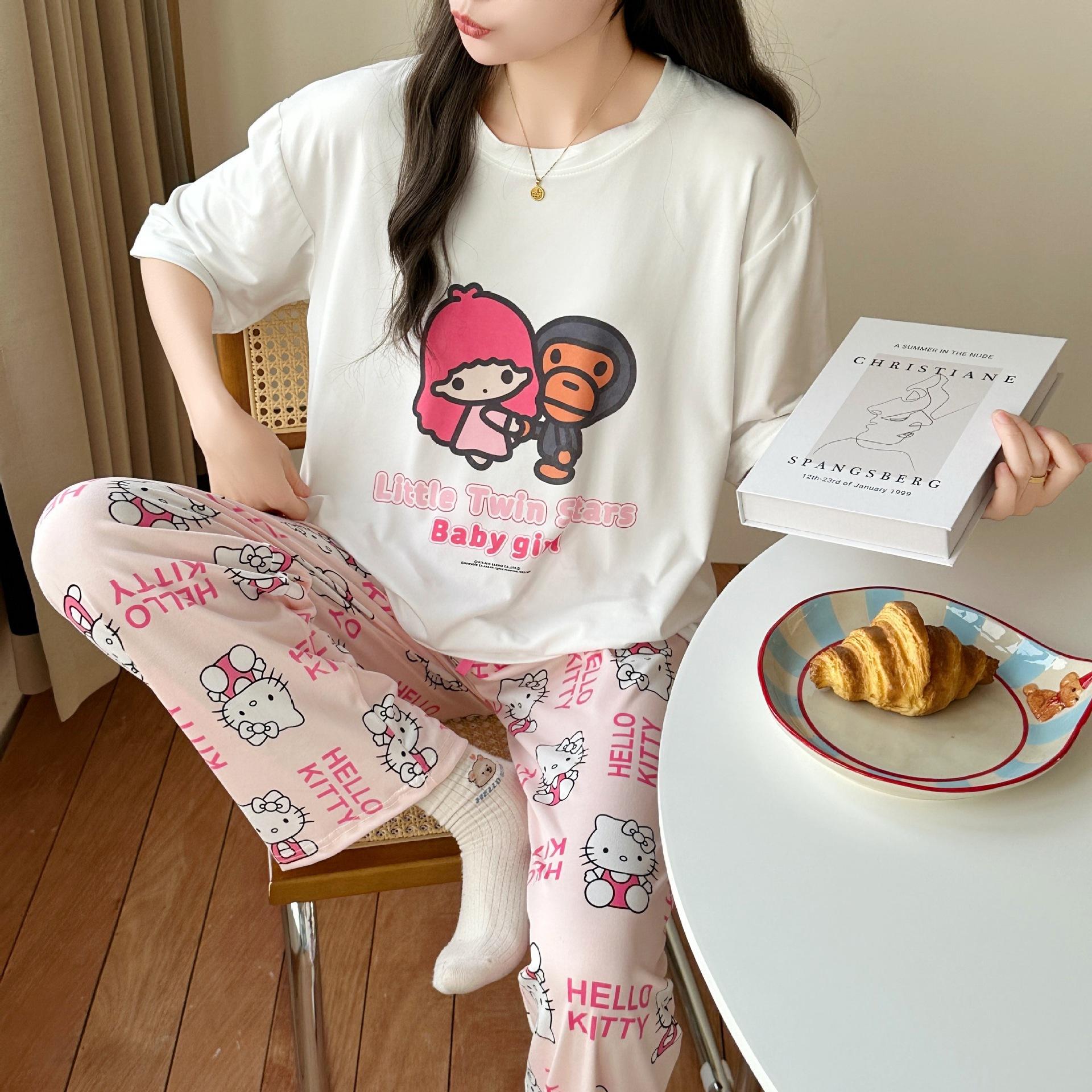Nuevo estilo, ropa de novia, pijama bonito de dibujos animados, traje de mujer, top holgado de verano de manga corta, pantalones casuales de talla grande