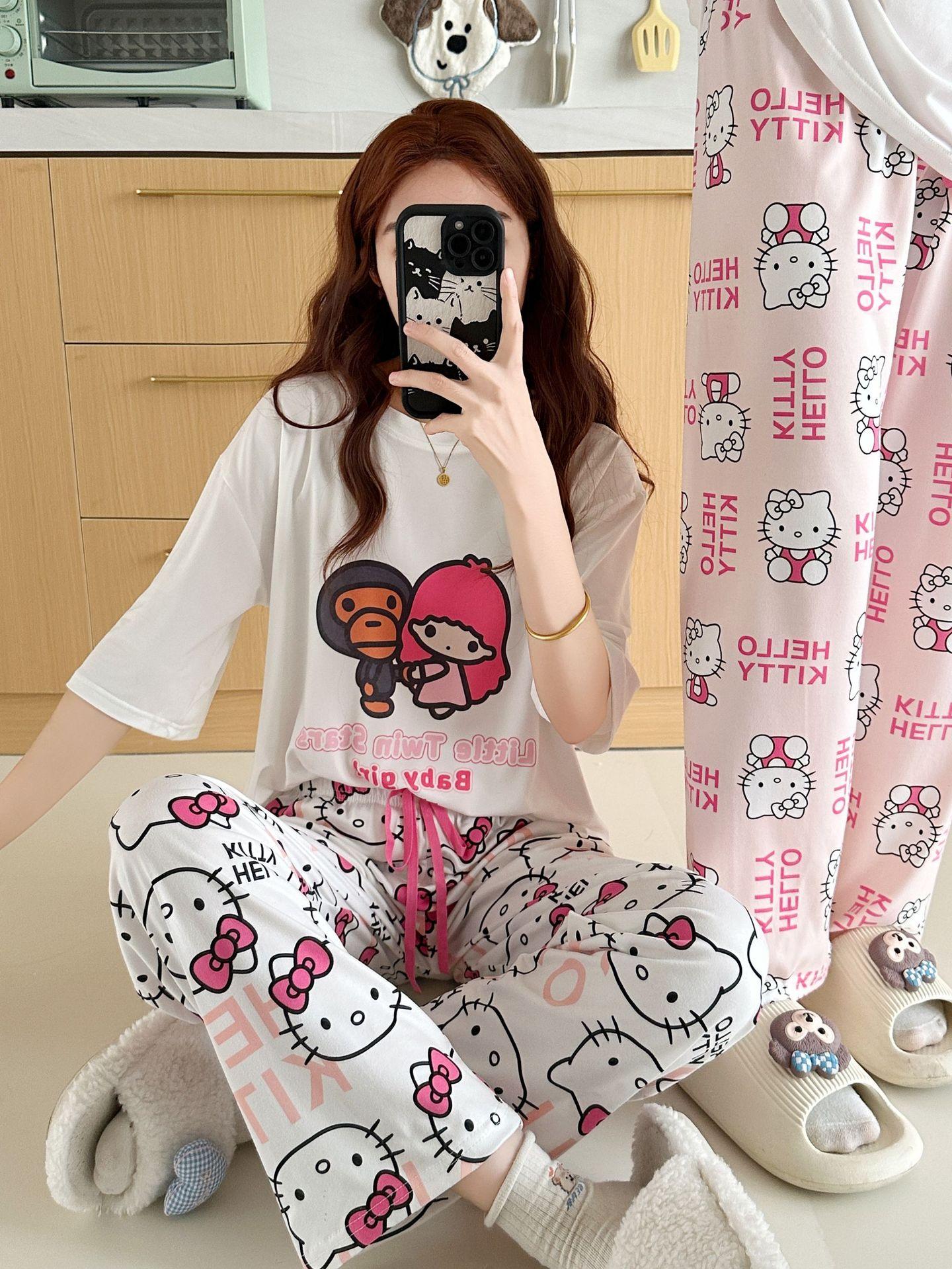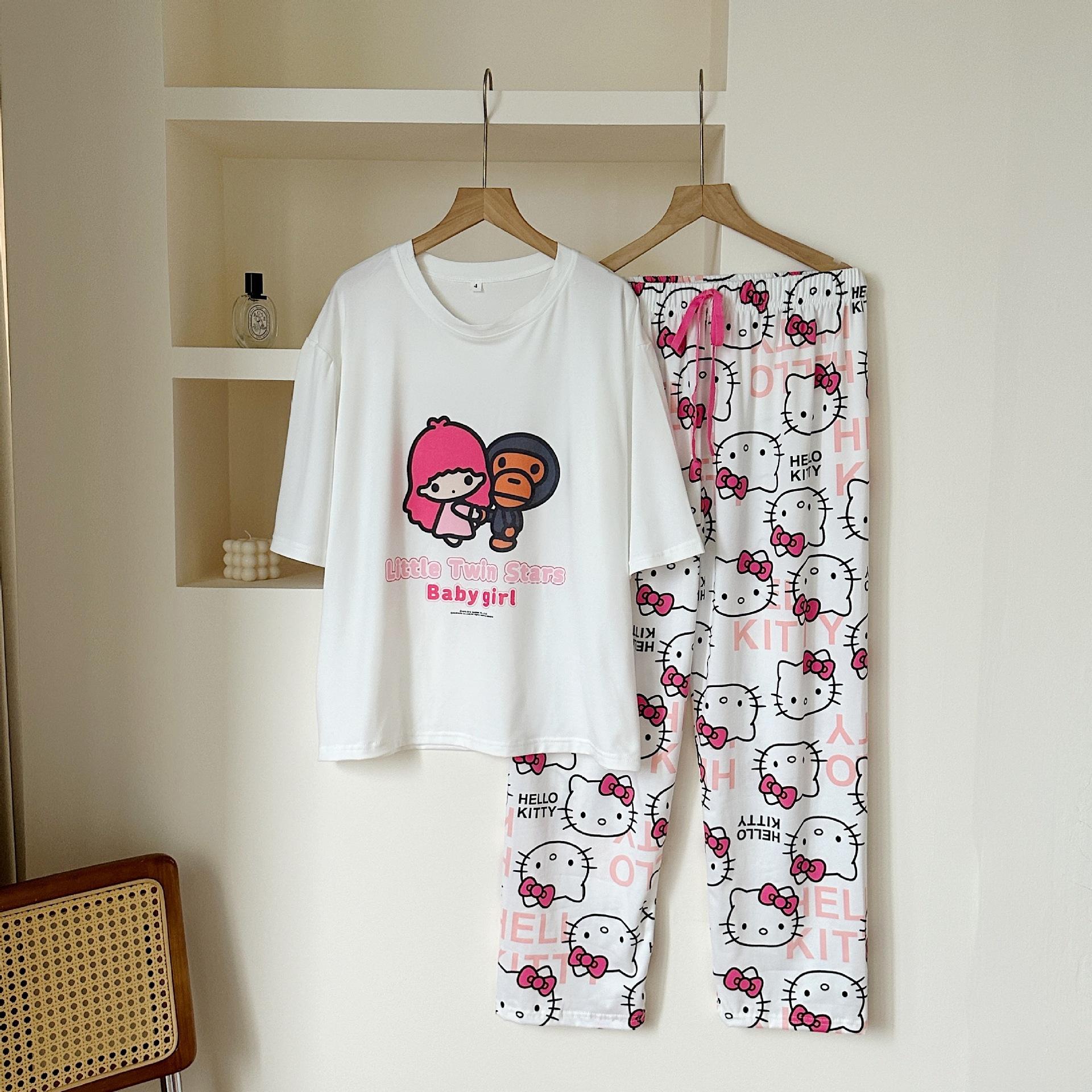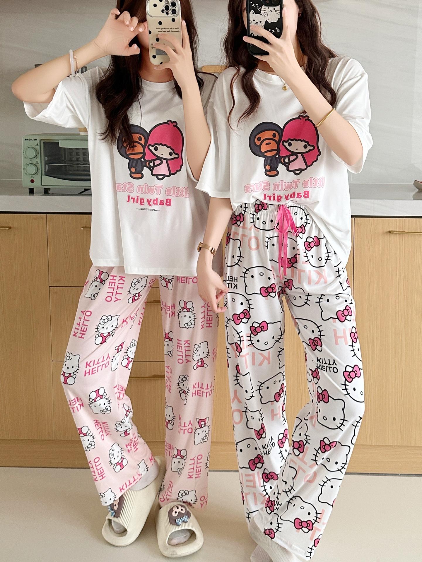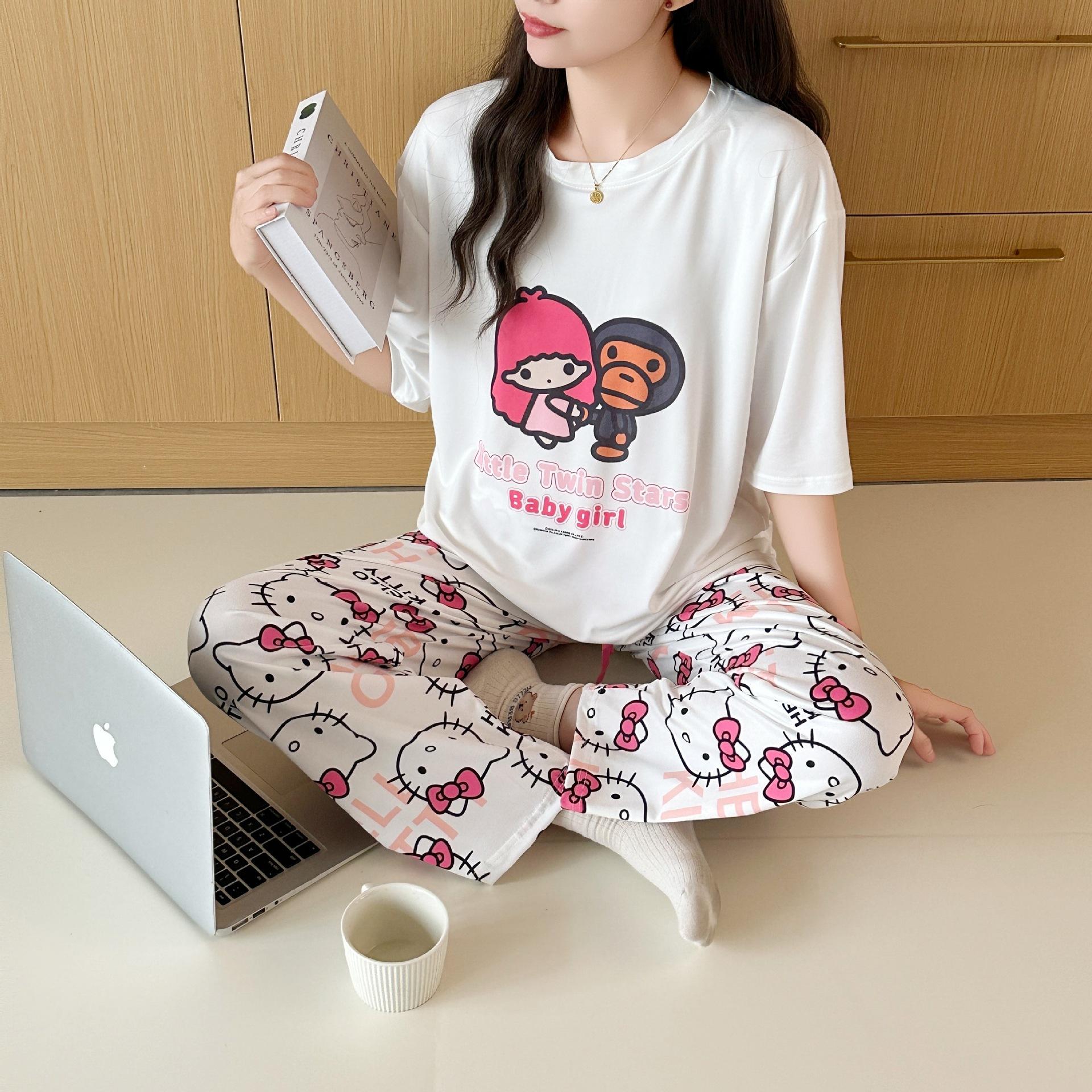 Nuevo estilo, ropa de novia, pijama bonito de dibujos animados, traje de mujer, top holgado de verano de manga corta, pantalones casuales de talla grande
