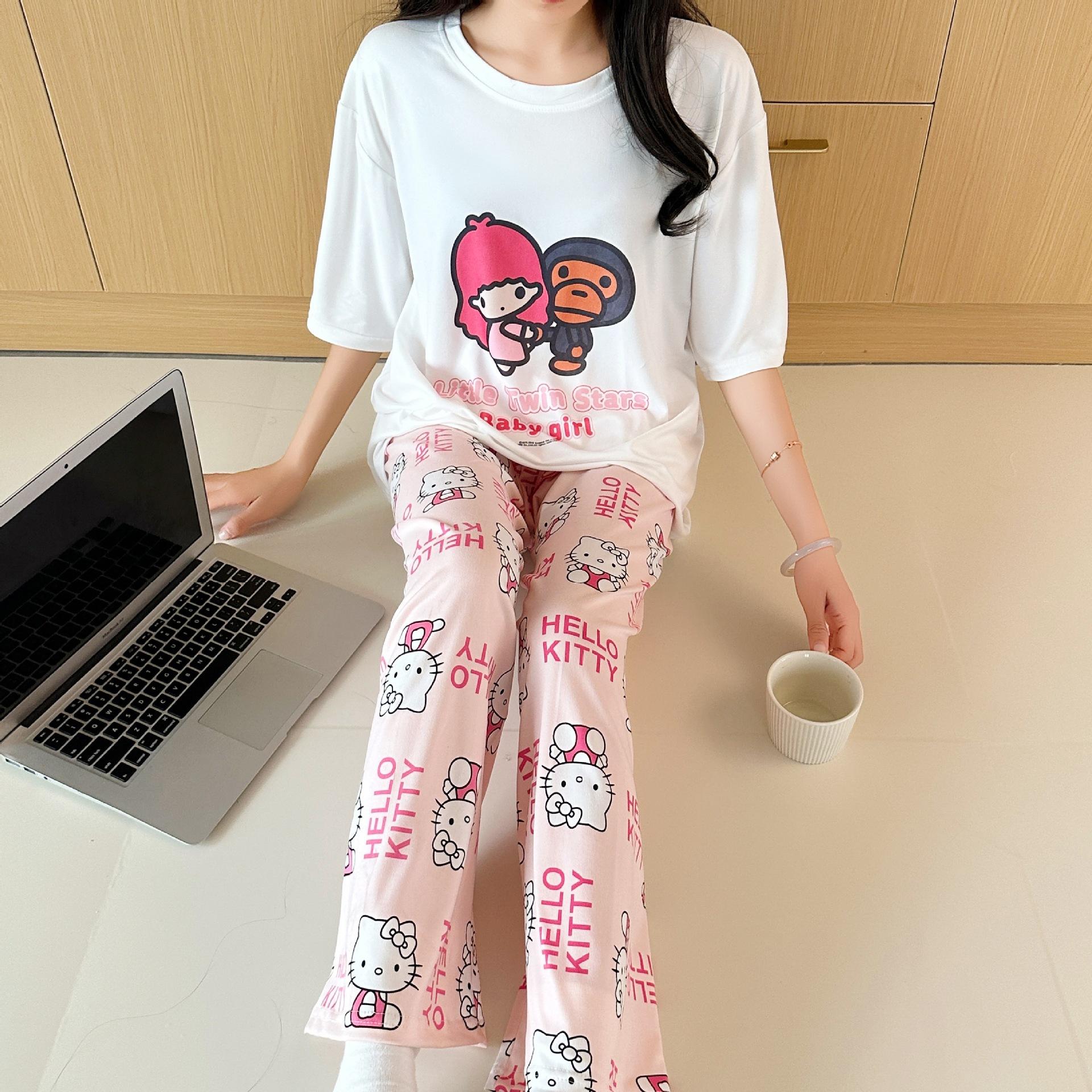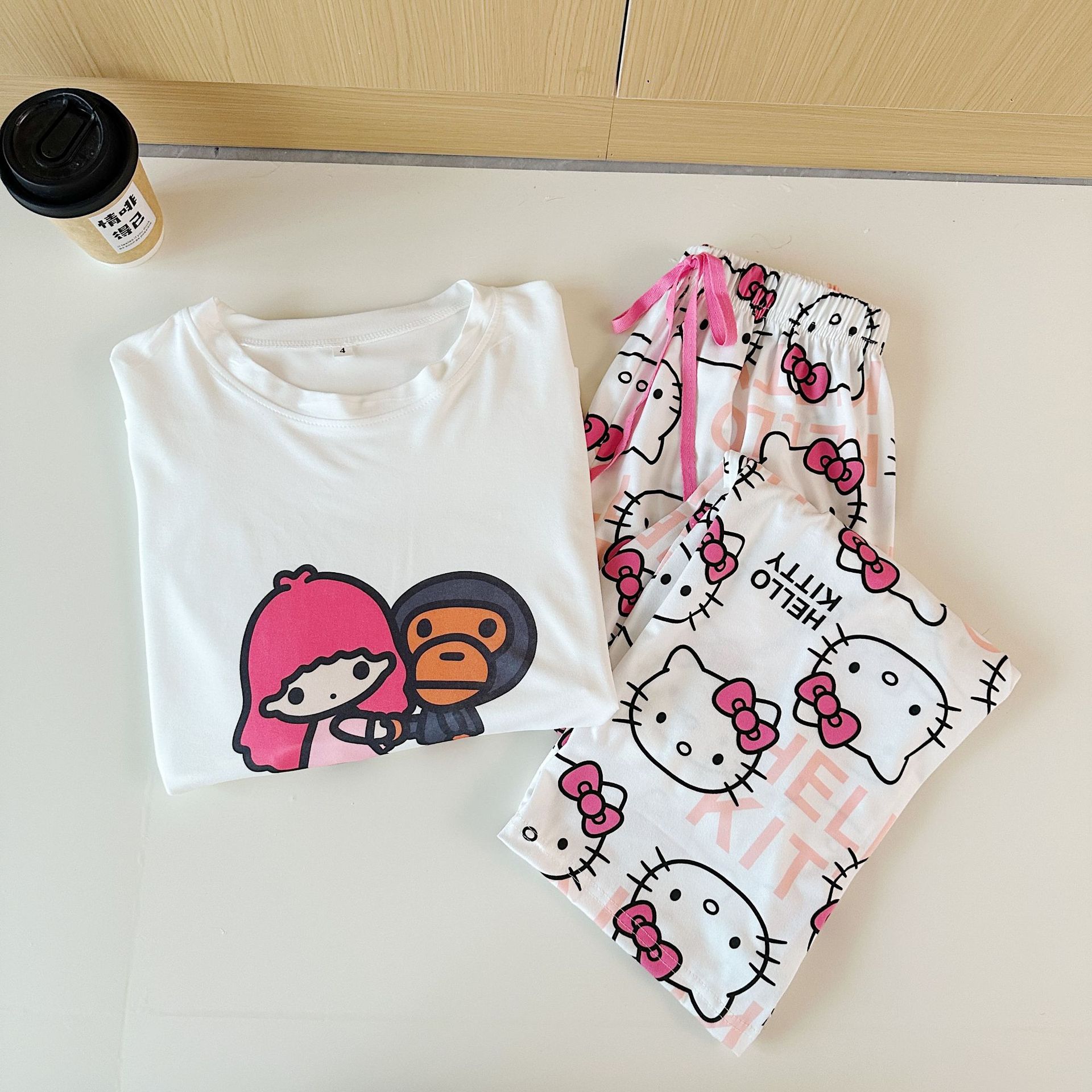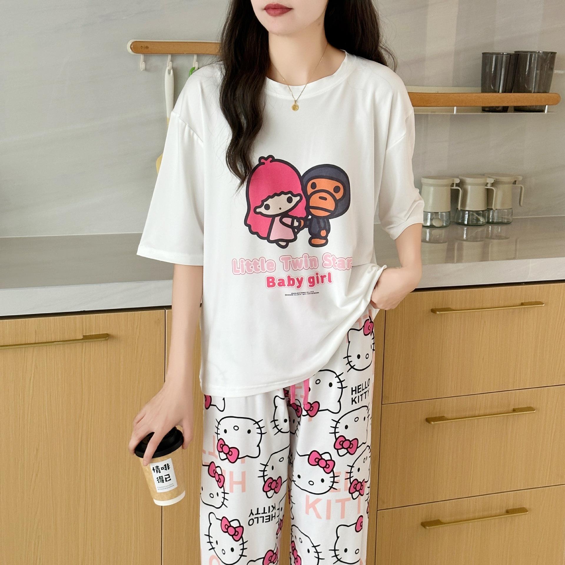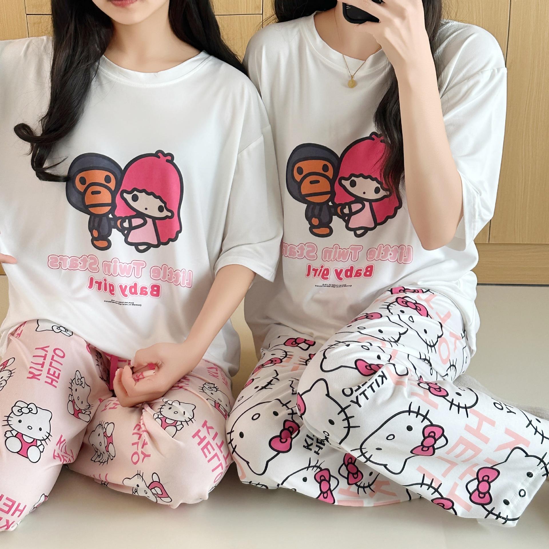 Nuevo estilo, ropa de novia, pijama bonito de dibujos animados, traje de mujer, top holgado de verano de manga corta, pantalones casuales de talla grande