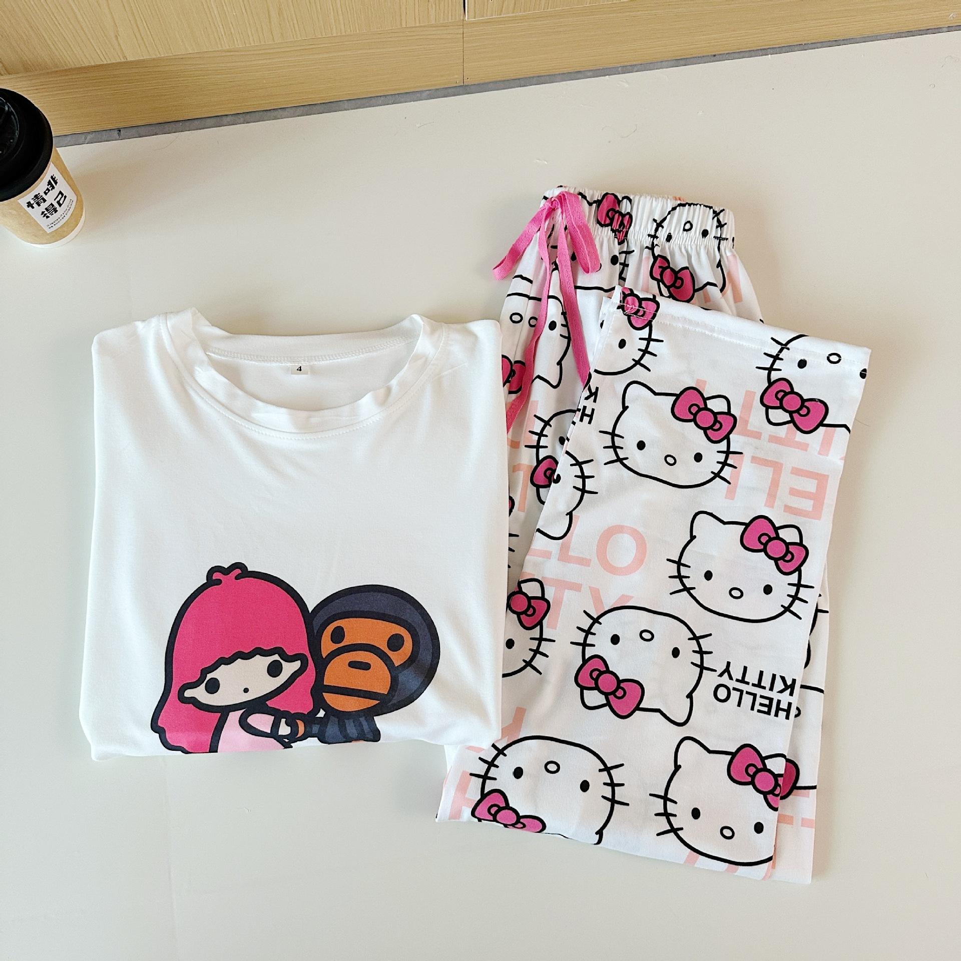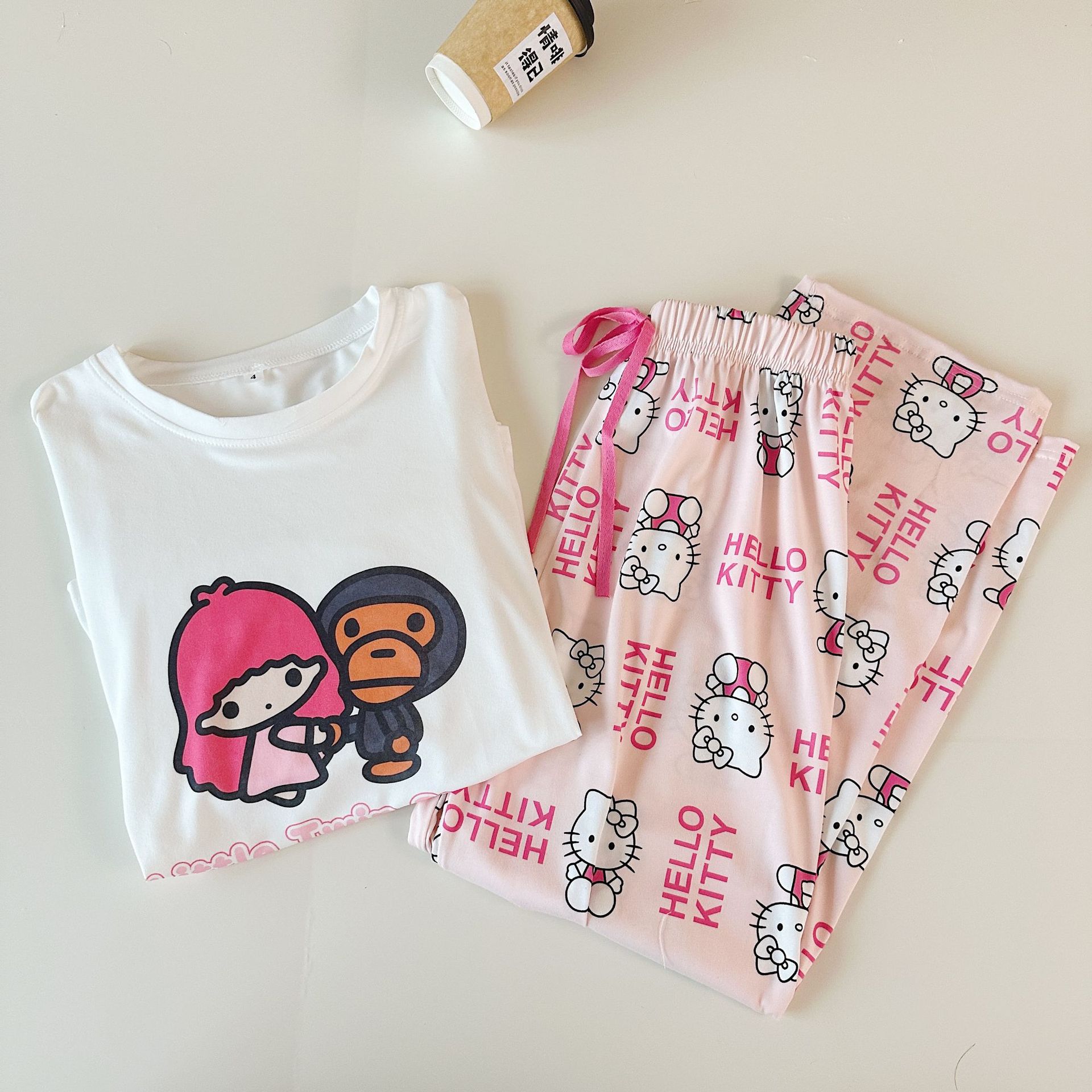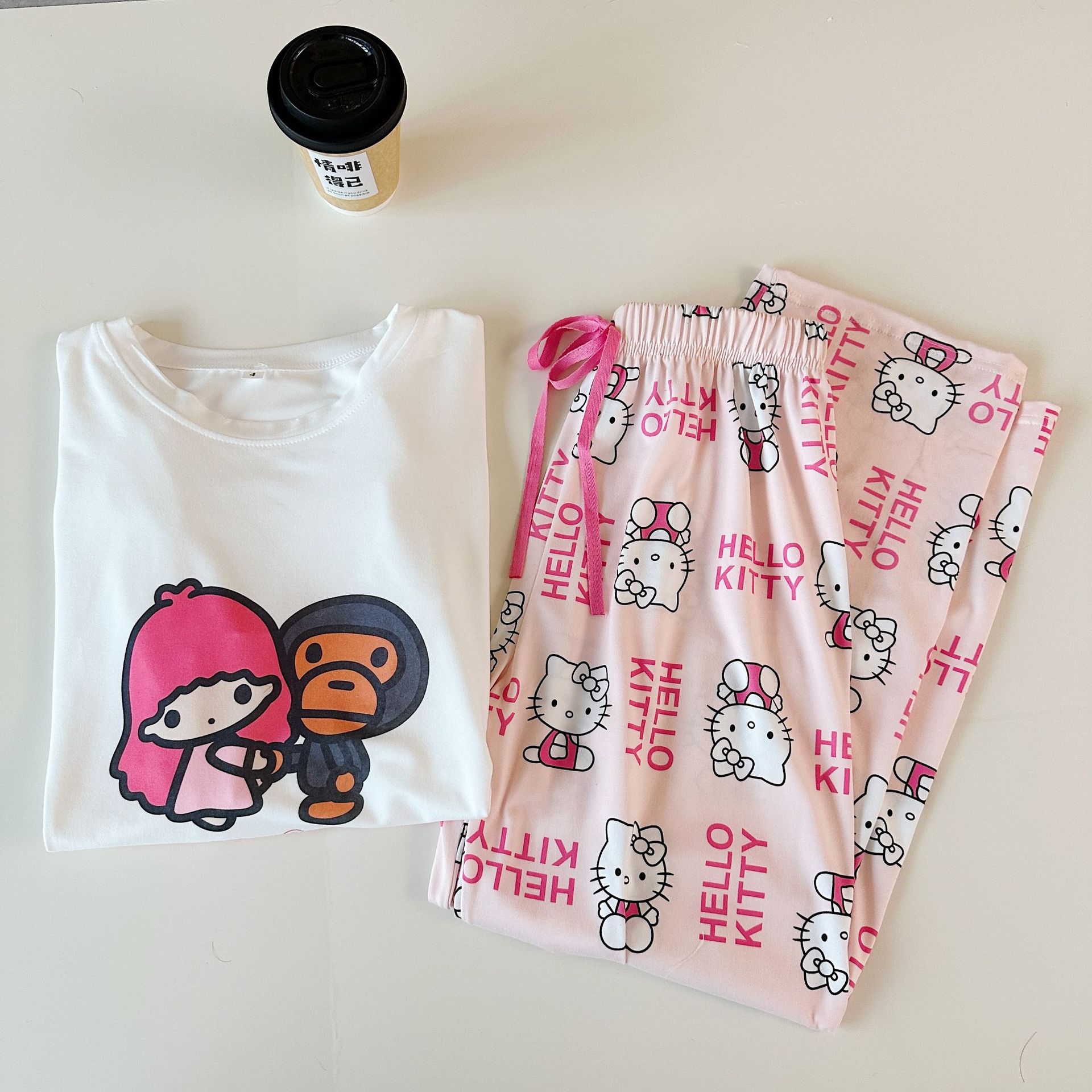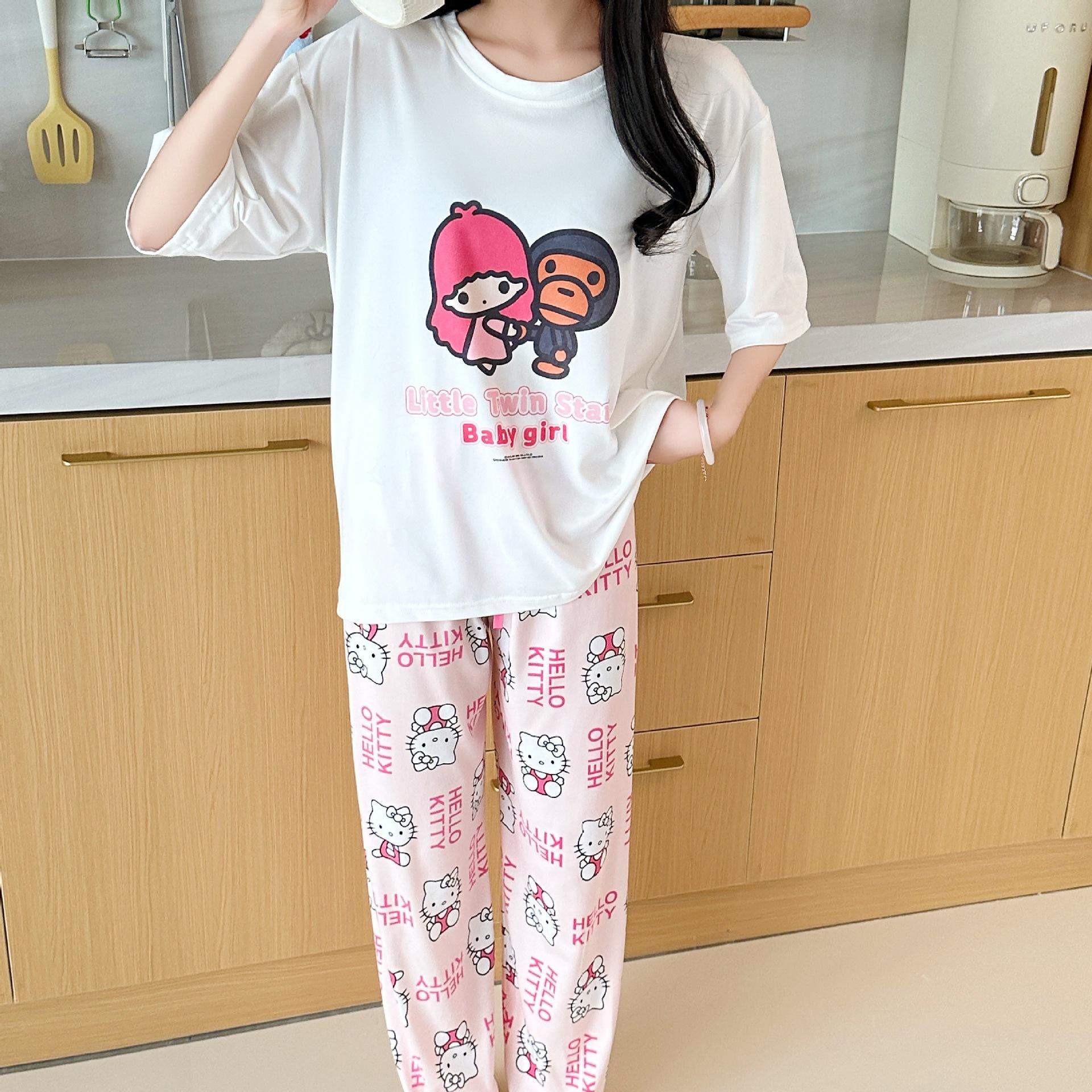 Nuevo estilo, ropa de novia, pijama bonito de dibujos animados, traje de mujer, top holgado de verano de manga corta, pantalones casuales de talla grande