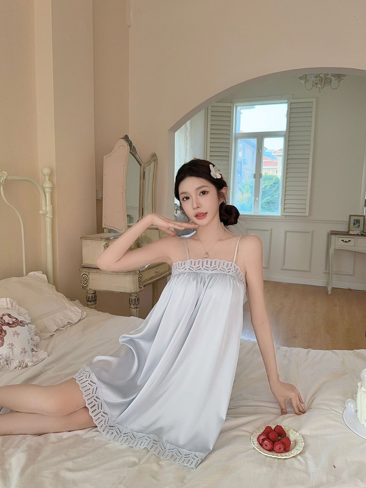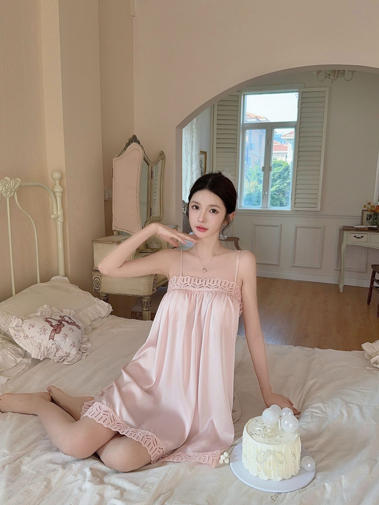 Pijama de seda helada estilo Pure Desire para mujer con almohadilla para el pecho, camisón de tirantes de color liso, tentación sexy, ropa de verano nueva para el hogar.