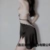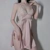 Lencería Sexy Espalda Descubierta Rosa Falda Lencera Camisón Perspectiva Tipo Seda Sexy con Volantes Escote Bajo Tirantes para Mujer