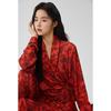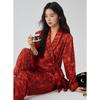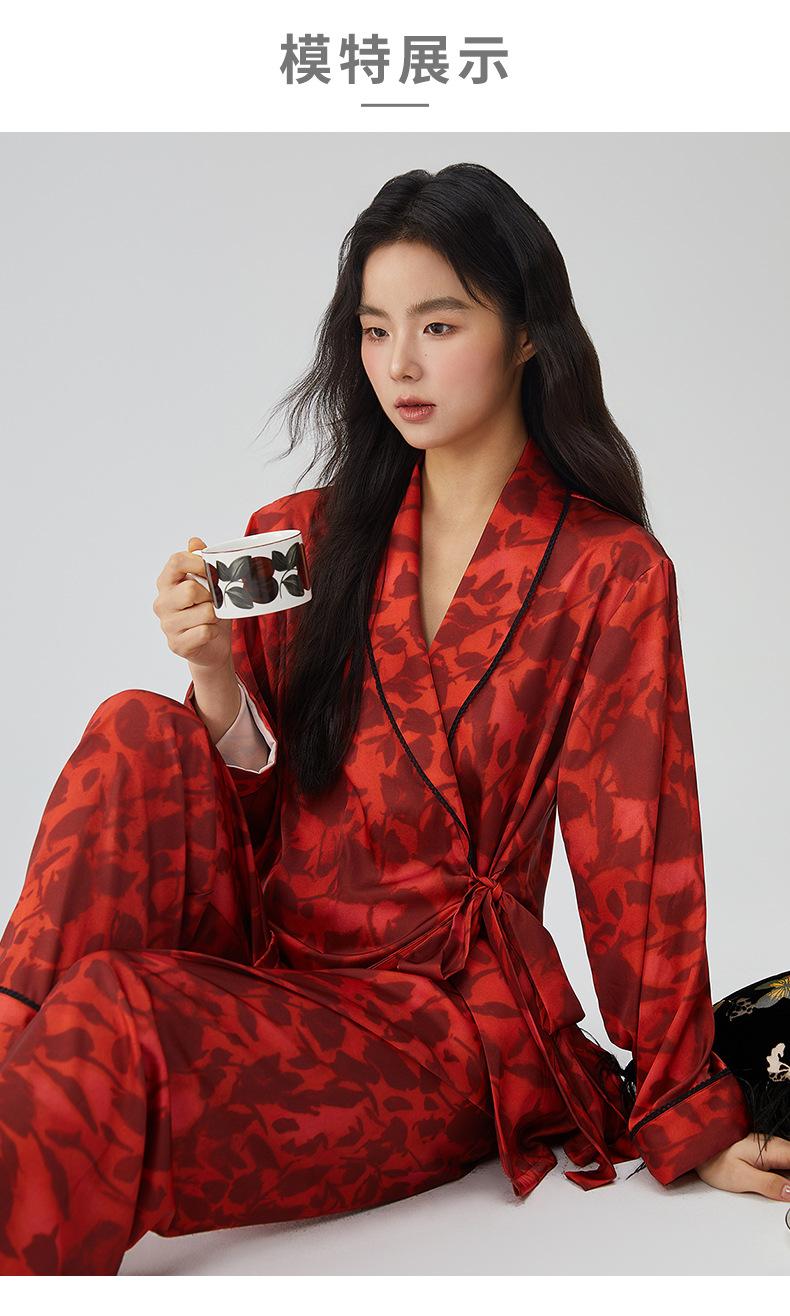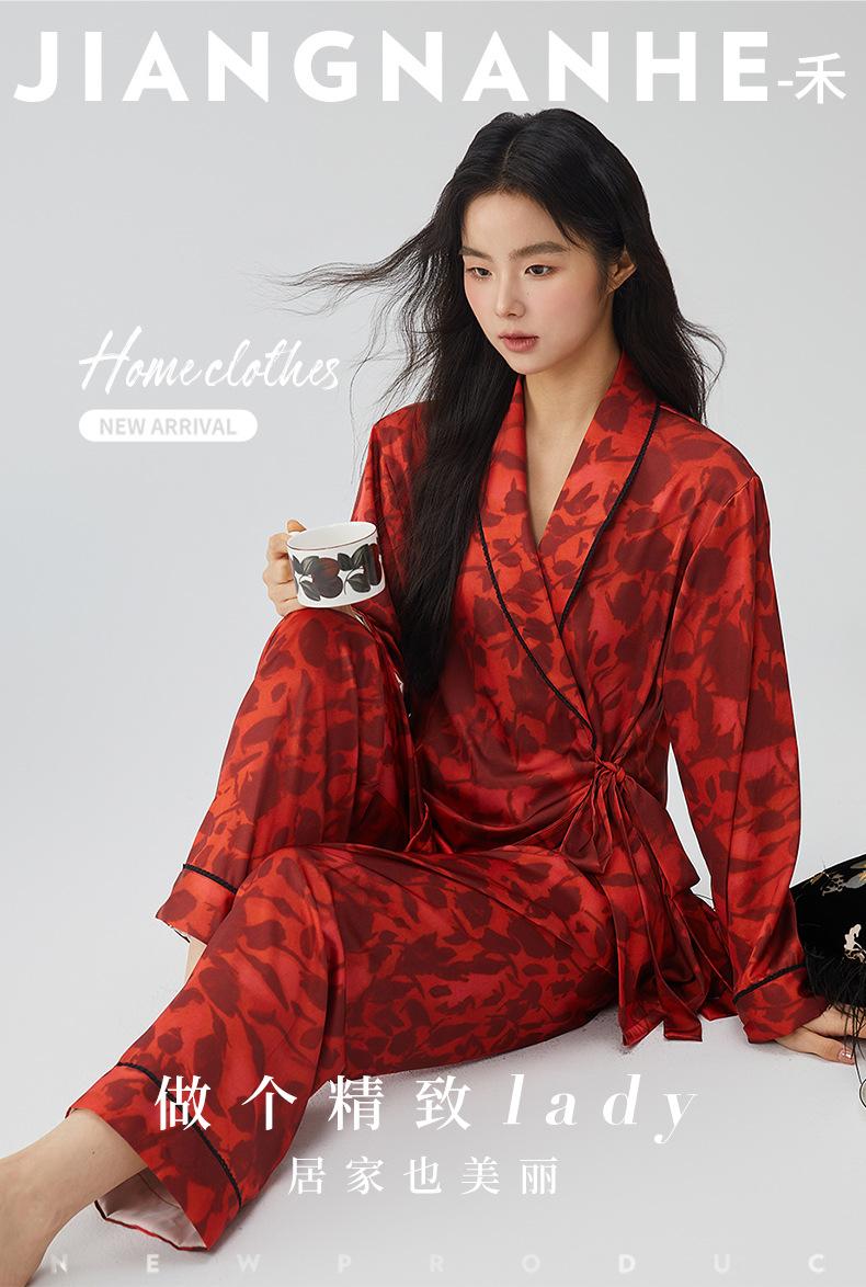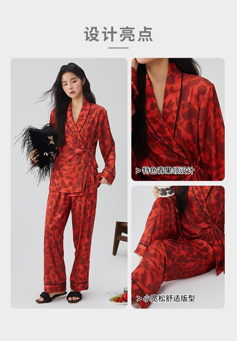 Jiangnan Wo 25 Primavera Nuevo Pijama de Seda de Hielo para Mujer Verde Cuello Frutal Rojo Ropa de Casa para Mujer Conjunto de Verano Comercio Exterior Transfronterizo