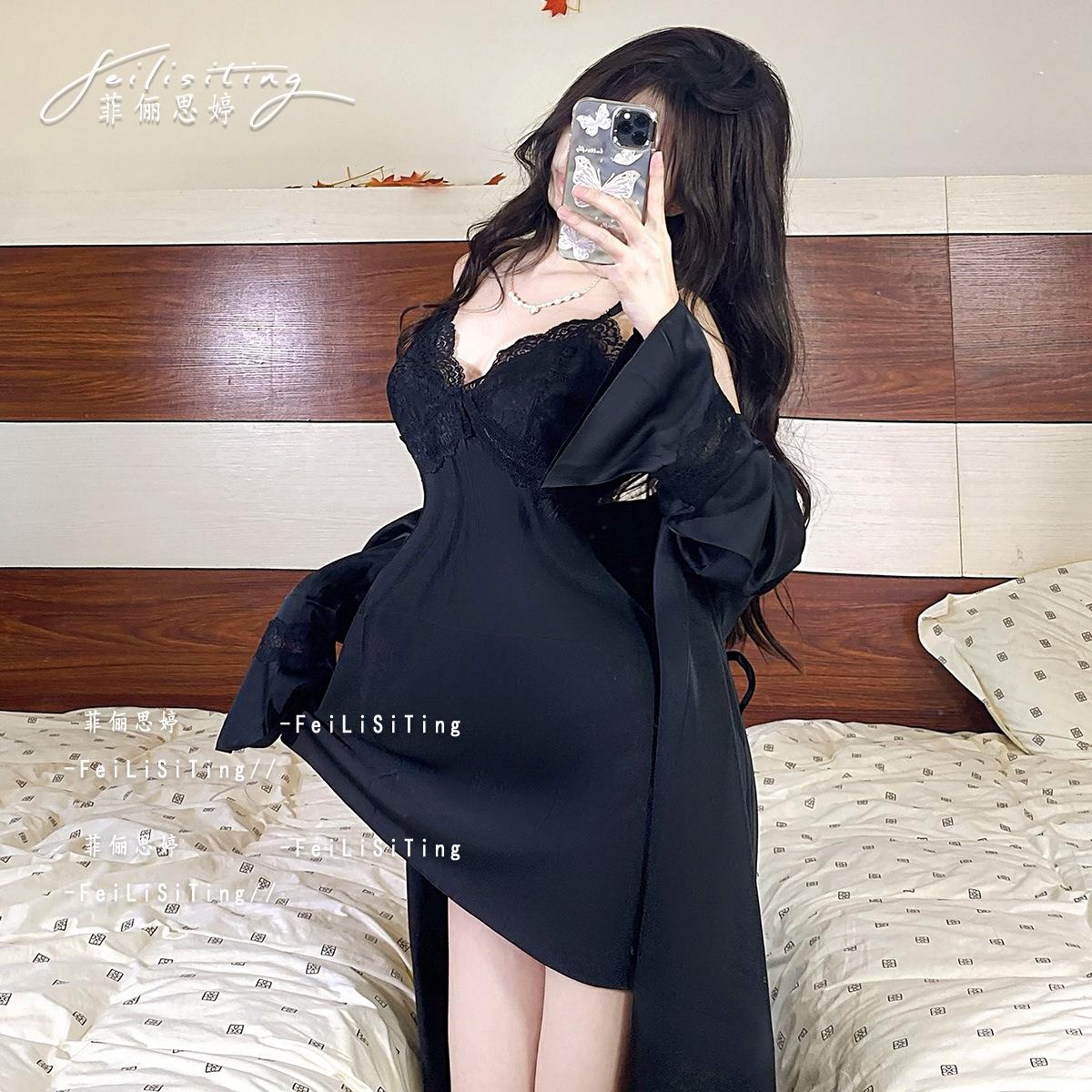 Camisón de verano francés 2024, nuevo estilo Pure Desire, pijama sexy de encaje con tirantes, ropa para el hogar, traje con almohadilla para el pecho