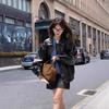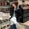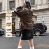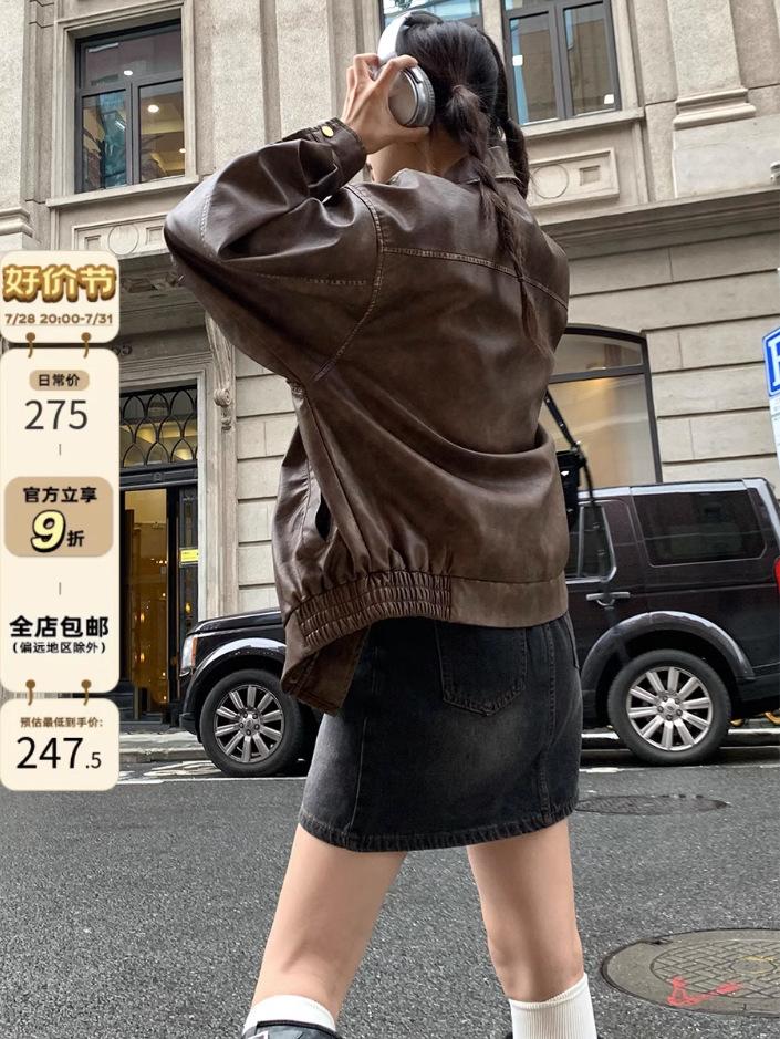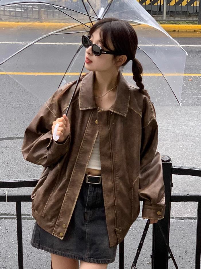 Estilo Americano Estilo Retro Pulido de Color Solapa Antigua Ropa de Cuero para Mujer Primavera y Otoño Suelta Dulce Cool Motocicleta Chaqueta Estilo Americano Abrigo Corto Mujer