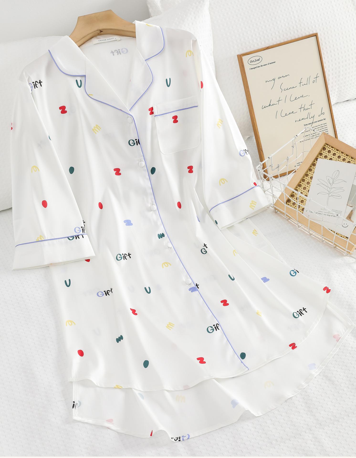 Camisón estilo princesa para mujer, novedad de verano de 2025, pijama de seda fina con mangas de siete puntos para mujer, ropa de casa para niña.