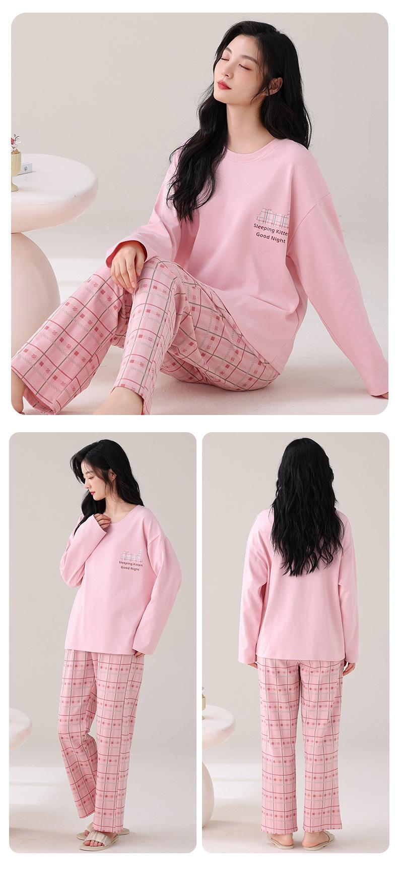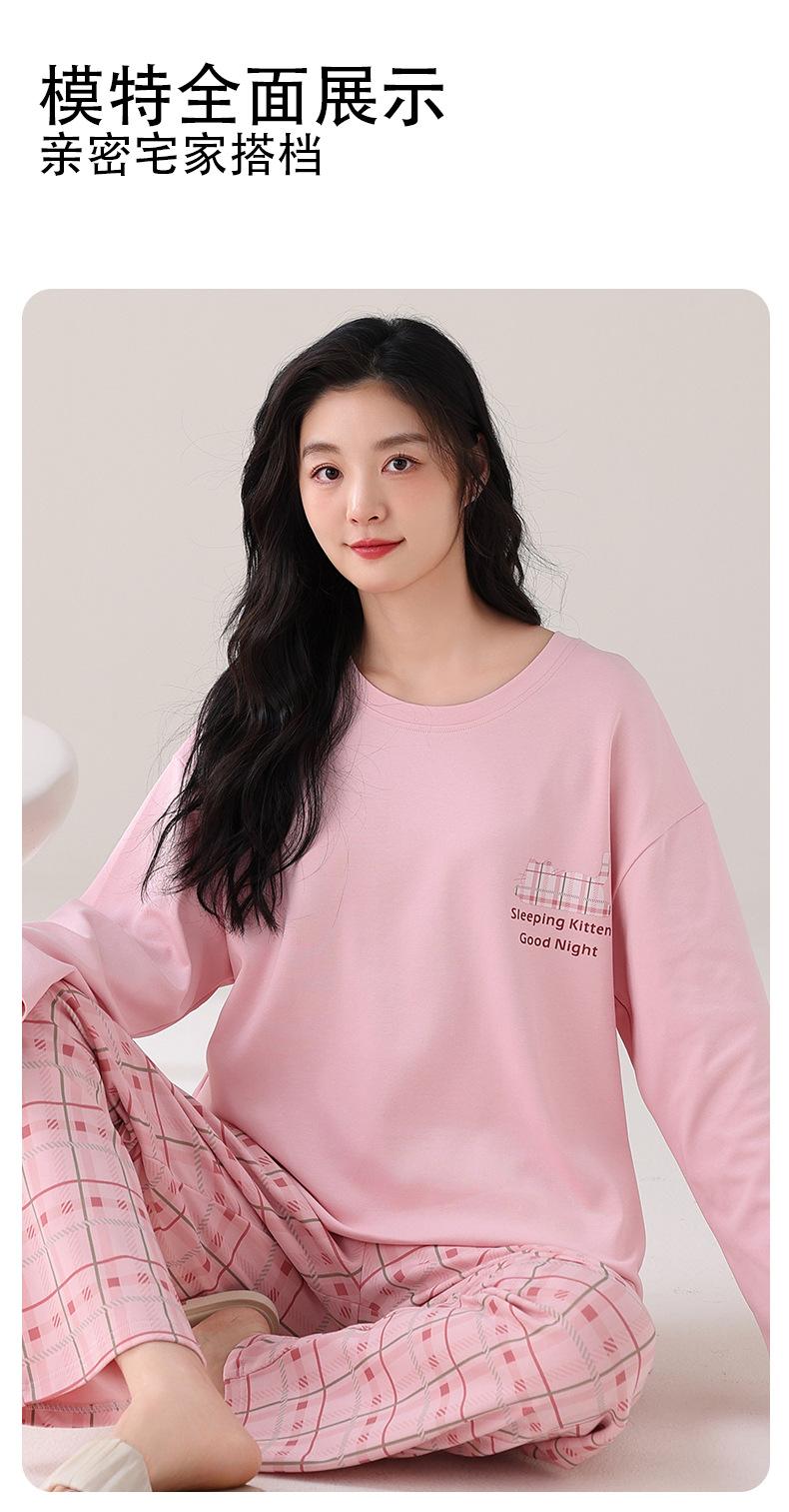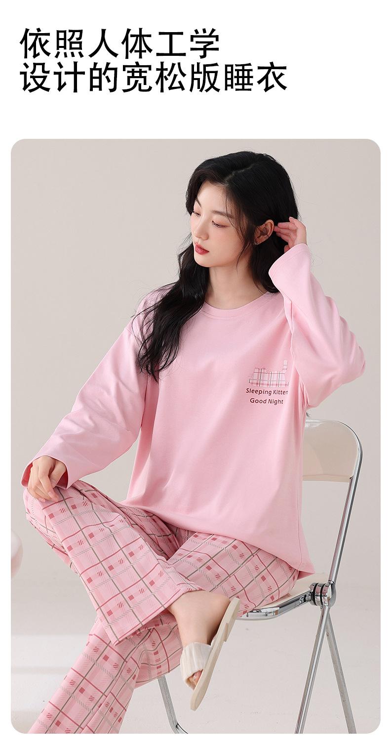 Pijama de algodón para mujer, jersey de cuello redondo, otoño e invierno, sencillo, informal, de talla grande, ropa de algodón para el hogar, traje de primavera y otoño