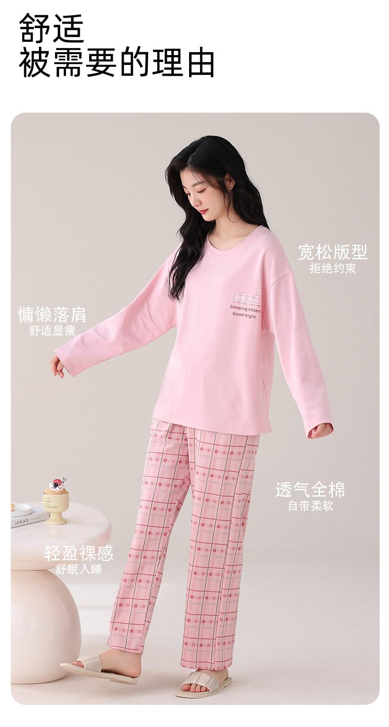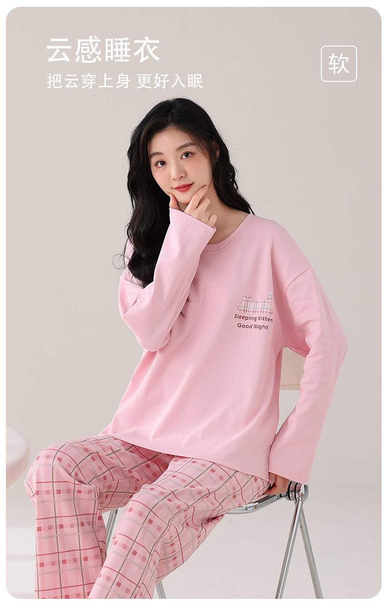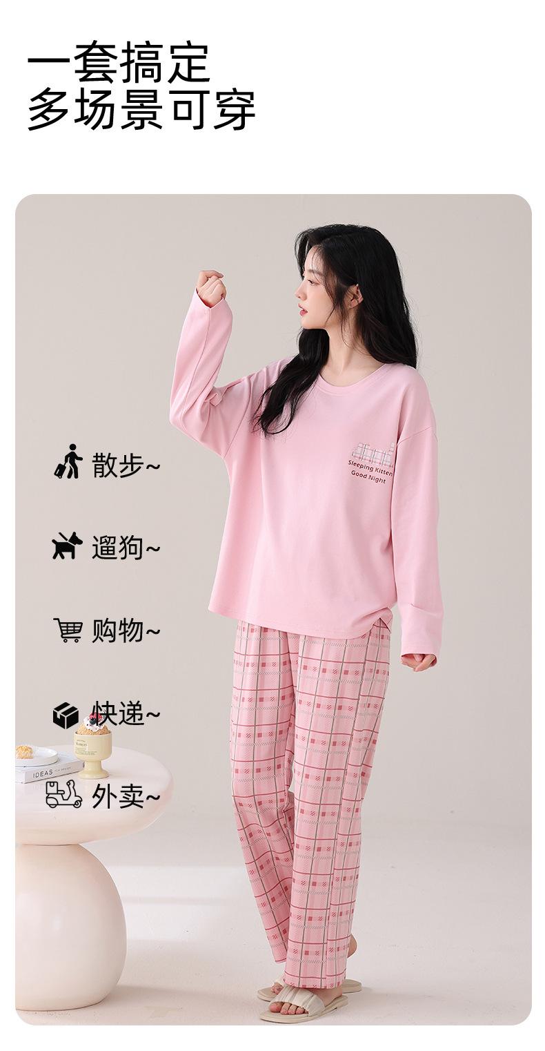 Pijama de algodón para mujer, jersey de cuello redondo, otoño e invierno, sencillo, informal, de talla grande, ropa de algodón para el hogar, traje de primavera y otoño