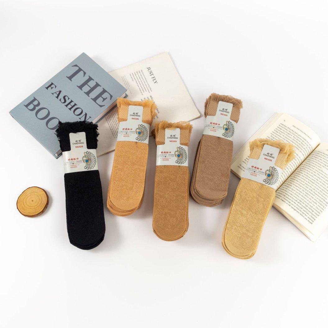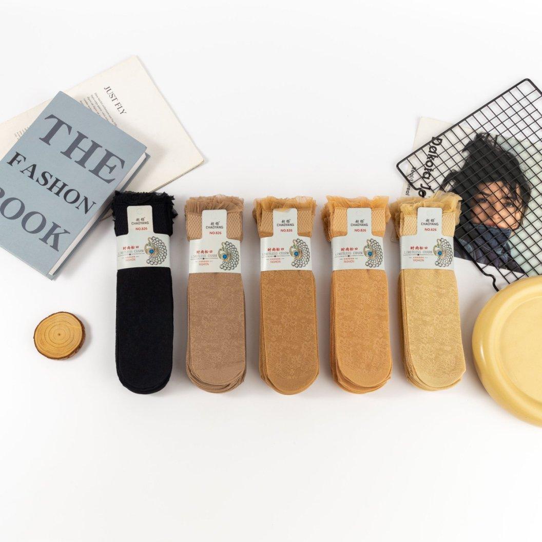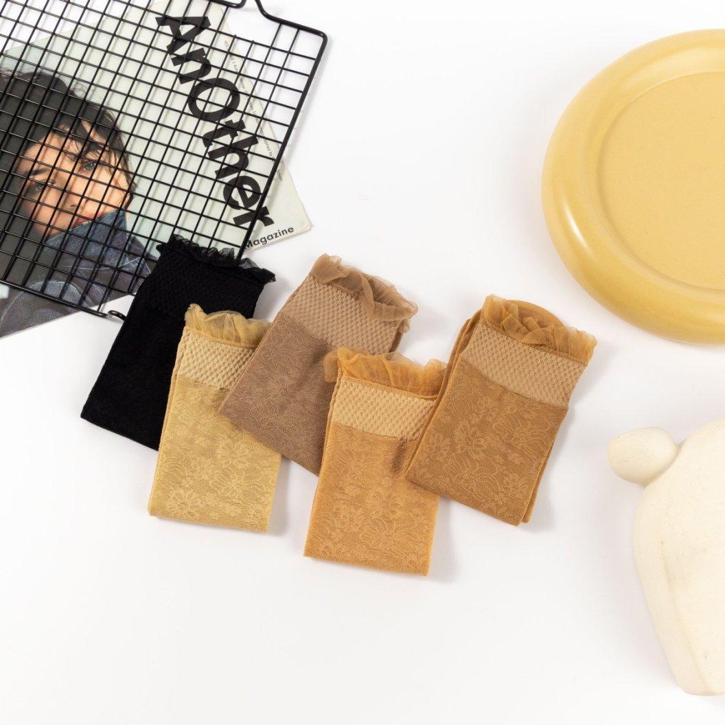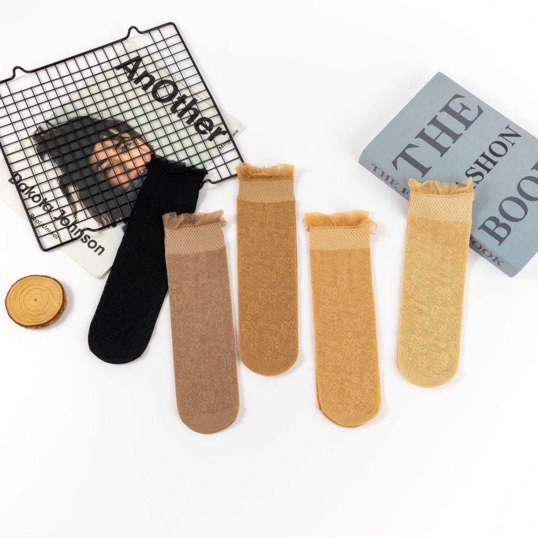 Medias de Encaje Nuevas Calcetines de Encaje para Mujer Primavera y Verano Delgadas Rosa Antideslizantes Transparentes Absorbentes de Sudor Calcetines de Media Caña Seda de Hielo para Mujer