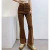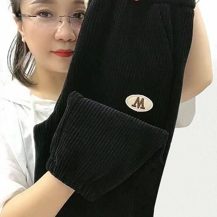 2024 otoño e invierno nuevo pantalón harem de pana adelgazante de corte slim para mujer rojo en línea estilo coreano para ir al trabajo con lazo en el tobillo pantalón de cintura alta
